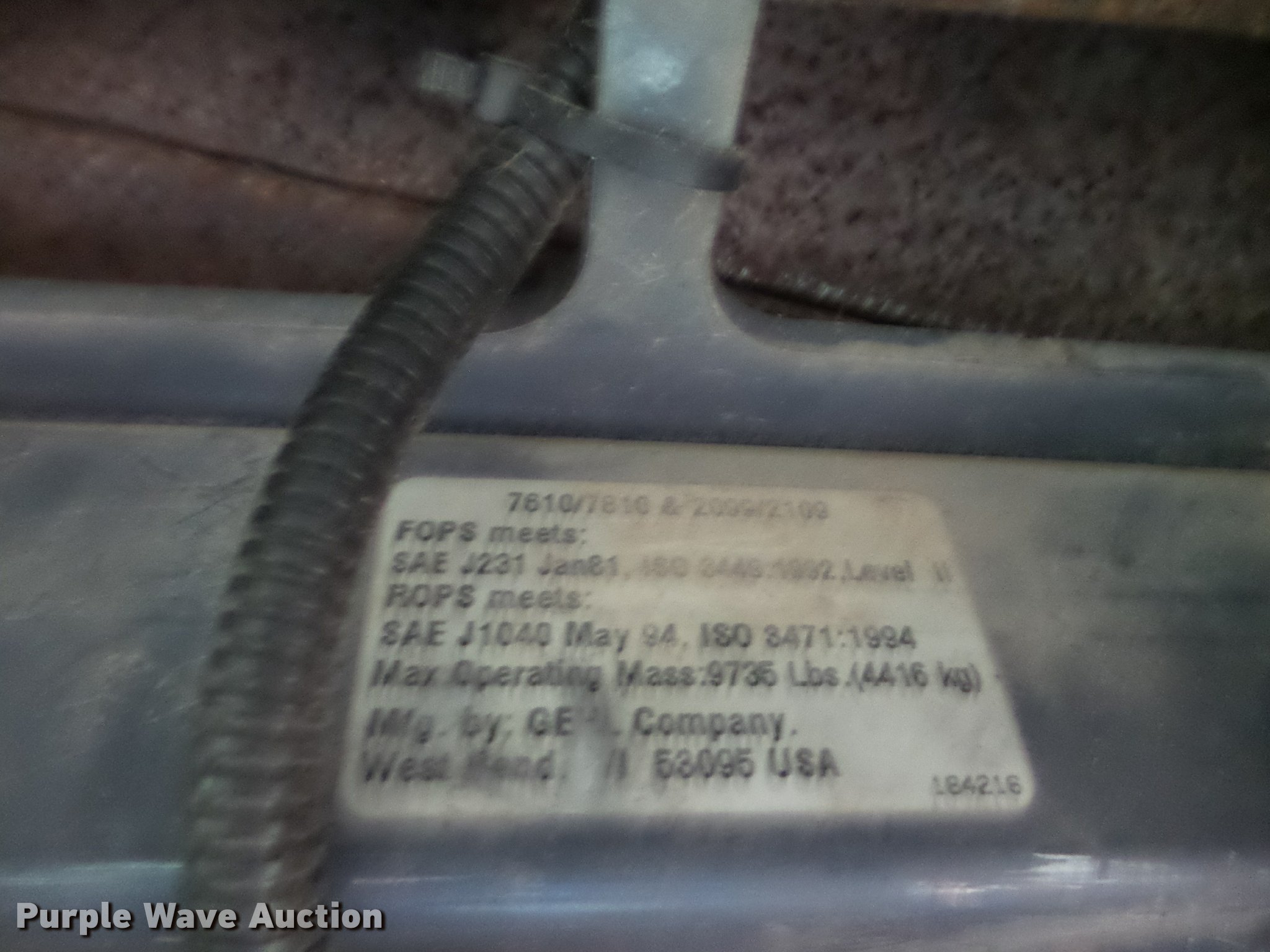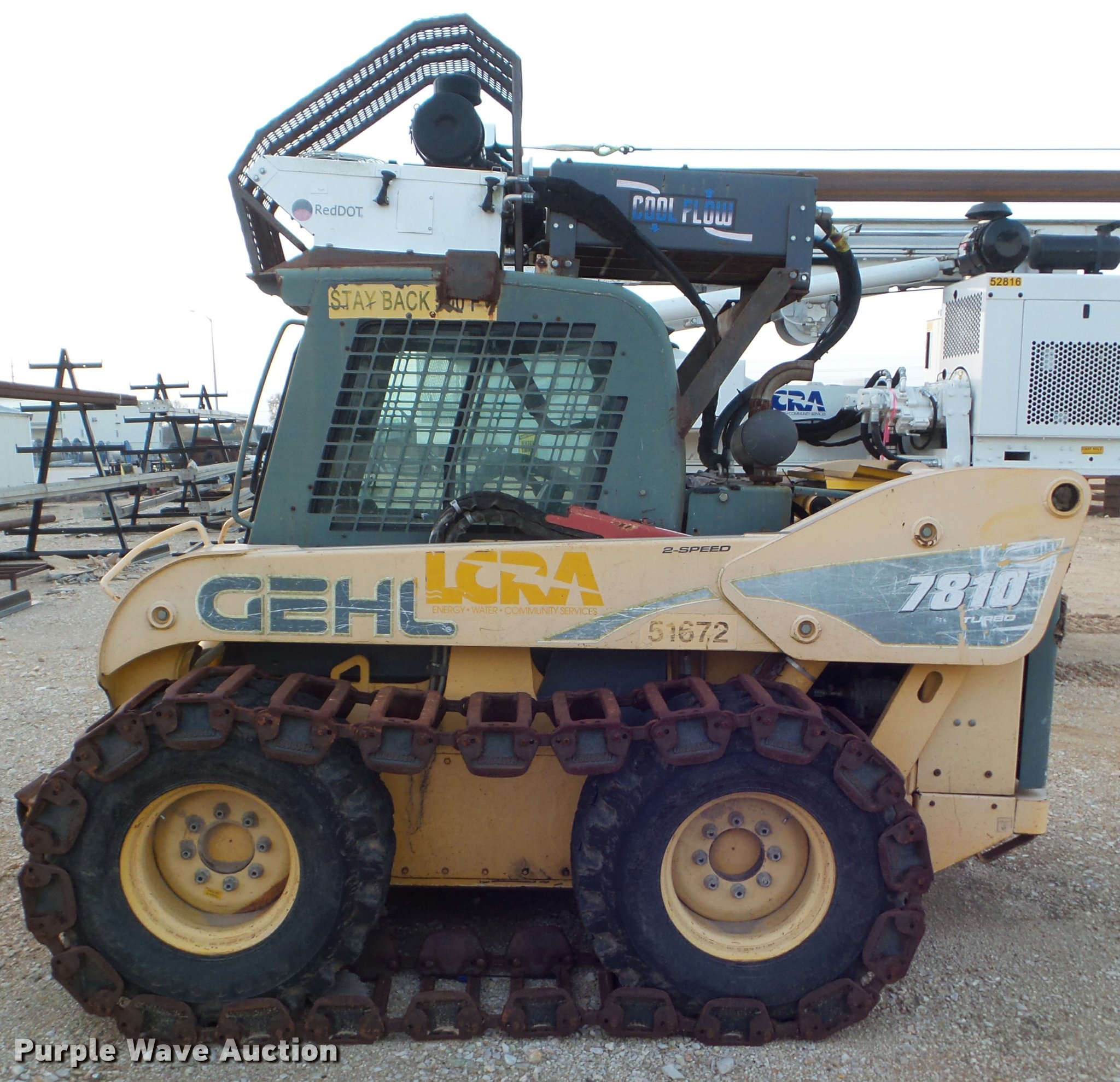 Purple Wave is selling a used Skid Steer Loader in Texas. This item is a 2004 Gehl SL7810 DXT skid steer with the following: 1,632 hours on meter, Perkins 4.4L four cylinder diesel engine, Two speed hydrostatic transmission, EROPS, AC and heat, Joystick controls, Suspension seat, Wipers, Front work lights, High flow auxiliary hydraulics, Manual quick coupler, 355/70D17.5 tires, Grouser 16"W tire tracks, Non-operational unit, Engine issues, Serial 903237