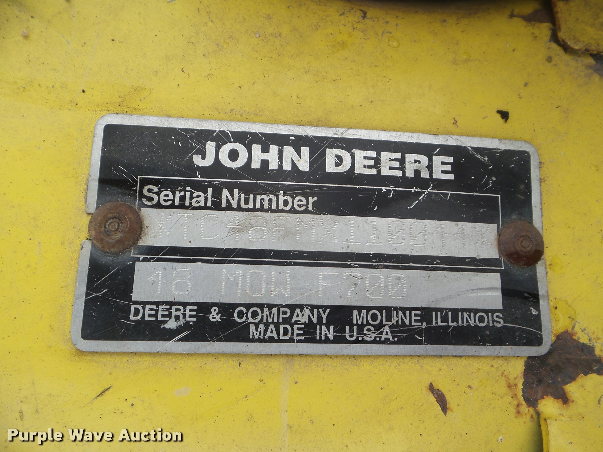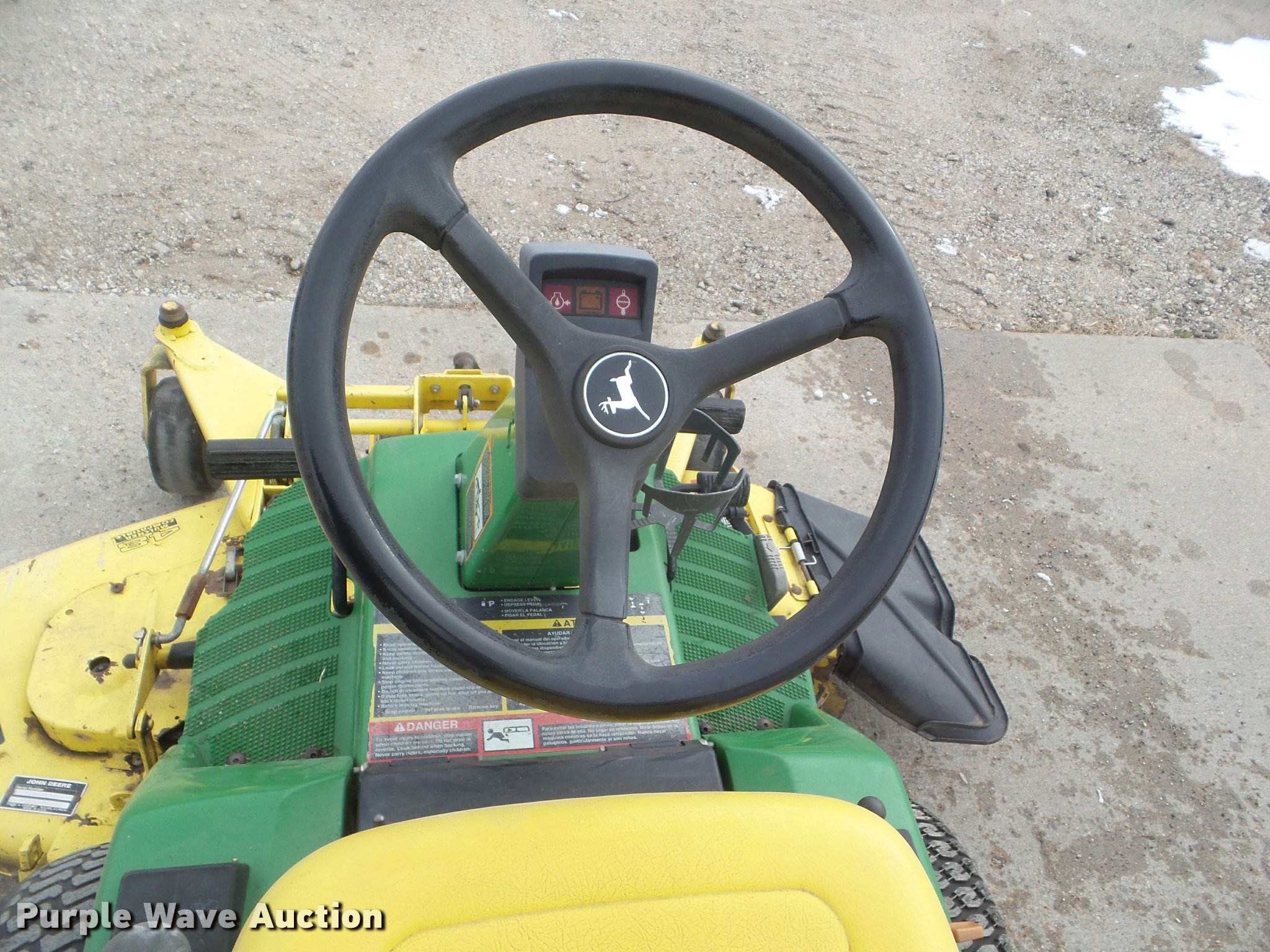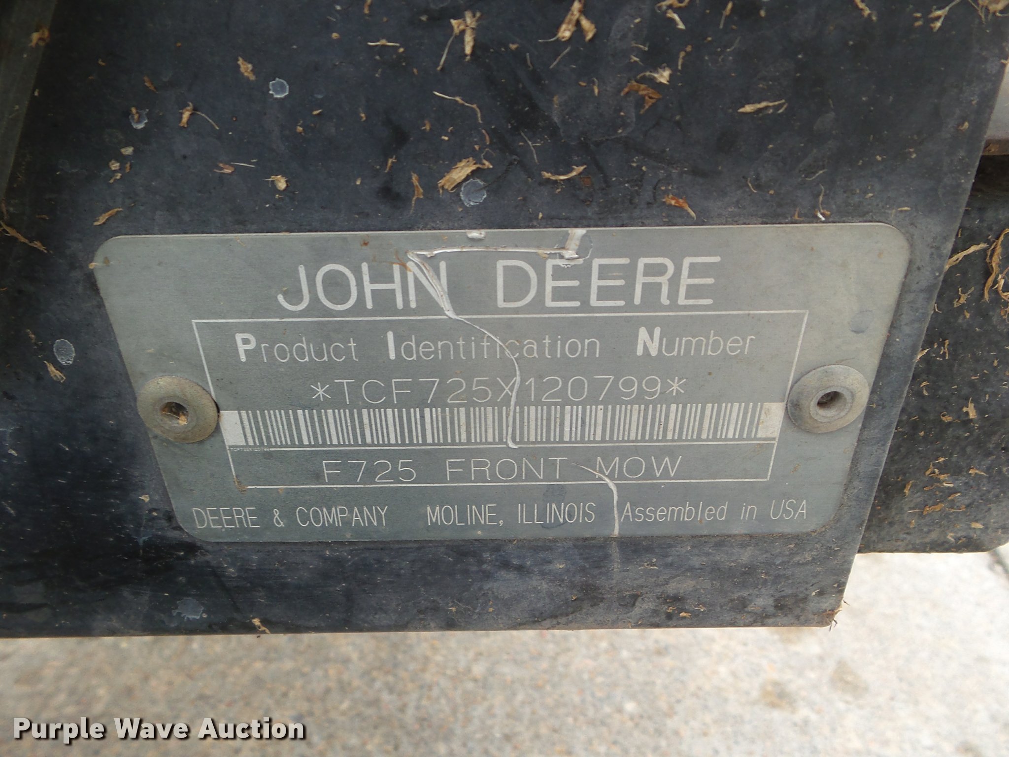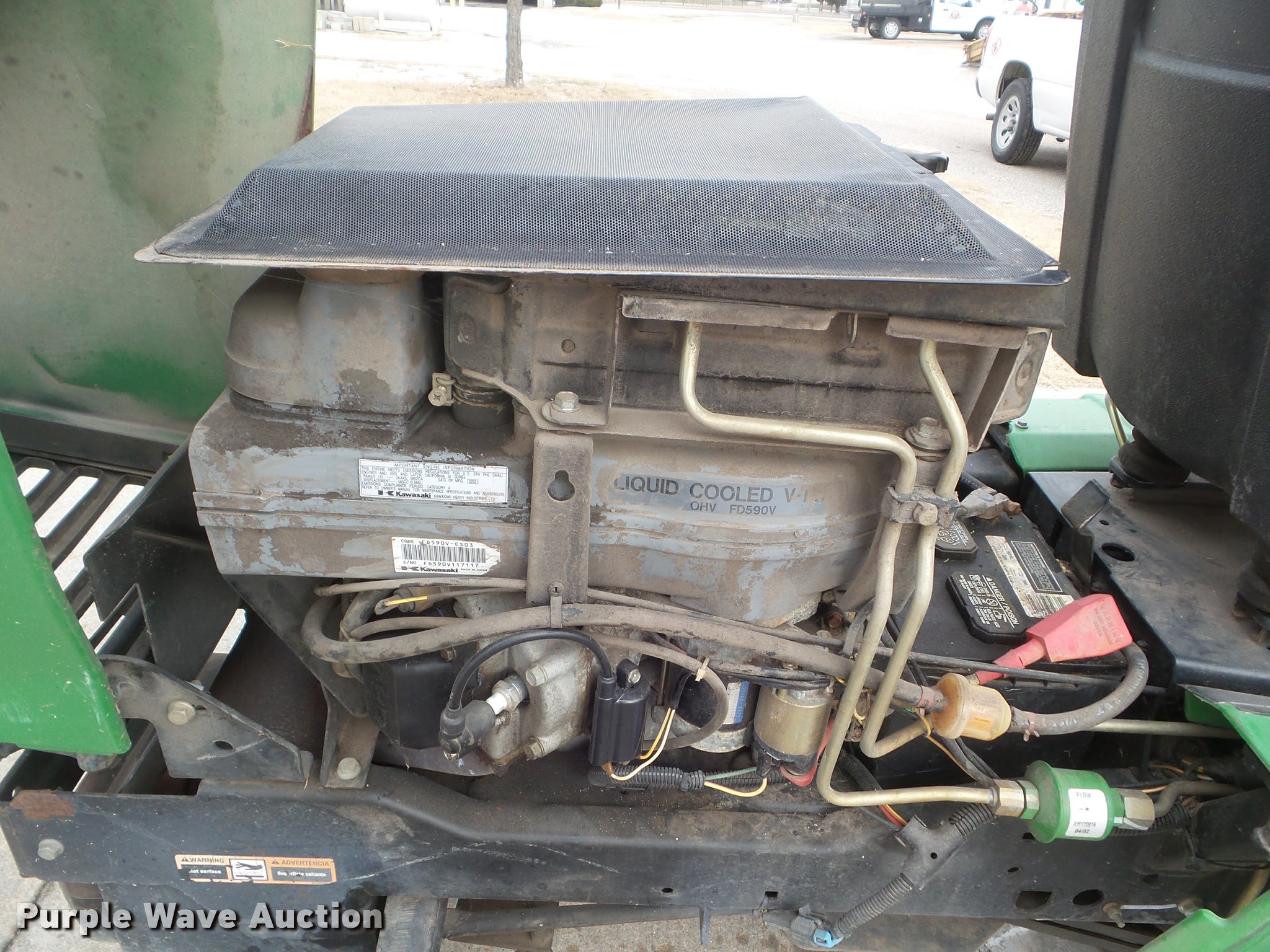 Purple Wave is selling a used Lawn Mower in Kansas. This item is a John Deere F725 lawn mower with the following: 775 hours on meter, 48"W deck, Kawasaki 585cc gas engine, Hydrostatic transmission, 20 x 10.00-8 front tires, 15 x 6.00-6 rear tires, Serial TCF725X120799