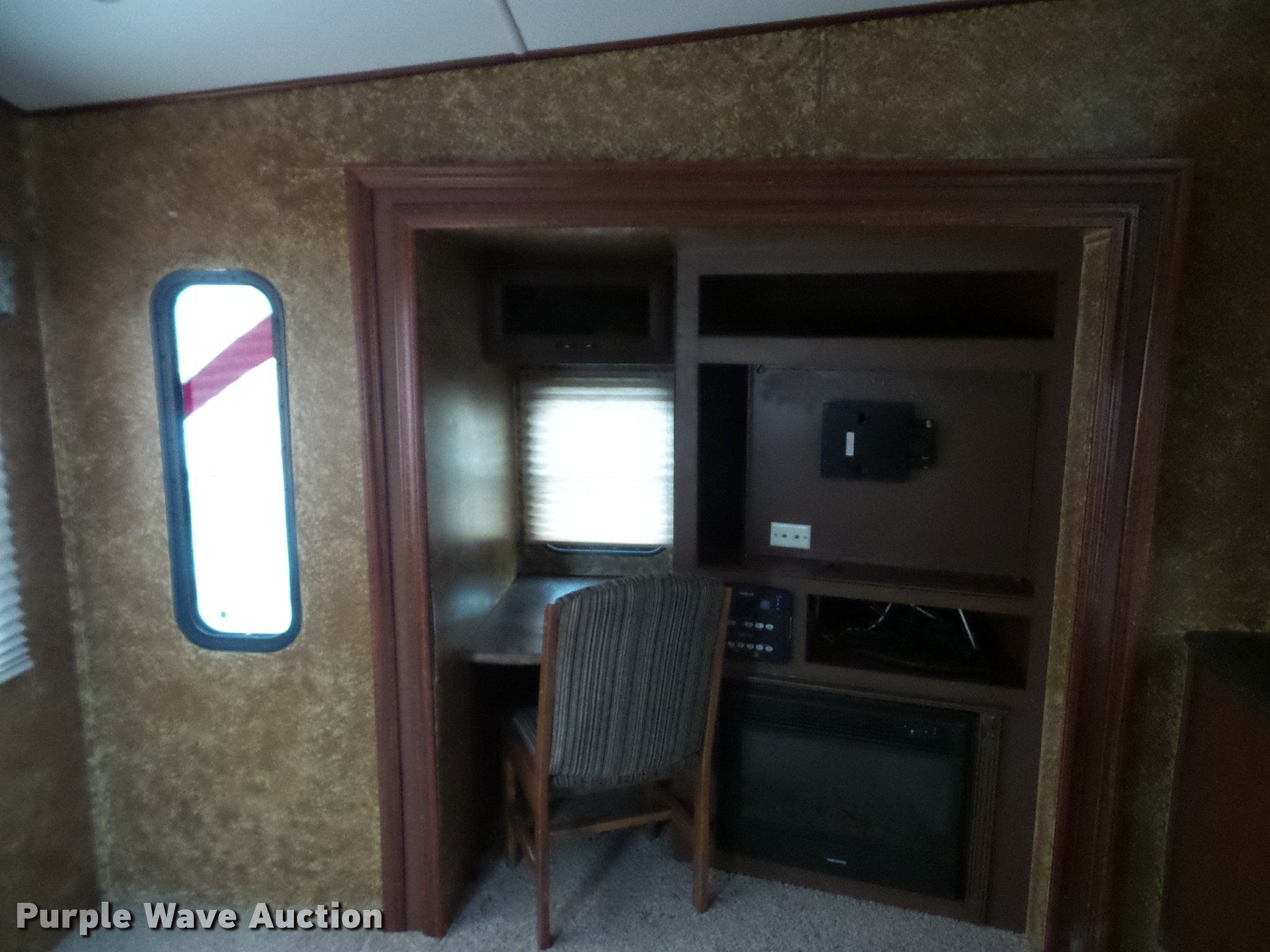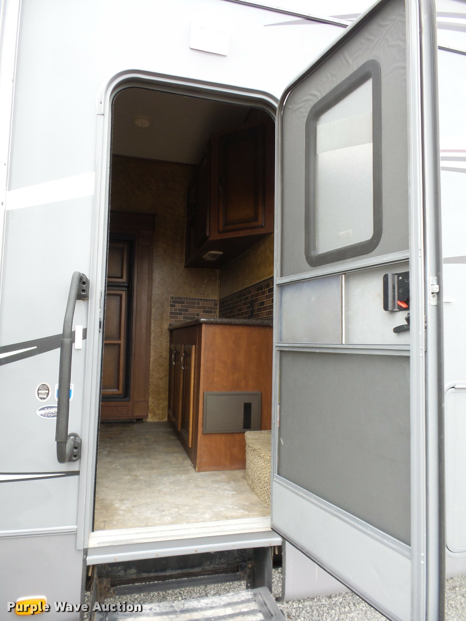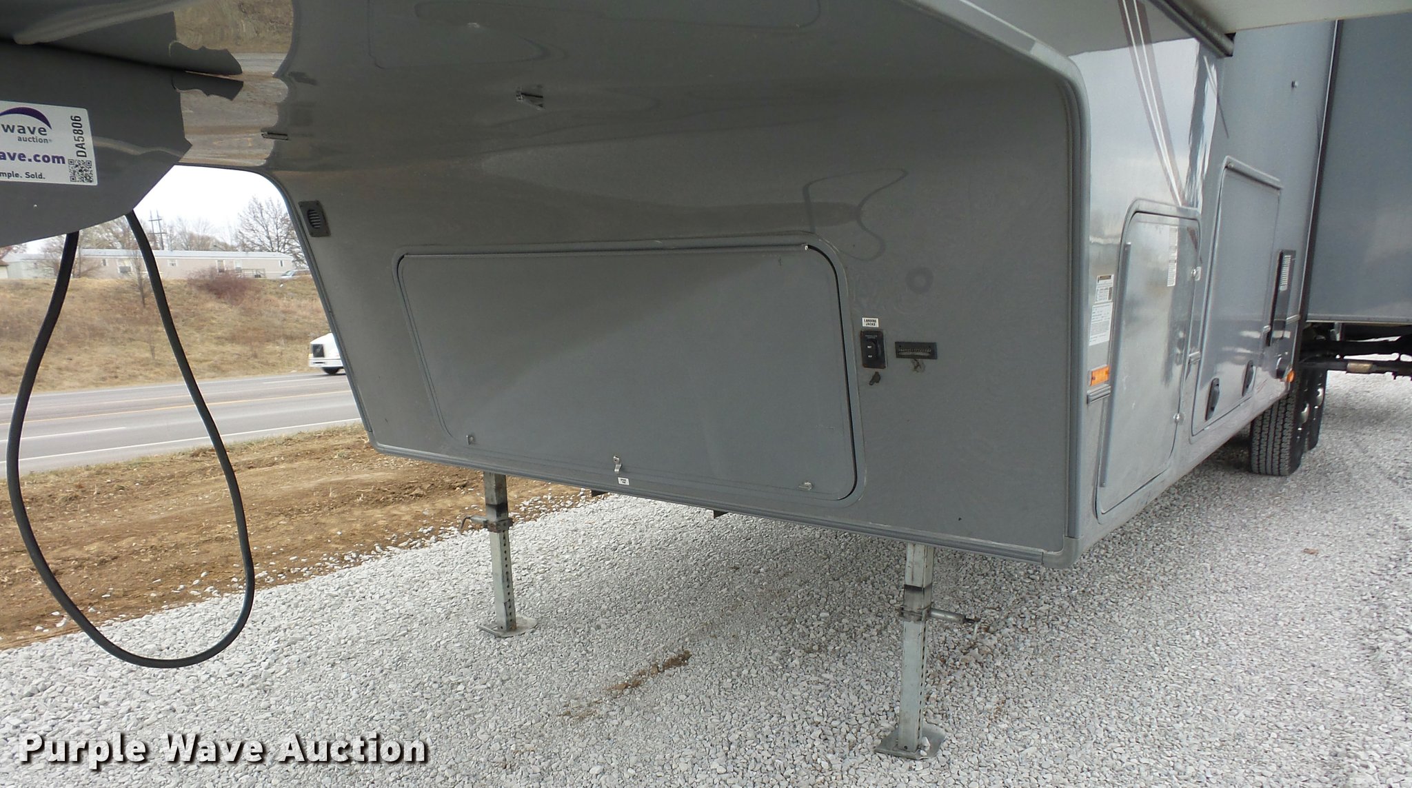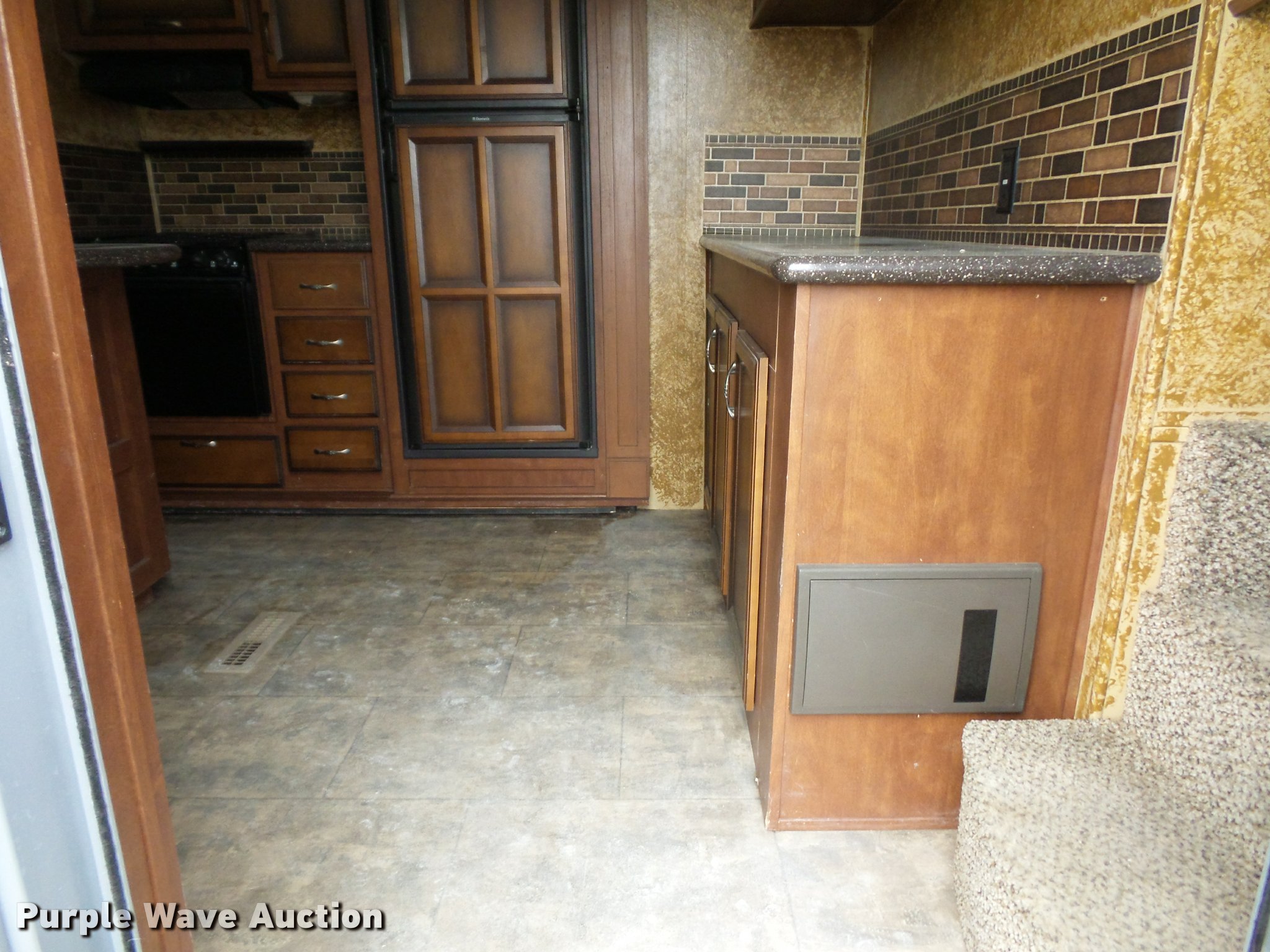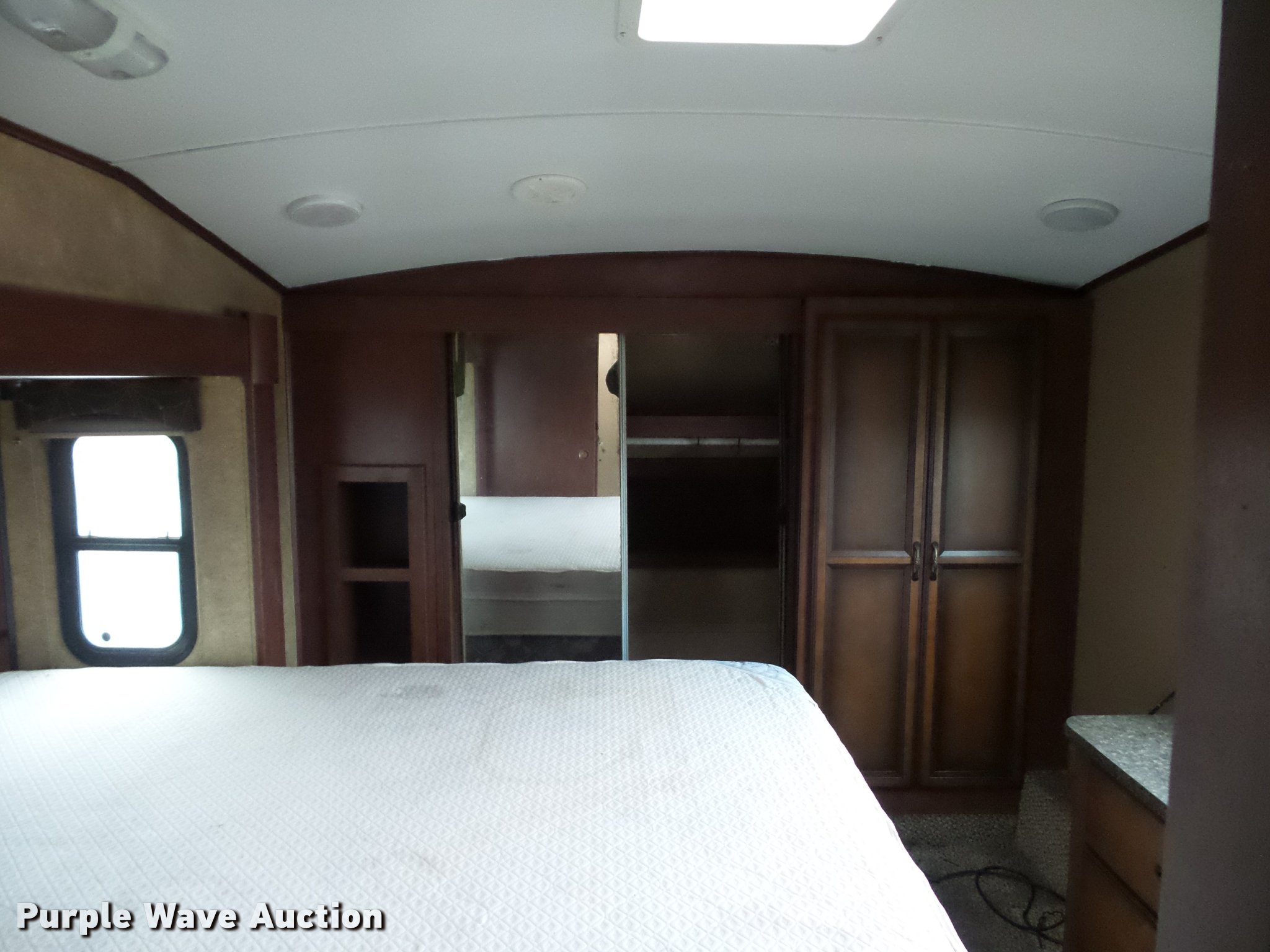 Purple Wave is selling a used RV in Missouri. This item is a 2012 Greystone 33QX camper with the following: 38'L, (3) slide-outs, Kitchen, Stove, Sink, Refrigerator/freezer, Desk, Fireplace, Bathroom, Sink, Toilet, Shower, Manual jack stand, Fifth wheel hitch, 235/80R16 tires, GVWR 13,930 lbs, Spring suspension, Electric brakes, Possible electrical issues