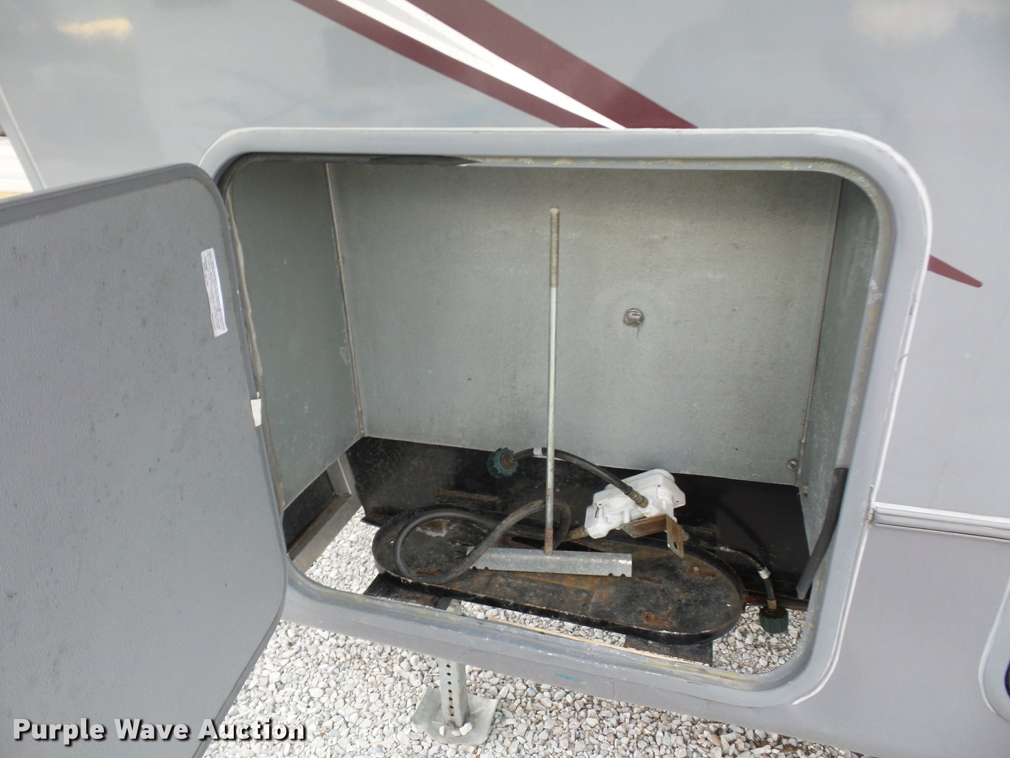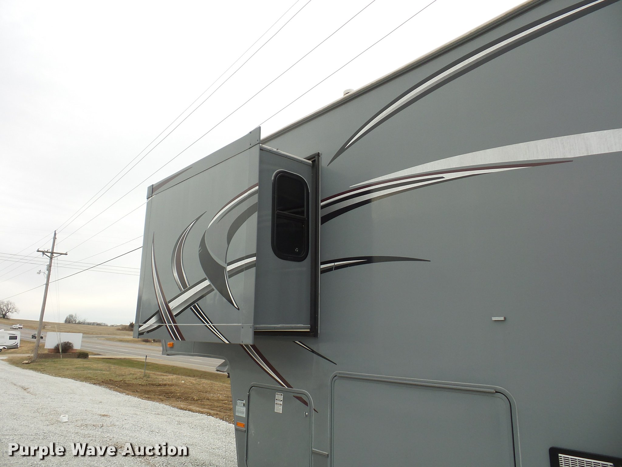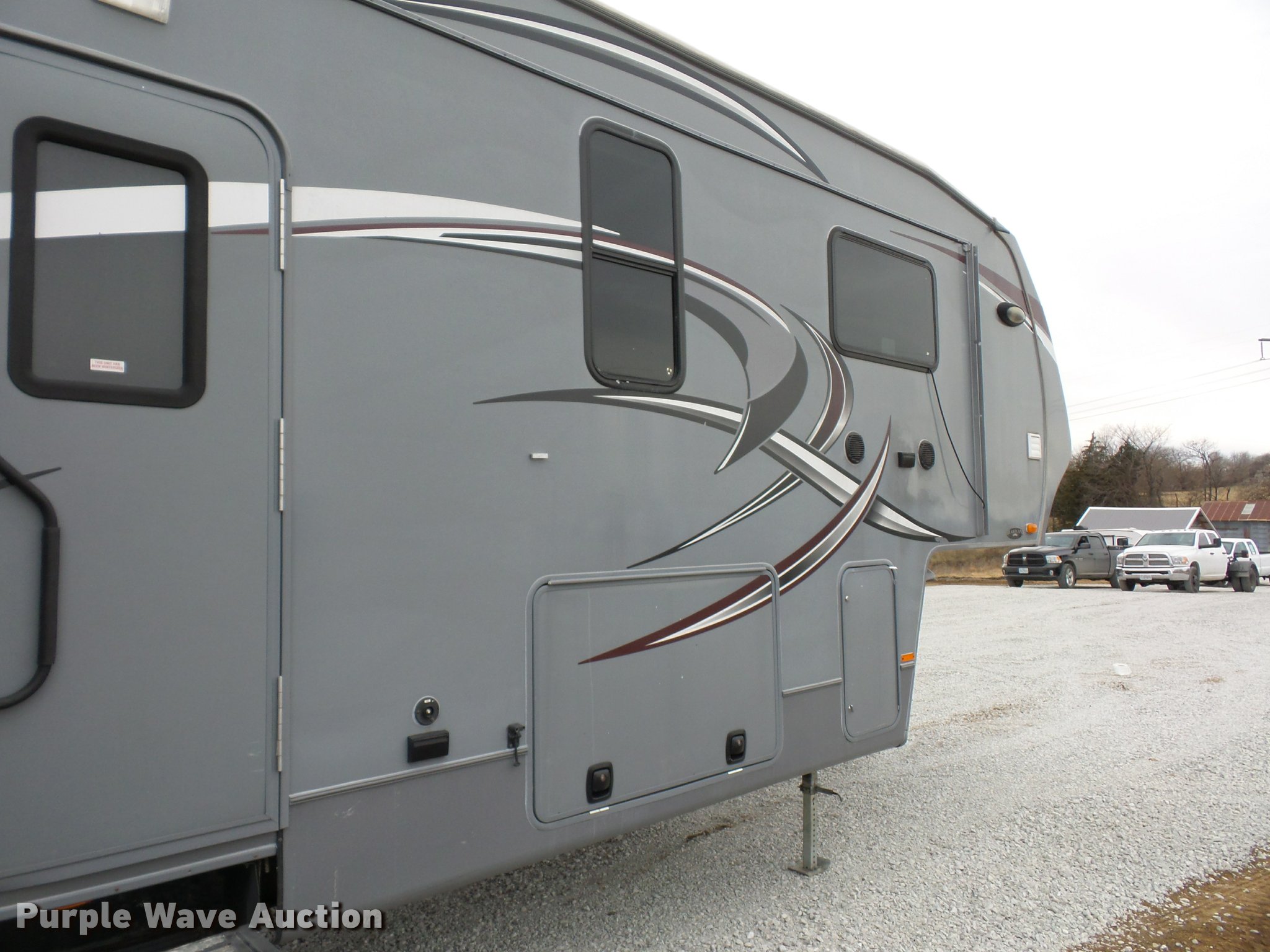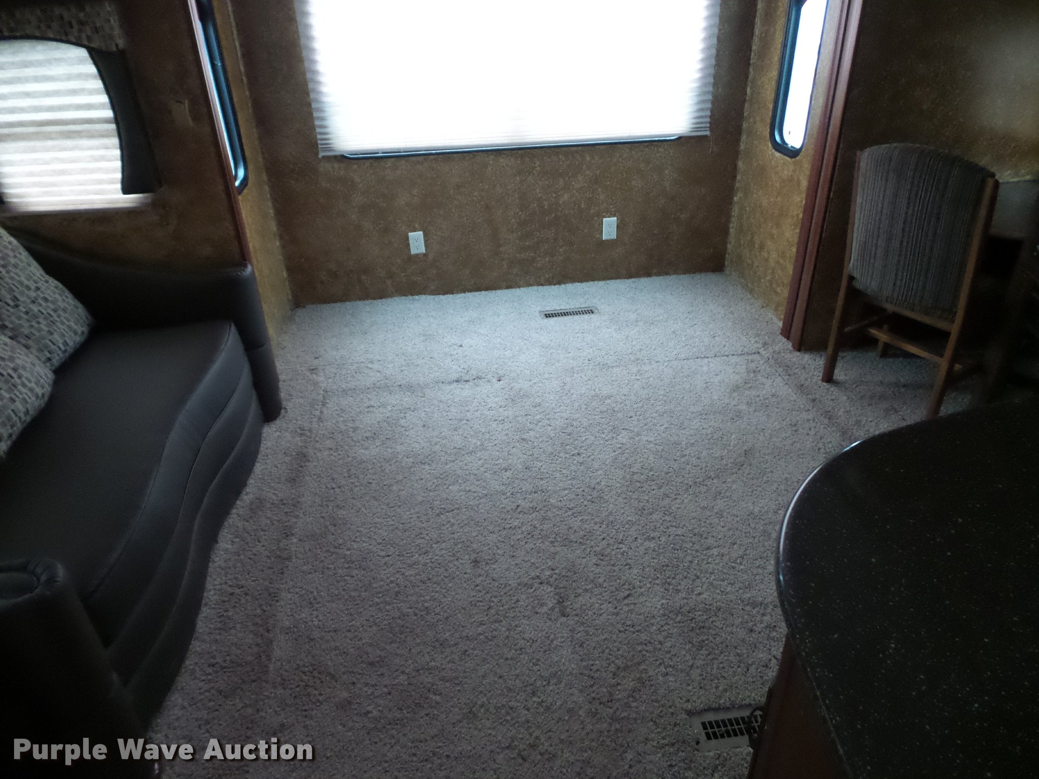 Purple Wave is selling a used RV in Missouri. This item is a 2012 Greystone 33QX camper with the following: 38'L, (3) slide-outs, Kitchen, Stove, Sink, Refrigerator/freezer, Desk, Fireplace, Bathroom, Sink, Toilet, Shower, Manual jack stand, Fifth wheel hitch, 235/80R16 tires, GVWR 13,930 lbs, Spring suspension, Electric brakes, Possible electrical issues