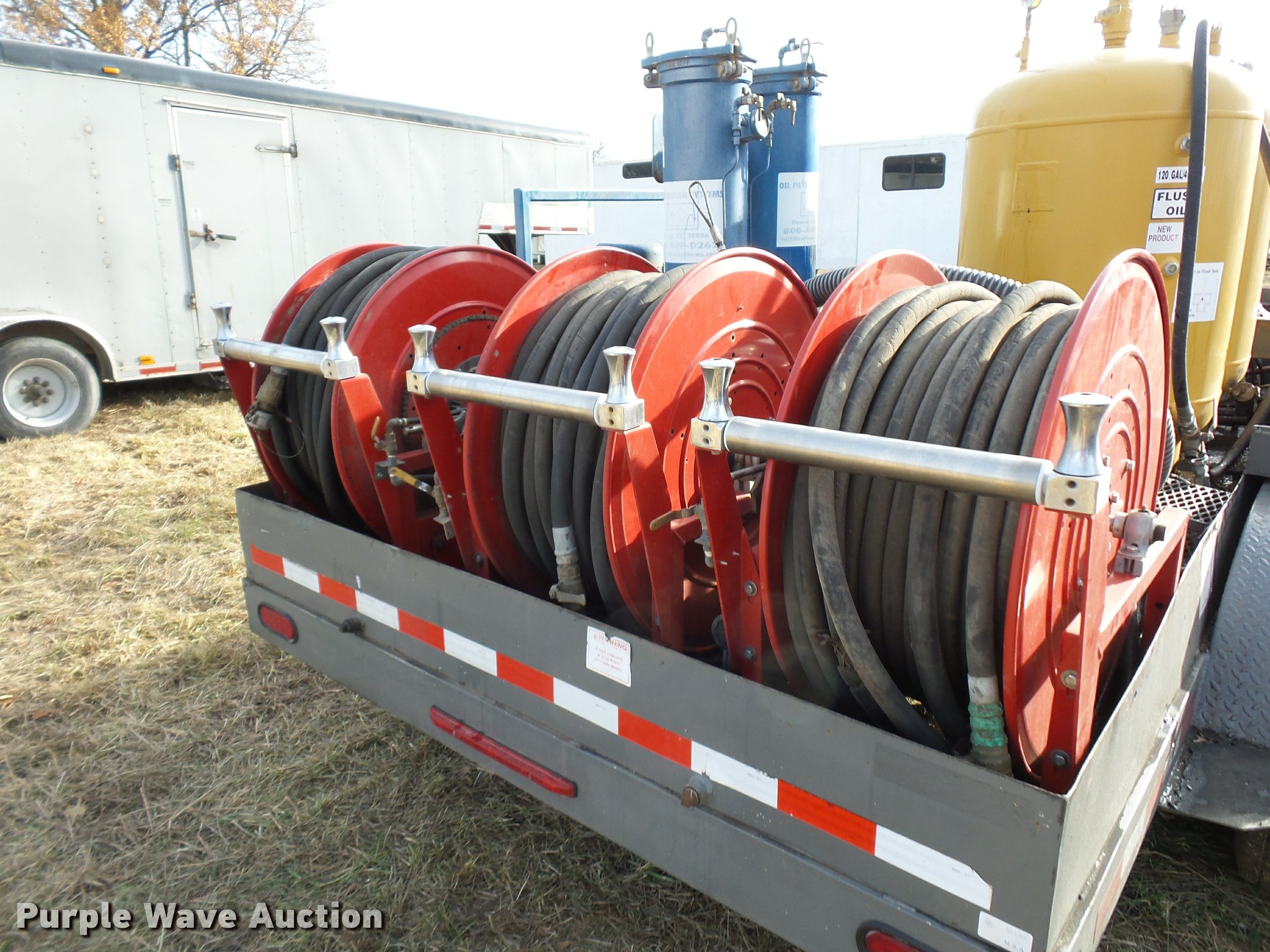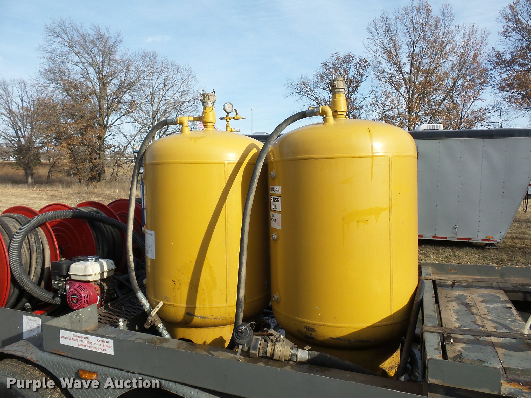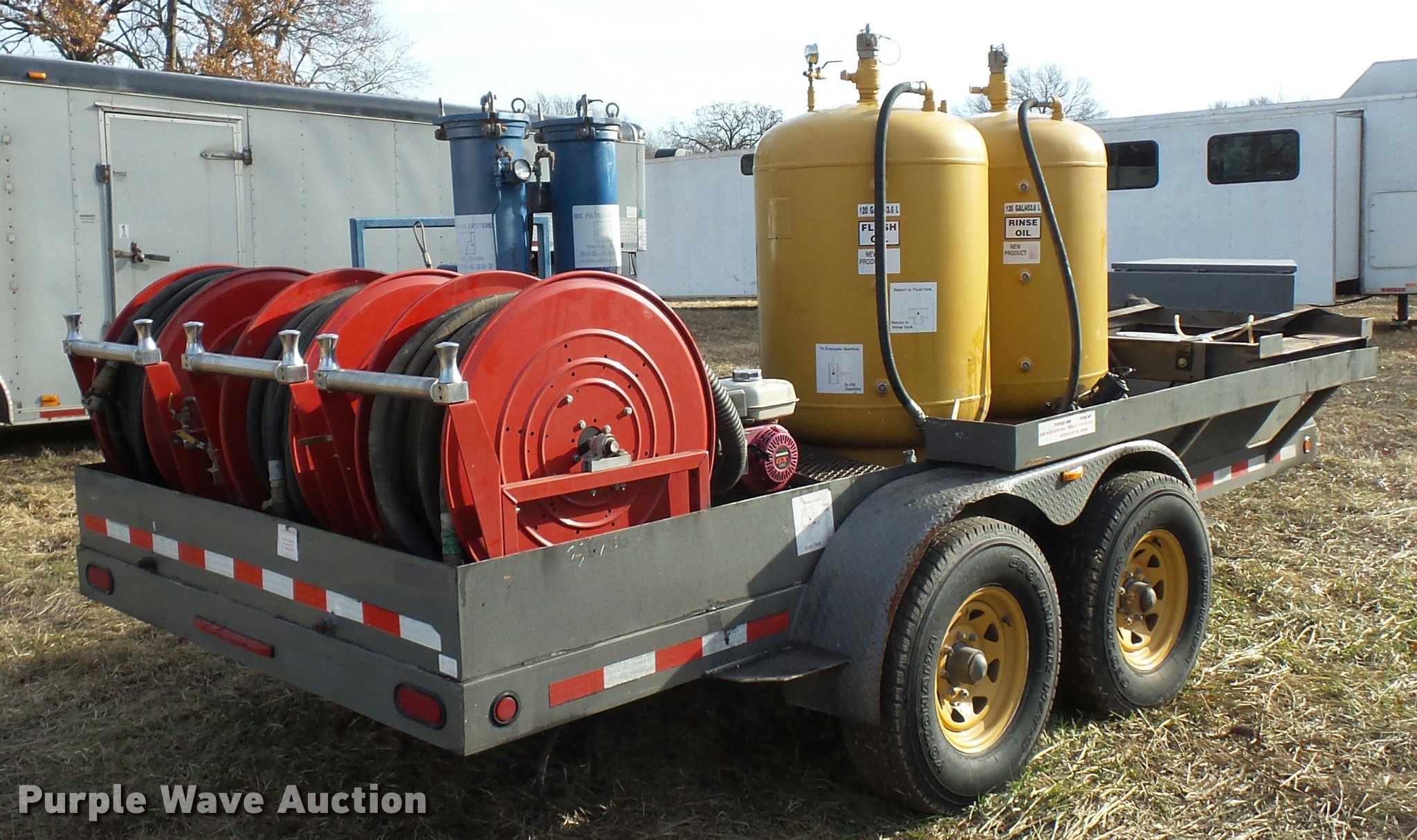 Purple Wave is selling a used Trailer Other in Missouri. This item is a 2008 Sage oil vacuum lube trailer with the following: 14'L x 77"W deck, Honda GX160 gas engine, (2) tanks, 120 gallon capacities, (3) hose reels, Tool box, Manual jack stand, 2 5/16" ball hitch, 235/85R16 tires, GVWR 13,560 lbs, GAWR 6,150 lbs, Spring suspension, Non-operational unit, Parts missing