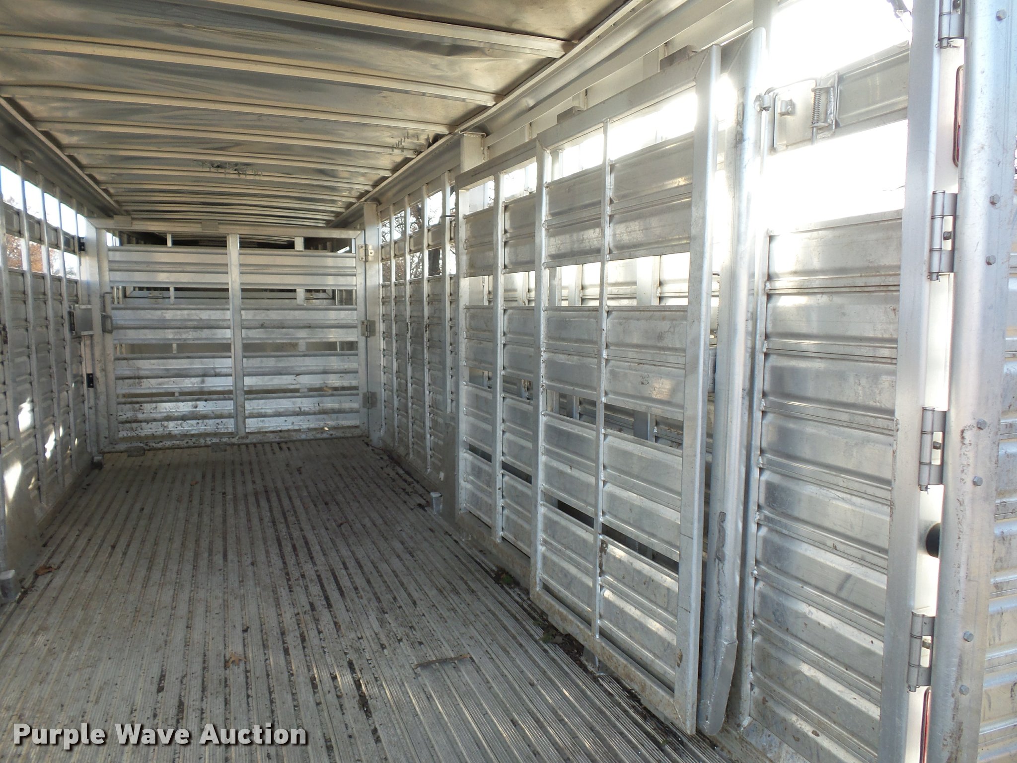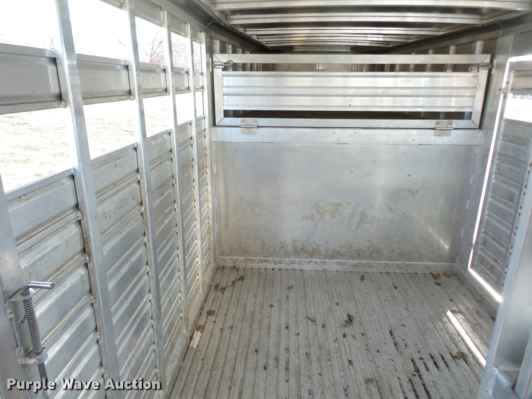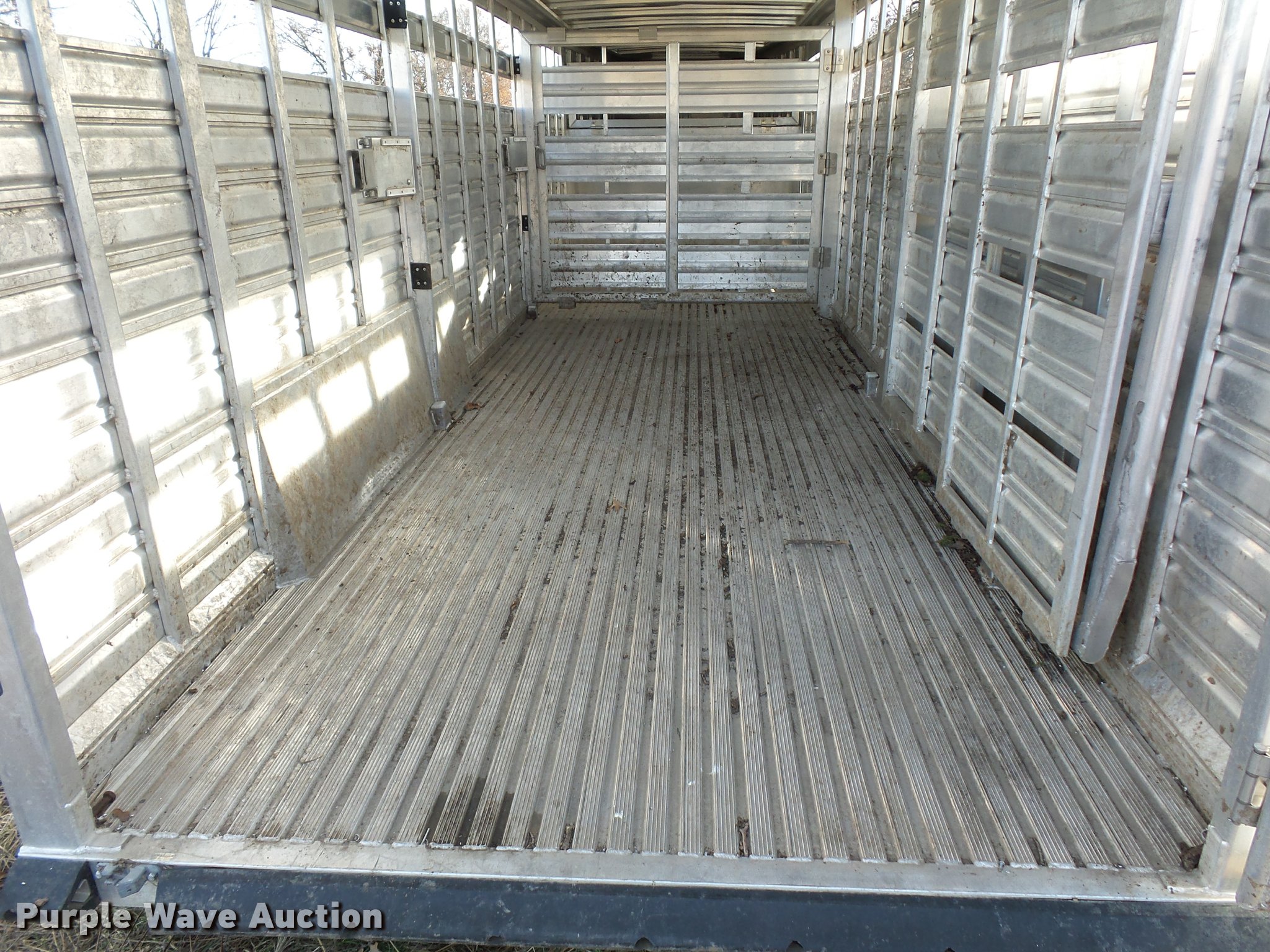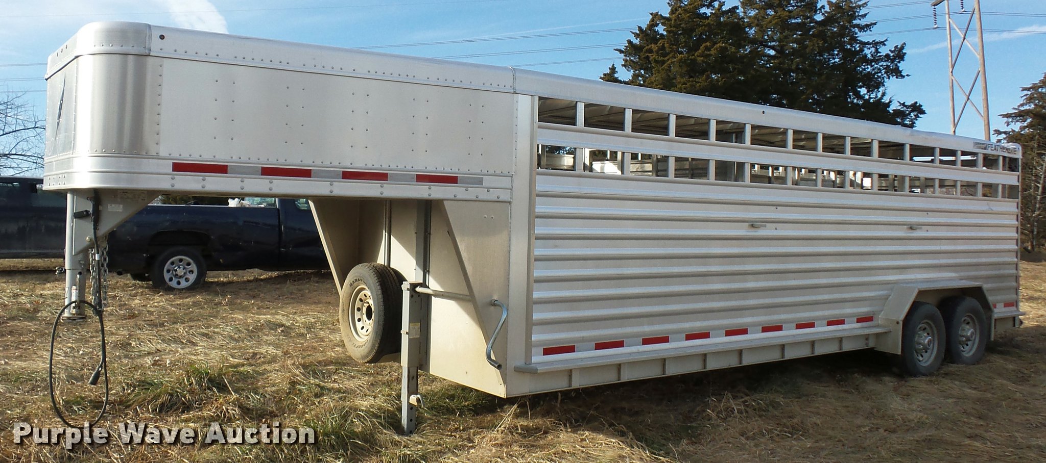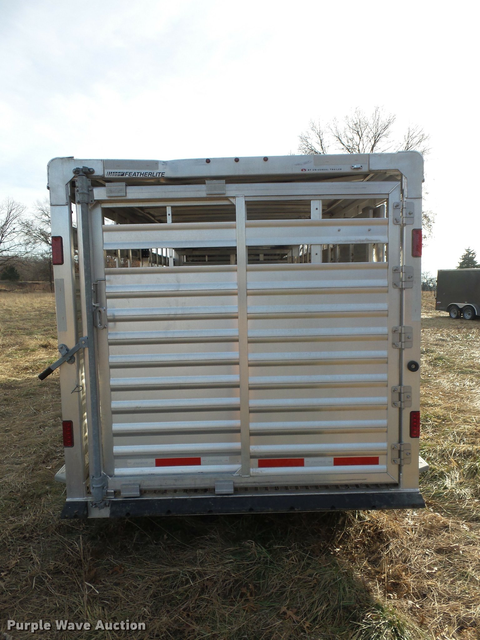 Purple Wave is selling a used Livestock Trailer in Missouri. This item is a 2014 Featherlite livestock trailer with the following: 24'L, 7'L lower deck, Manual jack stand, Gooseneck hitch, 235/80R16 tires, GVWR 14,000 lbs, Spring suspension, Electric brakes