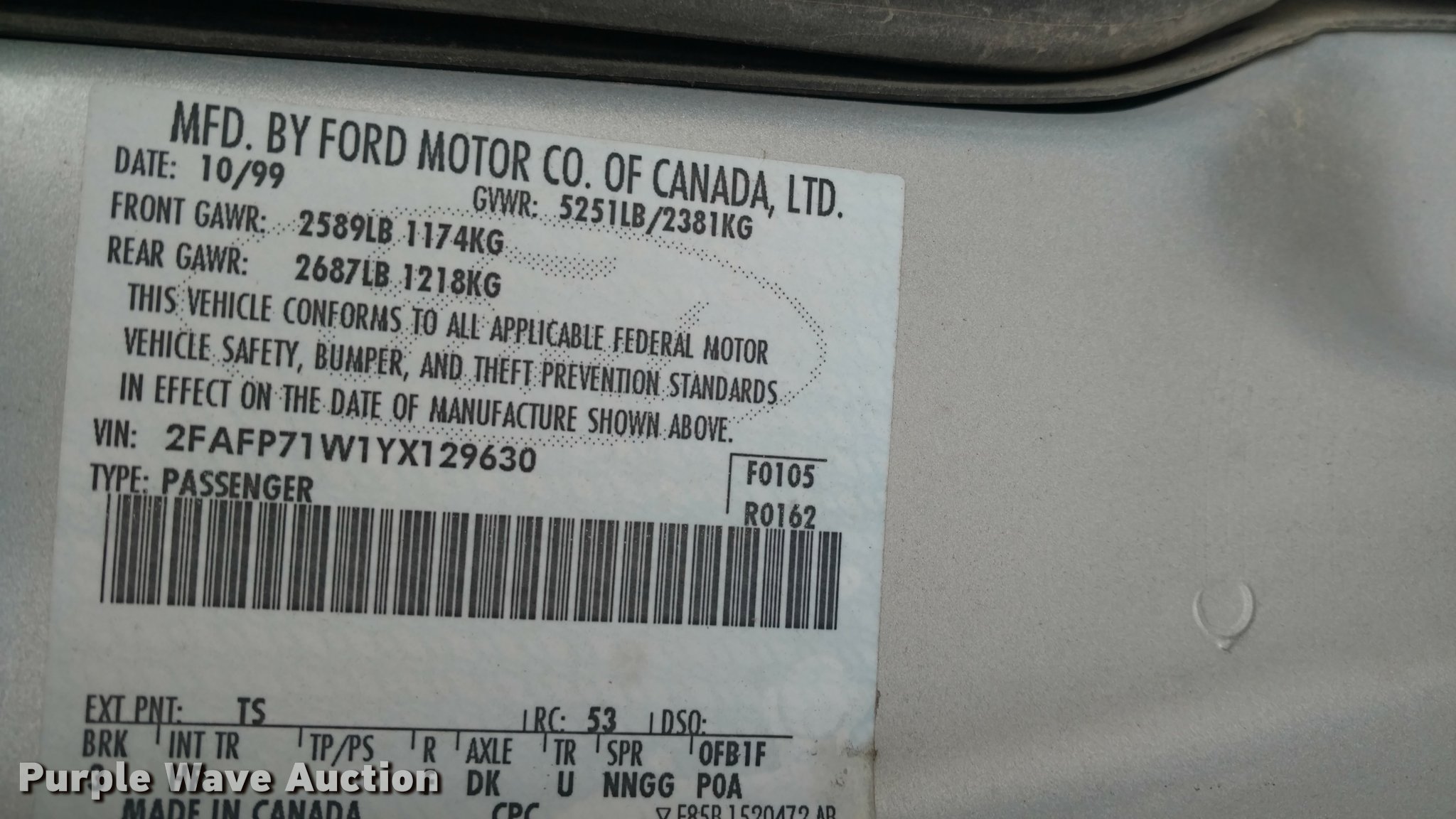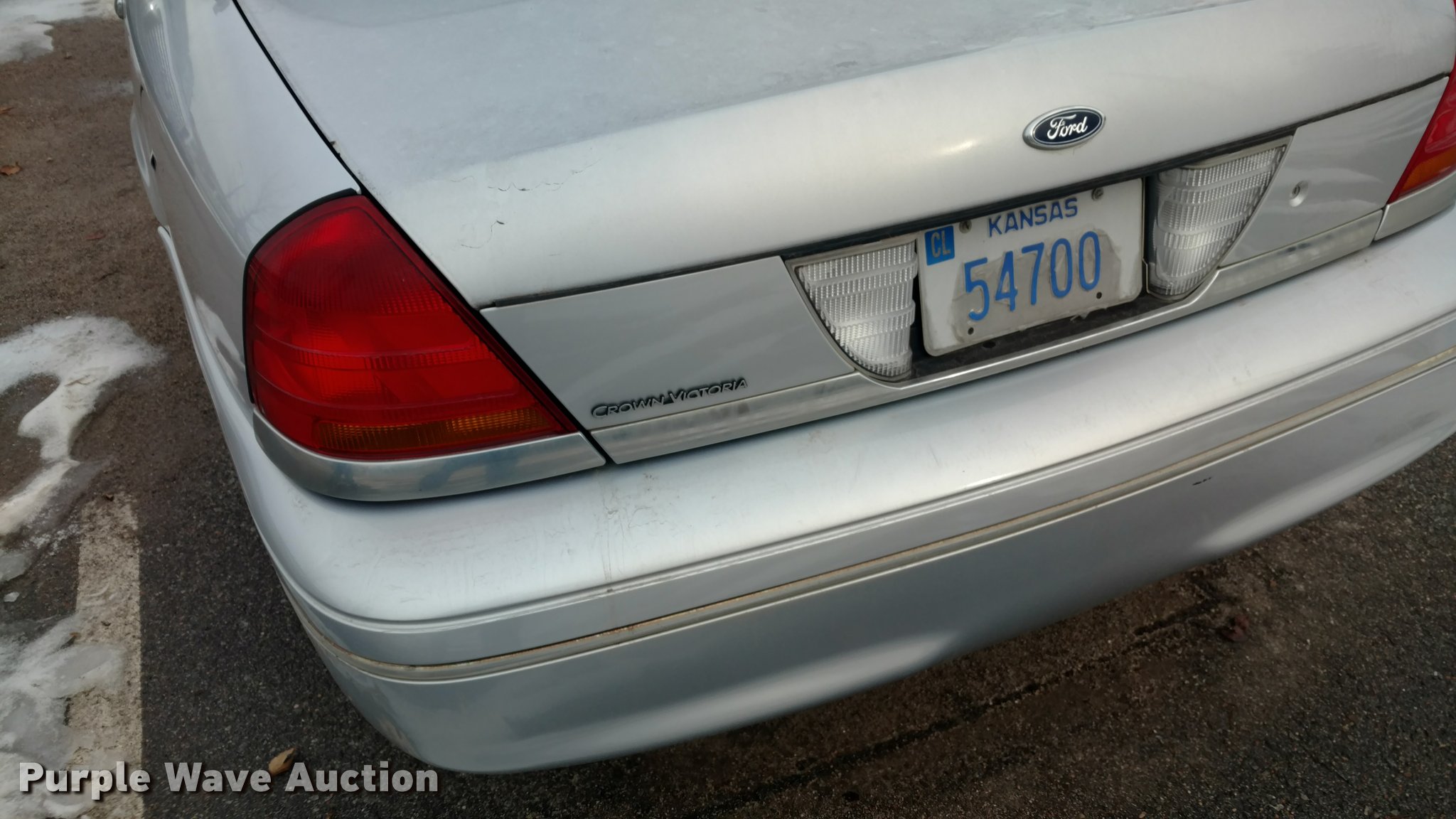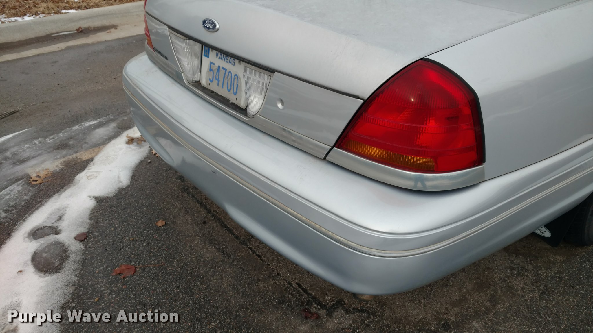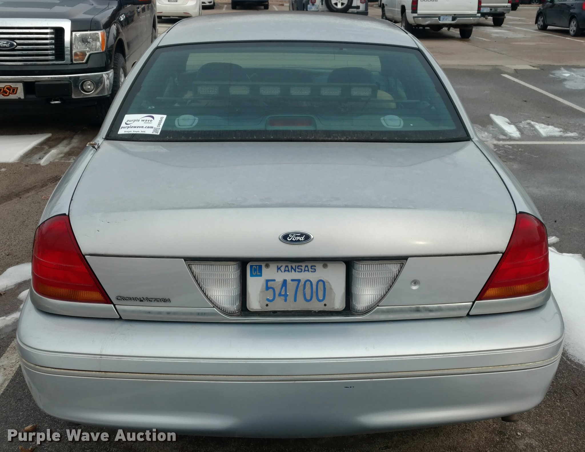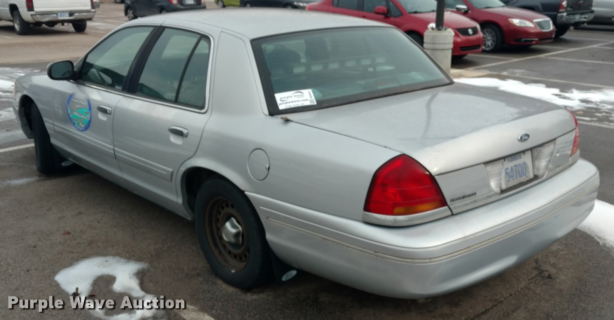 Purple Wave is selling a used Passenger Vehicle in Kansas. This item is a 2000 Ford Crown Victoria Police Interceptor with the following: 135,944 miles on odometer, 4.6L V8 SOHC 16V gas engine, Automatic transmission, AC and heat, Tilt, Cruise, AM/FM, Power windows and locks, Cloth interior, 225/60R16 tires, Hail damage, Unknown issues, Anti-freeze in engine oil, Decals, emergency lights, and sirens not included will be removed prior to auction, Battery dead, Vehicle may need jump start