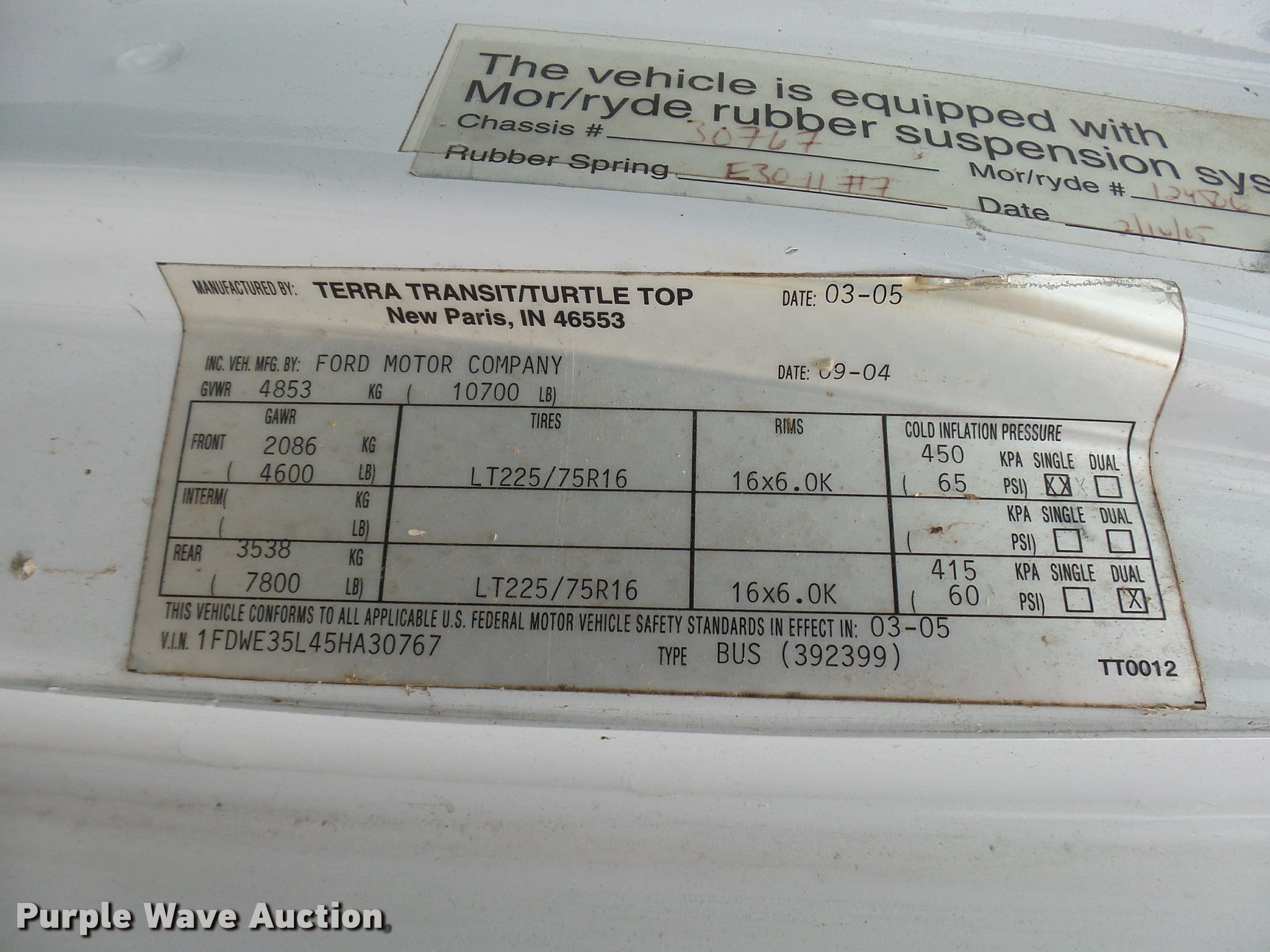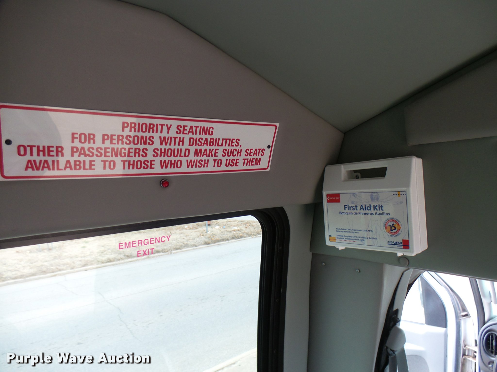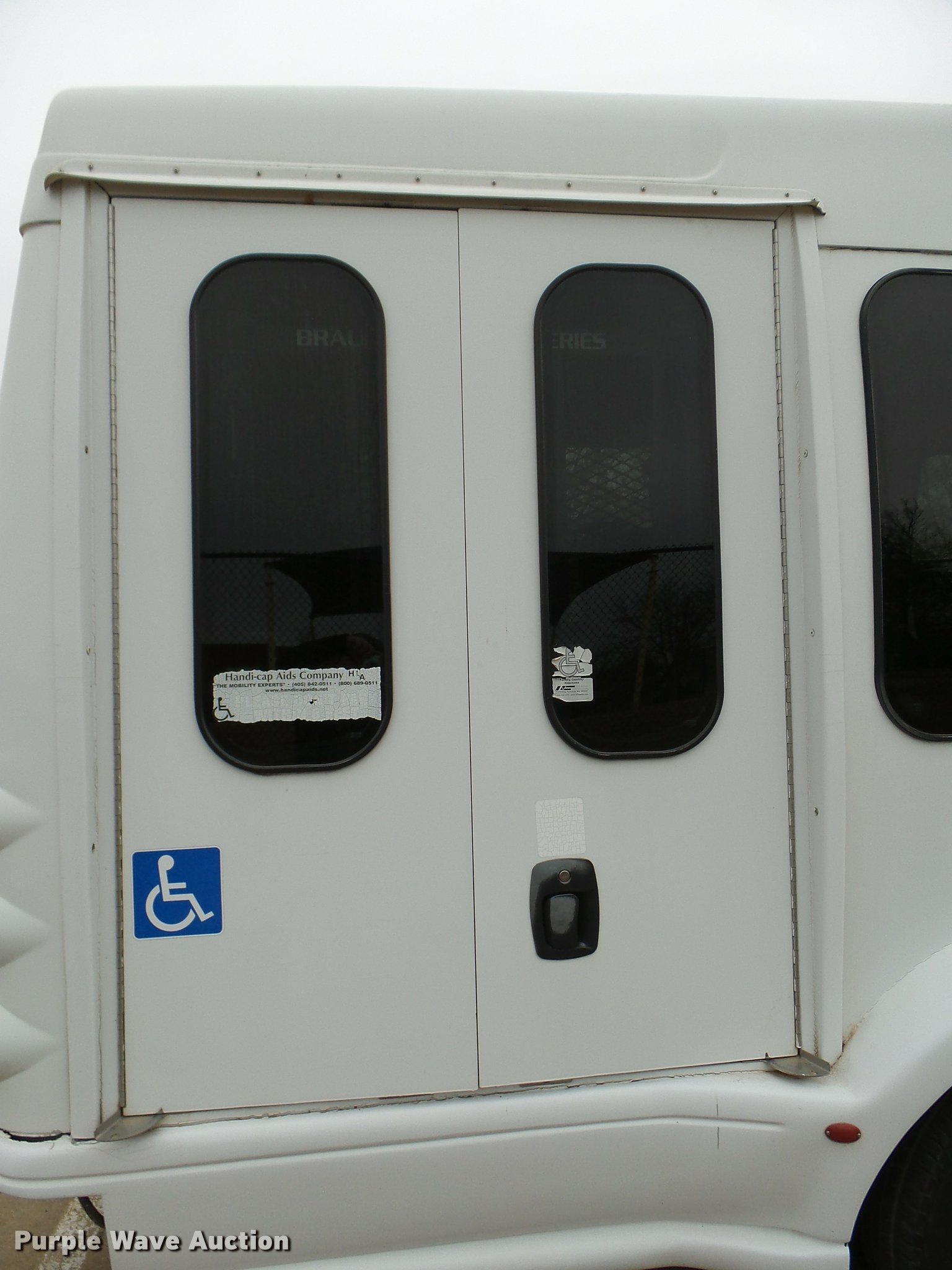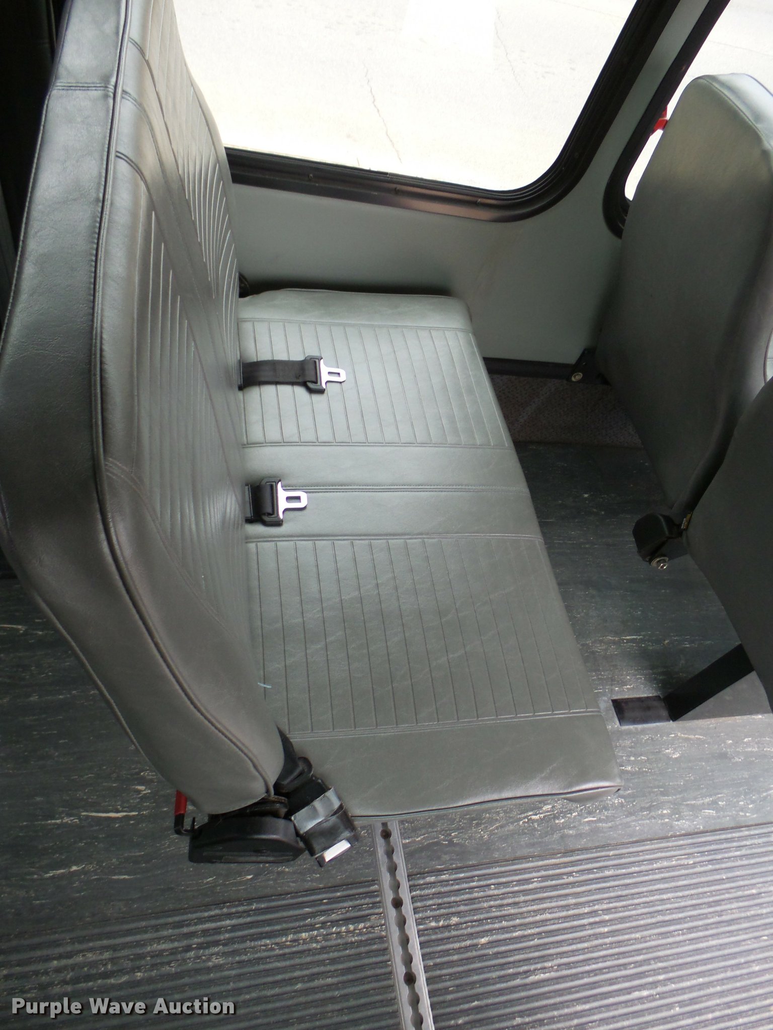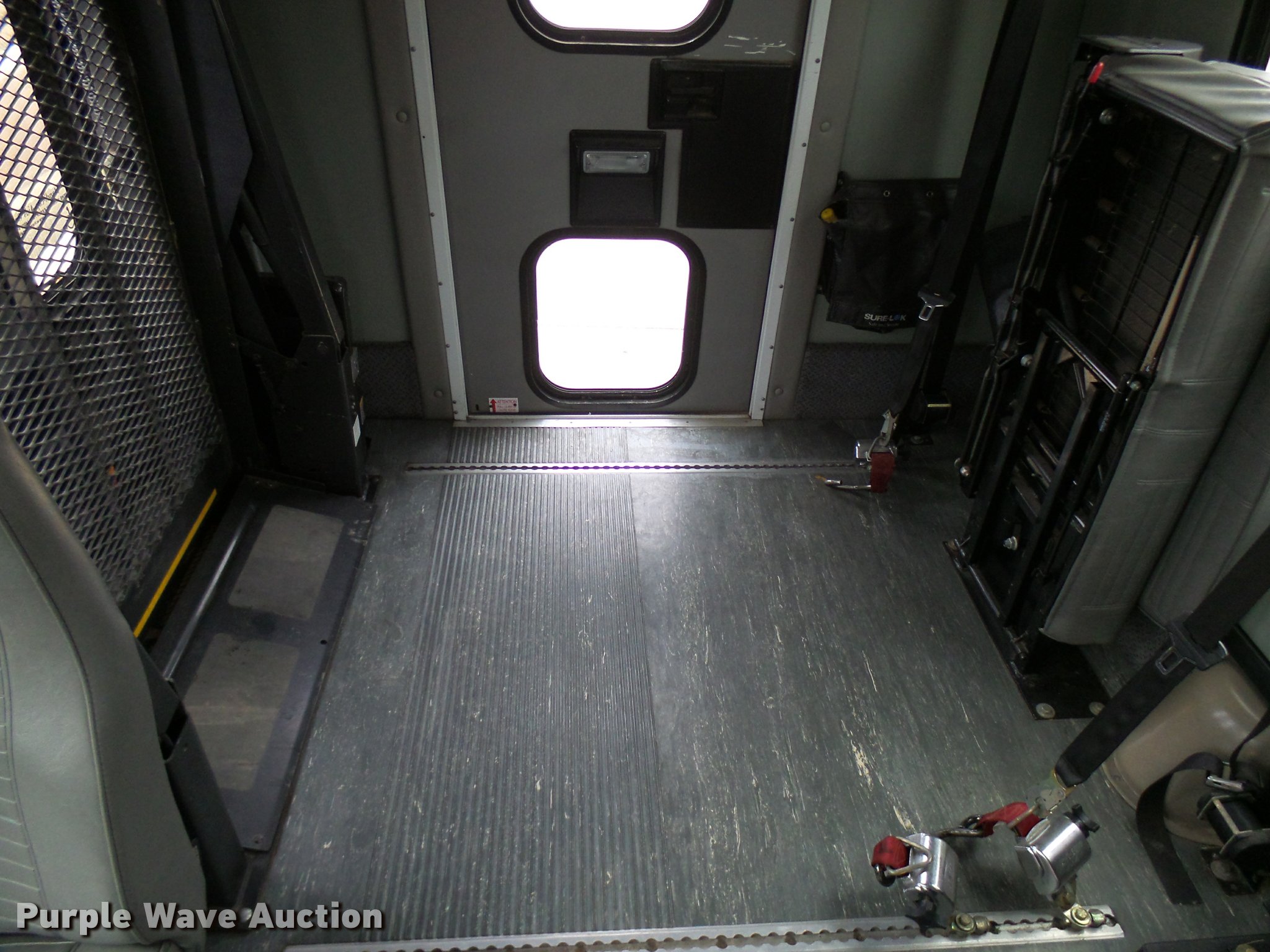Purple Wave is selling a used Bus in Oklahoma. This item is a 2005 Ford E350 Super Duty shuttle bus with the following: 153,462 miles on odometer, 5.4L V8 SOHC 16V gas engine, Automatic transmission, Single axle, AC and heat, Cruise, AM/FM/CD, Auxiliary controls, Electric passenger sliding door, 11 passenger capacity, (7) adult seats, Seat belts, Braun L9171B wheelchair lift, Serial 09-13015, Non-operational lift, Wheelchair tie down area, Front, rear, and side emergency egress, Emergency door alarms, Turtle Top conversion package, 225/75R16 tires, GVWR 10,700 lbs, Unit# 7
