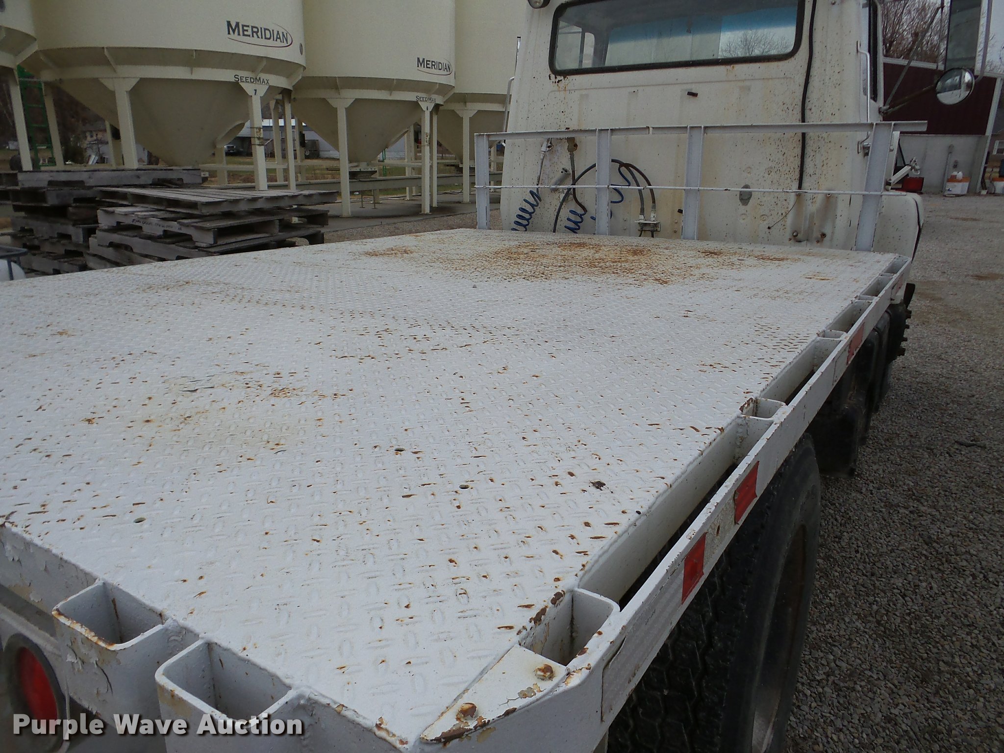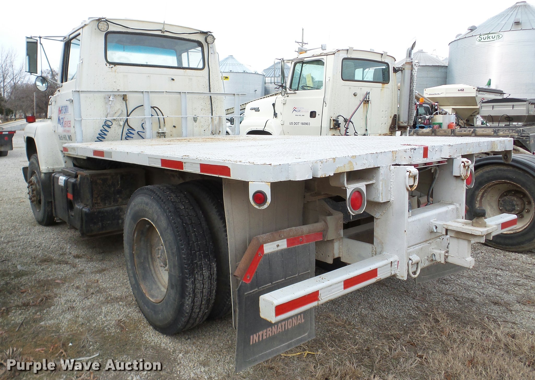 Purple Wave is selling a used Flat Bed Truck in Missouri. This item is a 1985 Ford LN9000 flatbed truck with the following: 448,813 miles on odometer, Cummins L10 10.0L L6 diesel engine, Nine speed manual transmission, Single axle, AM, Air suspension seat, 11'L x 8'W flatbed, Dual fuel tanks, Gooseneck hitch, Spring suspension, Air brakes, 11R22.5 tires