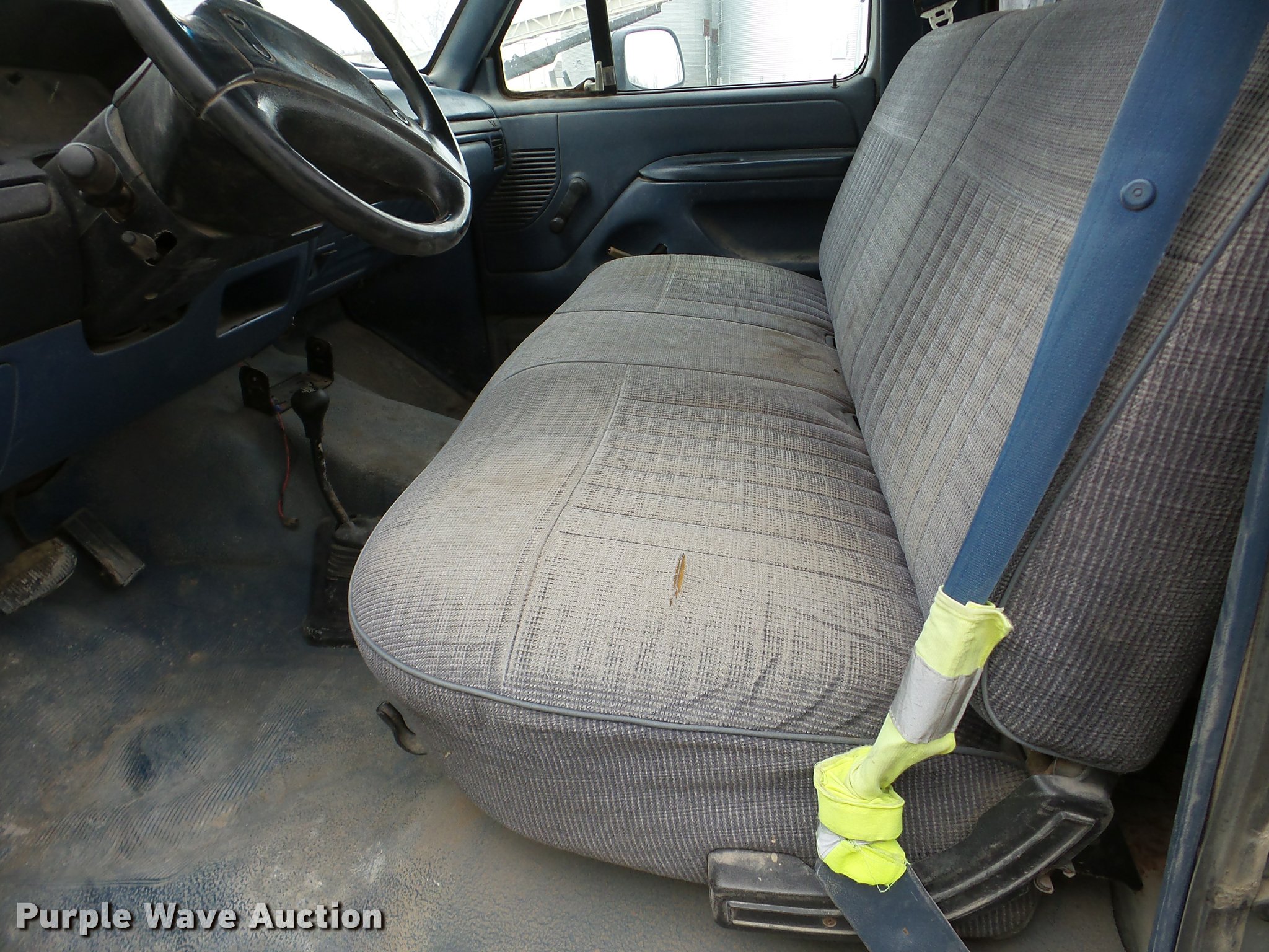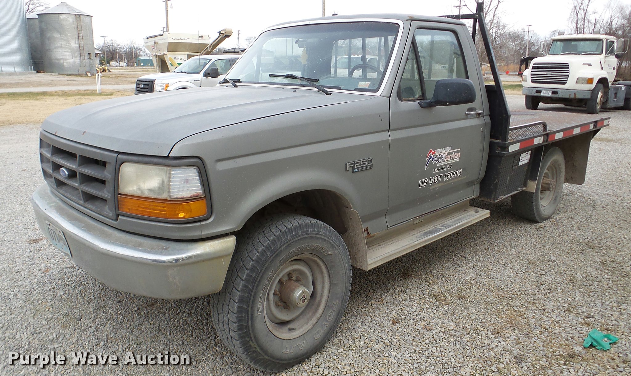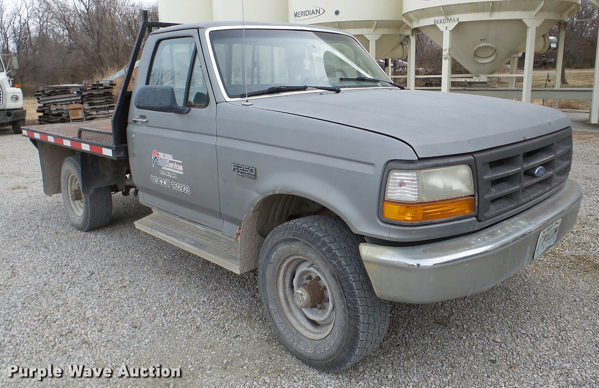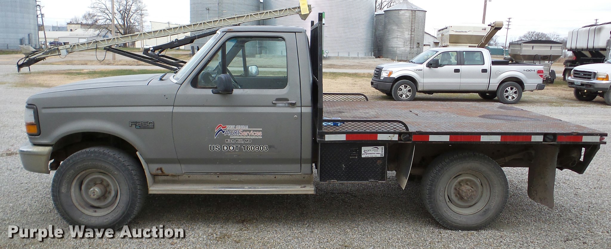 Purple Wave is selling a used 3/4 or 1 Ton Pickup or Van in Missouri. This item is a 1995 Ford F250 flatbed pickup truck with the following: 172,927 miles on odometer, 5.8L V8 OHV 16V gas engine, Automatic transmission, Four wheel drive, AC and heat, AM/FM, Manual windows and locks, Cloth interior, 102"L x 7'W flatbed, Gooseneck hitch, Receiver hitch, 265/75R16 tires, Exhaust leak