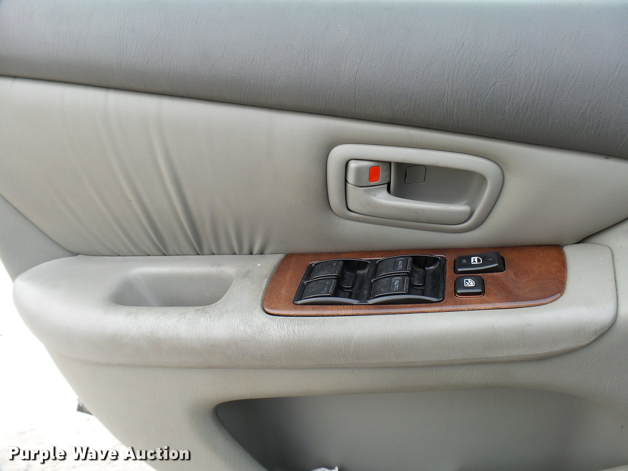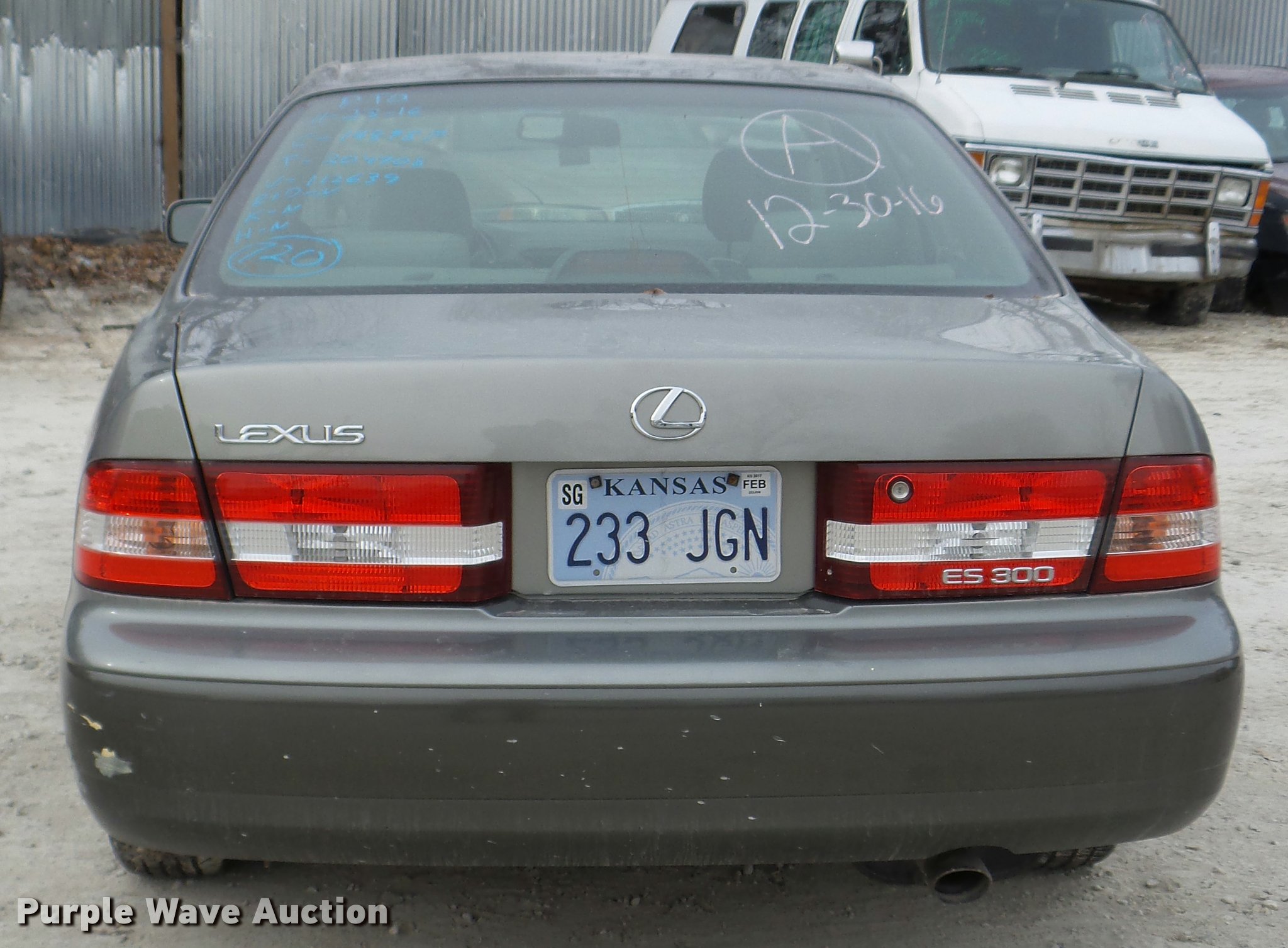 Purple Wave is selling a used Passenger Vehicle in Kansas. This item is a 2001 Lexus ES 300 with the following: Unknown miles on odometer, 3.0L V6 DOHC 24V gas engine, Automatic transmission, AC and heat, Tilt, Cruise, AM/FM/cassette, Power windows, locks, mirrors, and seat, Heated seats, Leather interior, Power sunroof, Fog lights, 205/60R16 tires, No keys