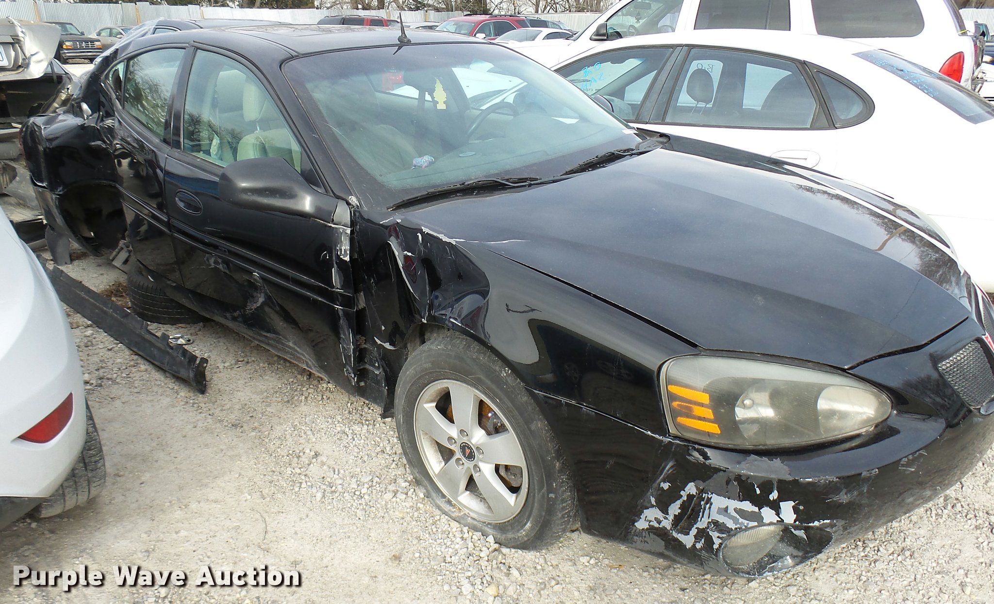 Purple Wave is selling a used Passenger Vehicle in Kansas. This item is a 2005 Pontiac Grand Prix with the following: Unknown miles on odometer, 3.8L V6 OHV 12V gas engine, Automatic transmission, AC and heat, Tilt, Cruise, AM/FM/CD, Power windows, locks, mirrors, and seat, Vinyl interior, Power sunroof, Fog lights, 225/60R16 tires, Right rear collision damage, Flat tires, Cracked/missing glass, No keys