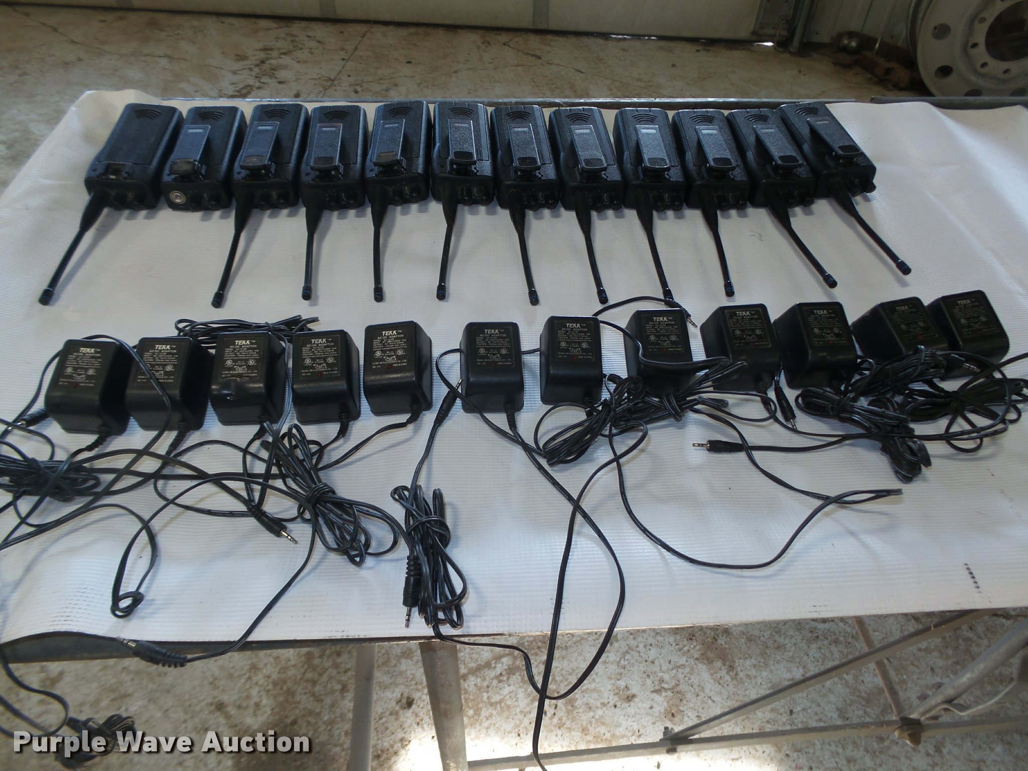 Purple Wave is selling a used Electronics in Nebraska. This item is a (18) Tekk NT40 two-way radios with the following: 110V, Chargers, (12) headsets, Various makes and models