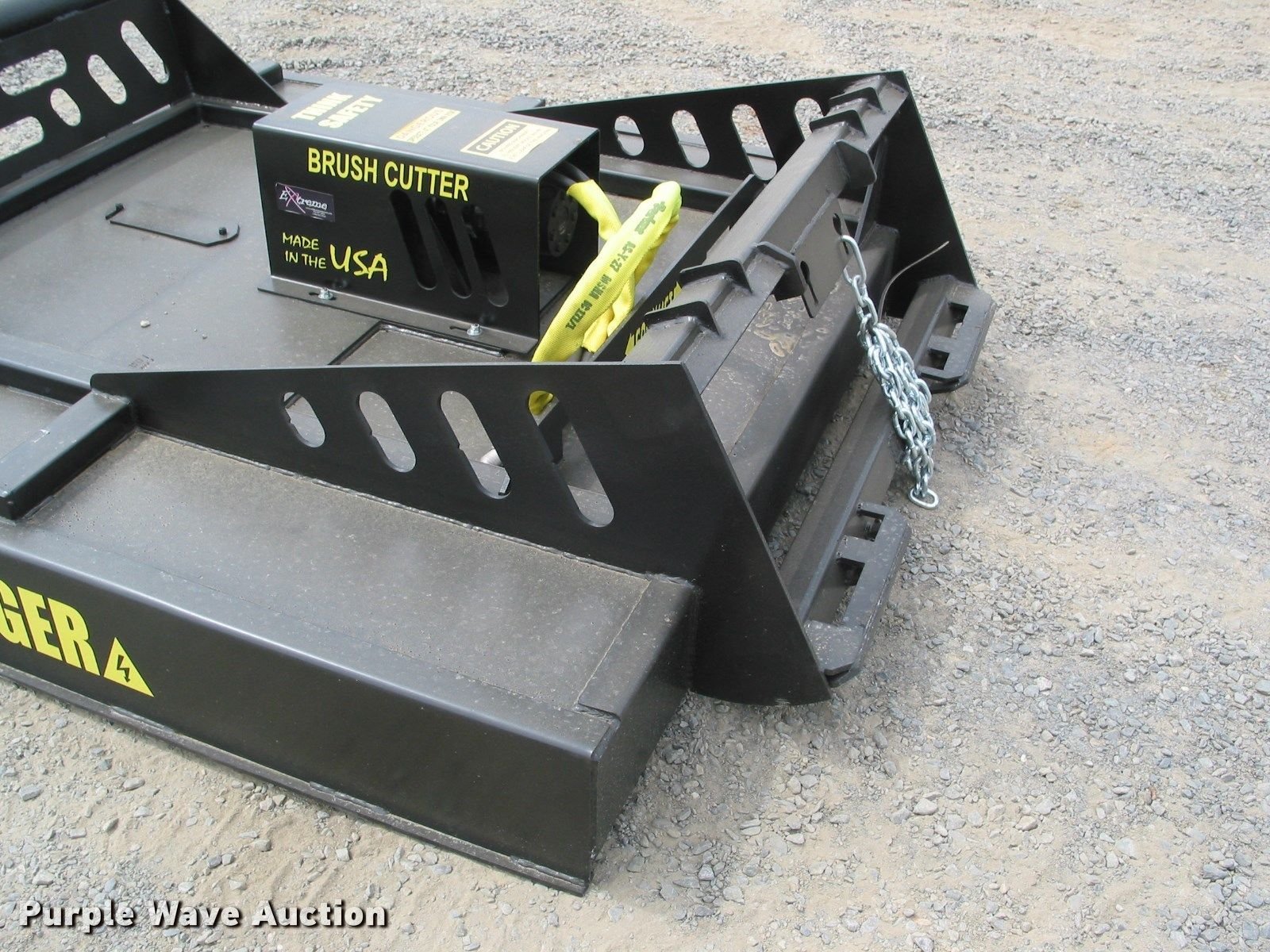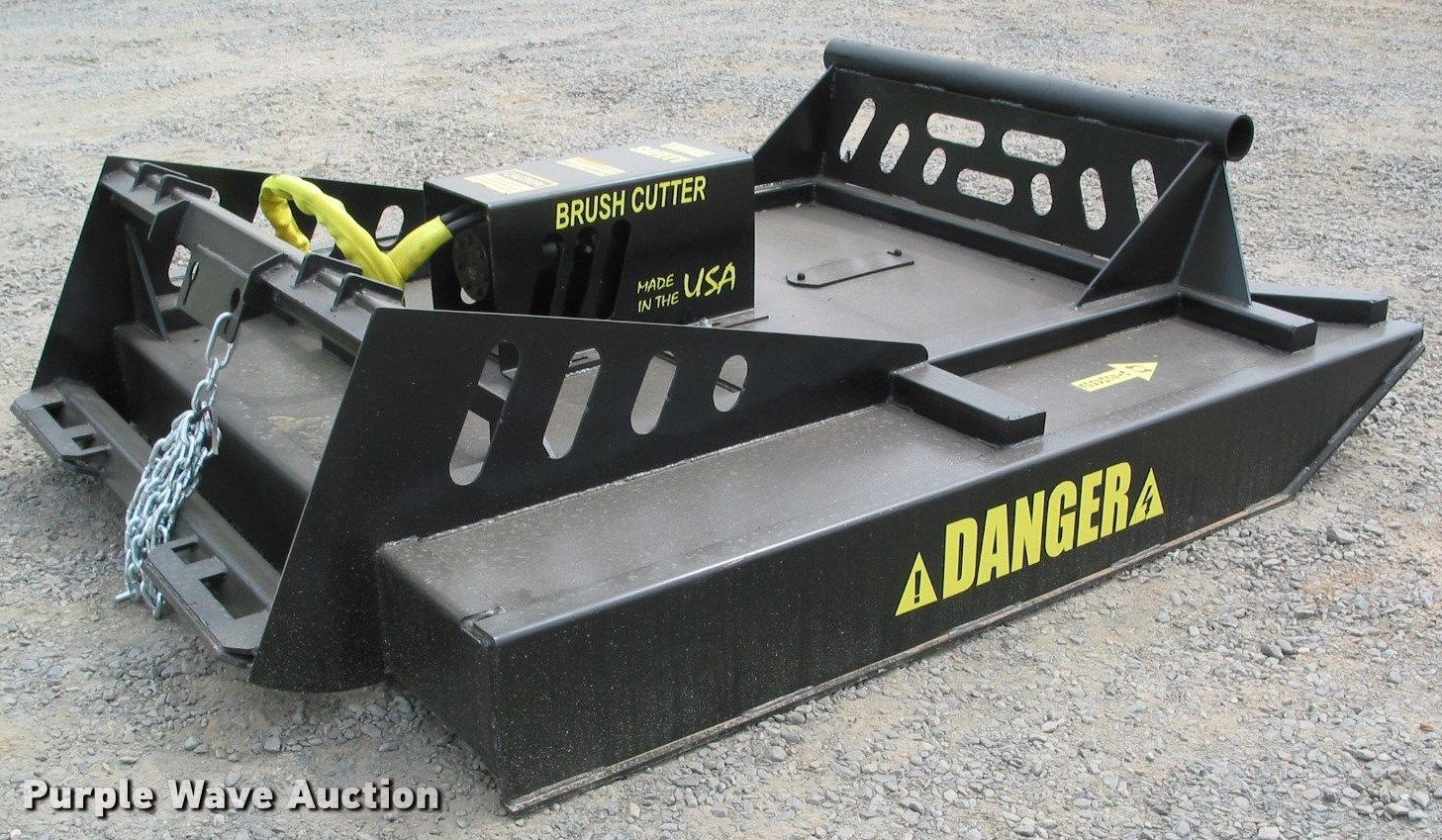 Purple Wave is selling a used Skid Steer Attach. in Kansas. This item is a 2016 Bush Hog skid steer brush mower with the following: 72"W, Seven gauge steel deck, Parker drive motor, hoses, and couplers, Omni gearbox, (2) 1/2" thick blades, Stump jumper, Shear pin on driveline, Rear safety chain, 1,100 lbs weight, Unused