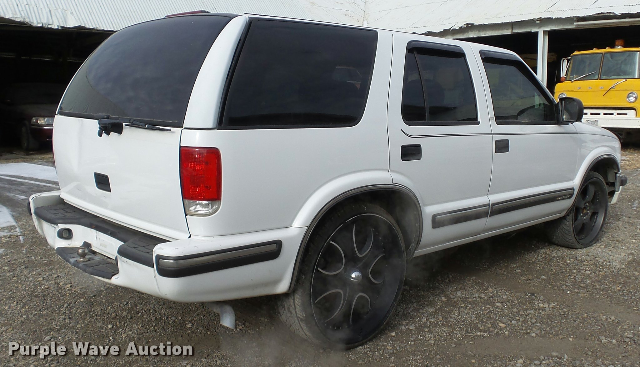 Purple Wave is selling a used Passenger Vehicle in Kansas. This item is a 1999 Chevrolet Blazer SUV with the following: 173,975 miles on odometer, 4.3L V6 OHV 12V gas engine, Automatic transmission, AC and heat, Tilt, Cruise, AM/FM/CD, Power windows, locks, mirrors, and seats, Heated seats, Leather interior, Ball hitch, Custom wheels, 245/35ZR20 front tires, 275/25ZR24 rear tires, Hail damage