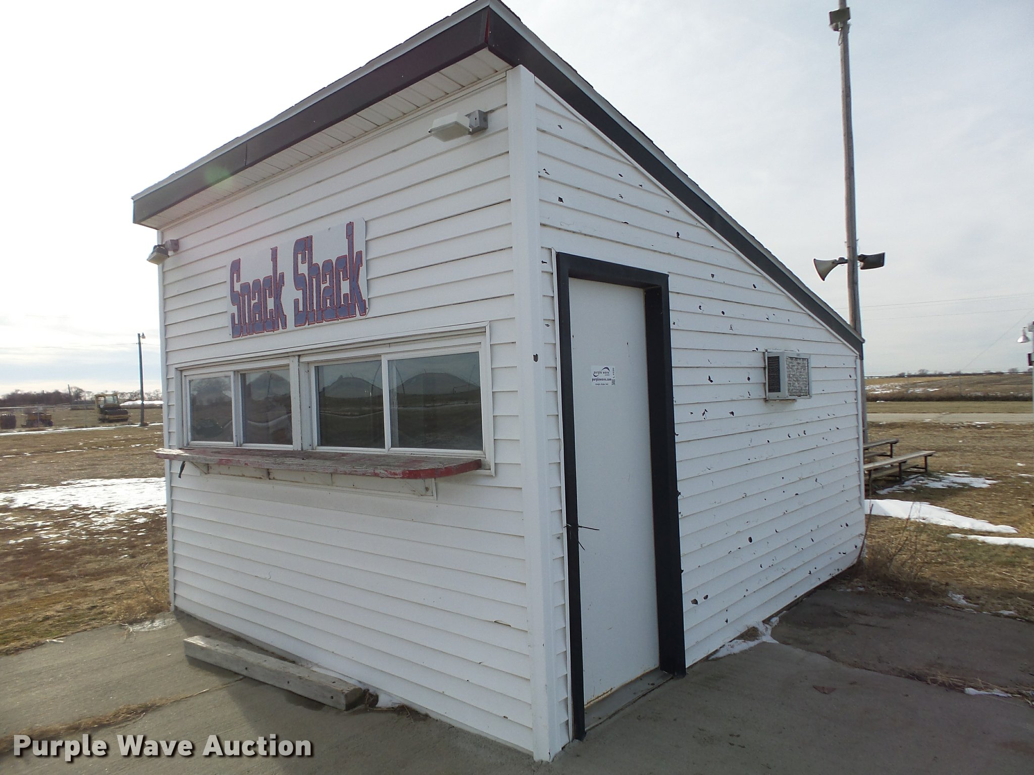 Snack shack/concession stand. Approx. 12'4"W x 14'4"D x 10'H peak O.D., Sliding windows, Window AC unit 110V, Sink, 100 amp electrical panel, Finished interior, Lighting, Outlets. Butler County Speedway. 3730 C Rd. Rising City, NE 68658