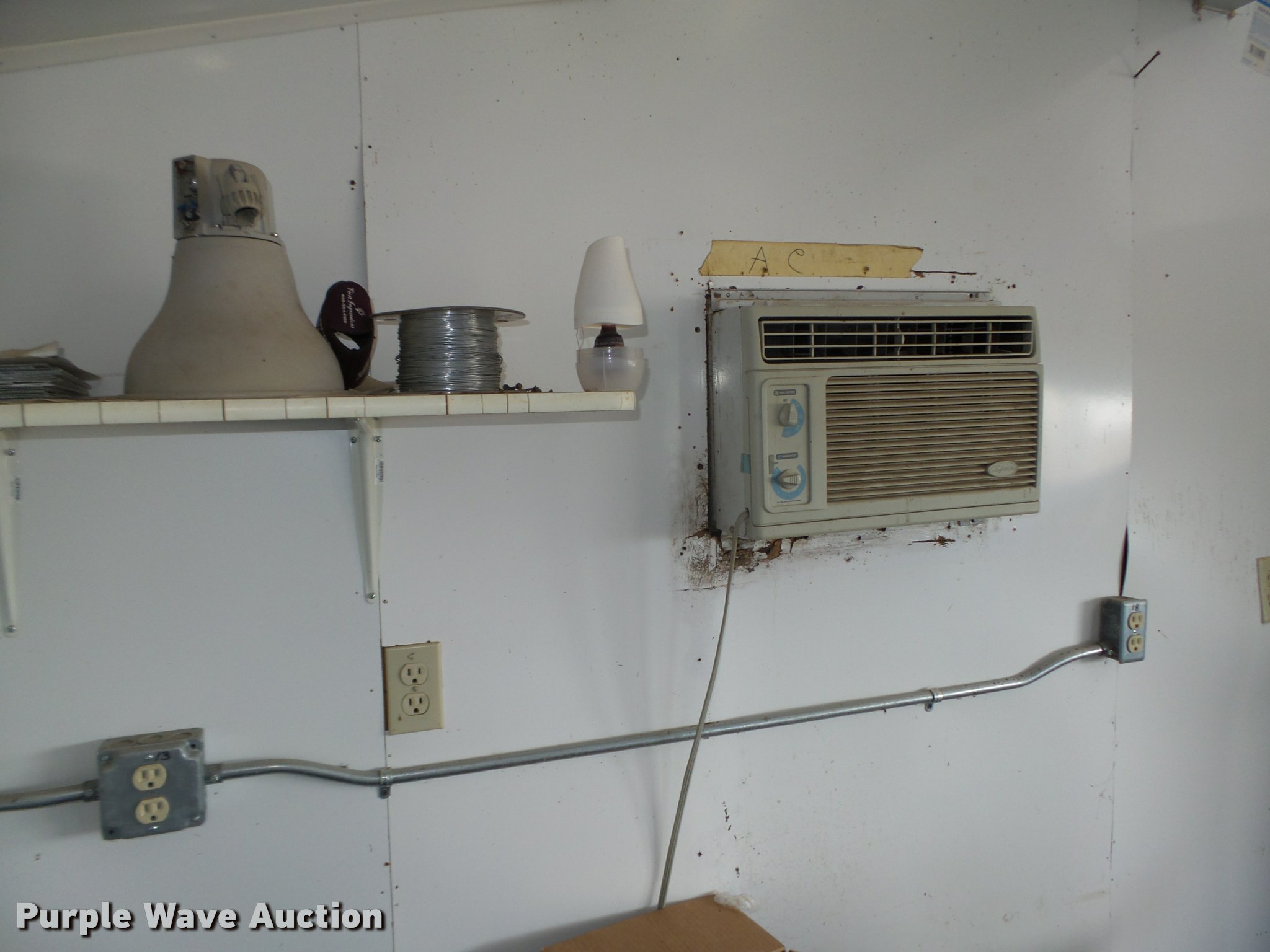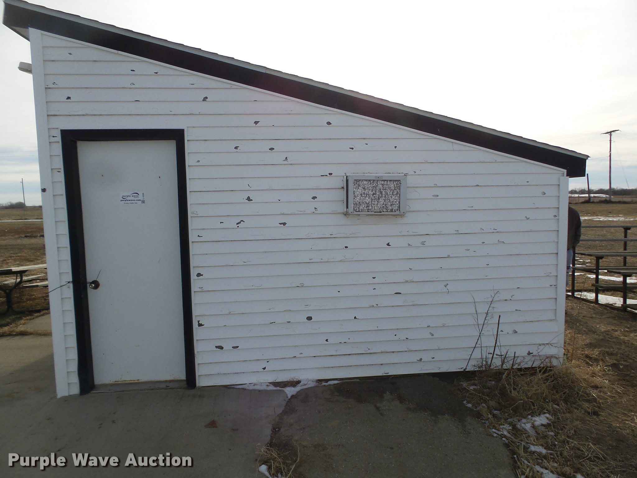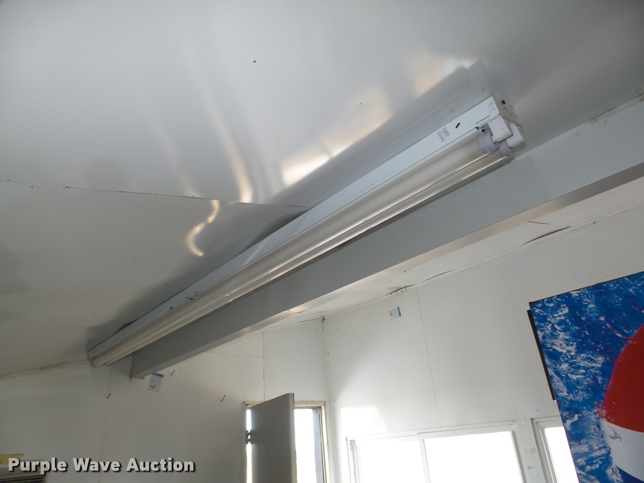 Purple Wave is selling a used Manufactured Home or Office in Nebraska. This item is a Snack shack/concession stand with the following: Approx. 12'4"W x 14'4"D x 10'H peak O.D., Sliding windows, Window AC unit, 110V, Sink, 100 amp electrical panel, Finished interior, Lighting, Outlets