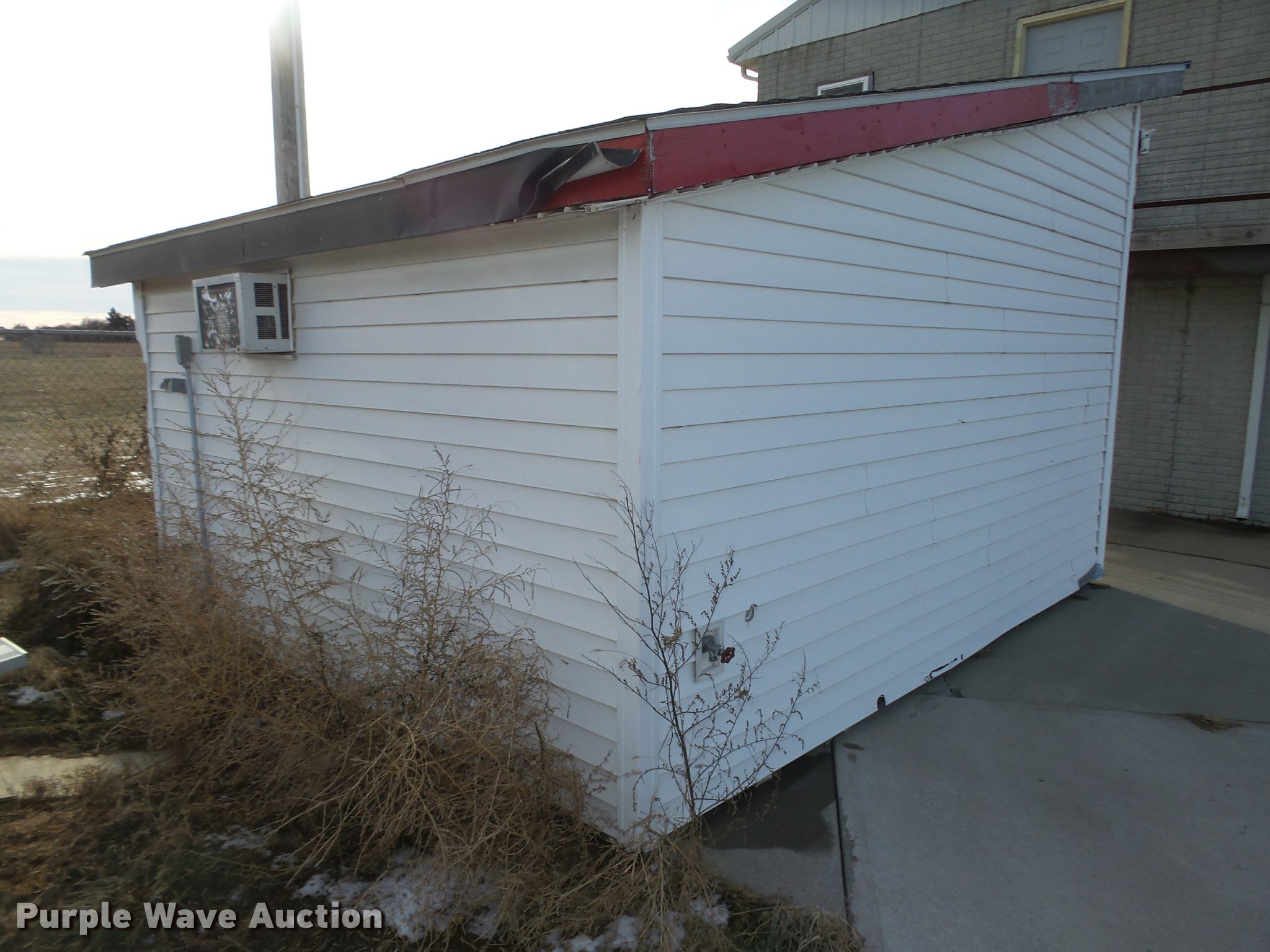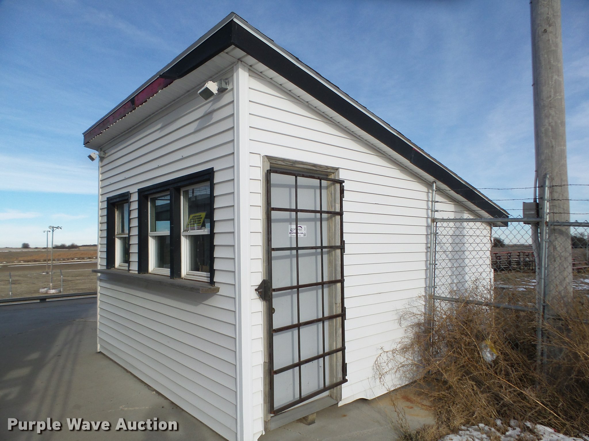 Purple Wave is selling a used Manufactured Home or Office in Nebraska. This item is a Ticket booth with the following: Approx. 12'4"W x 14'4"D x 10'H O.D., 100 amp electrical panel, Front windows, Interior/exterior lighting, AC unit, Lockable steel gate, Contents not included