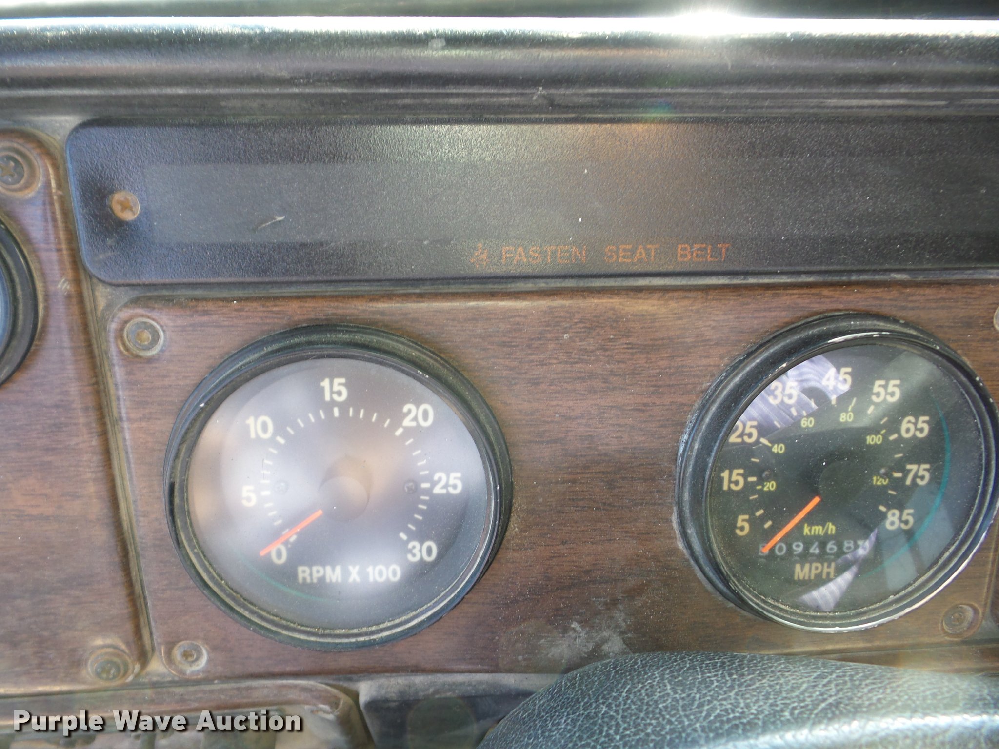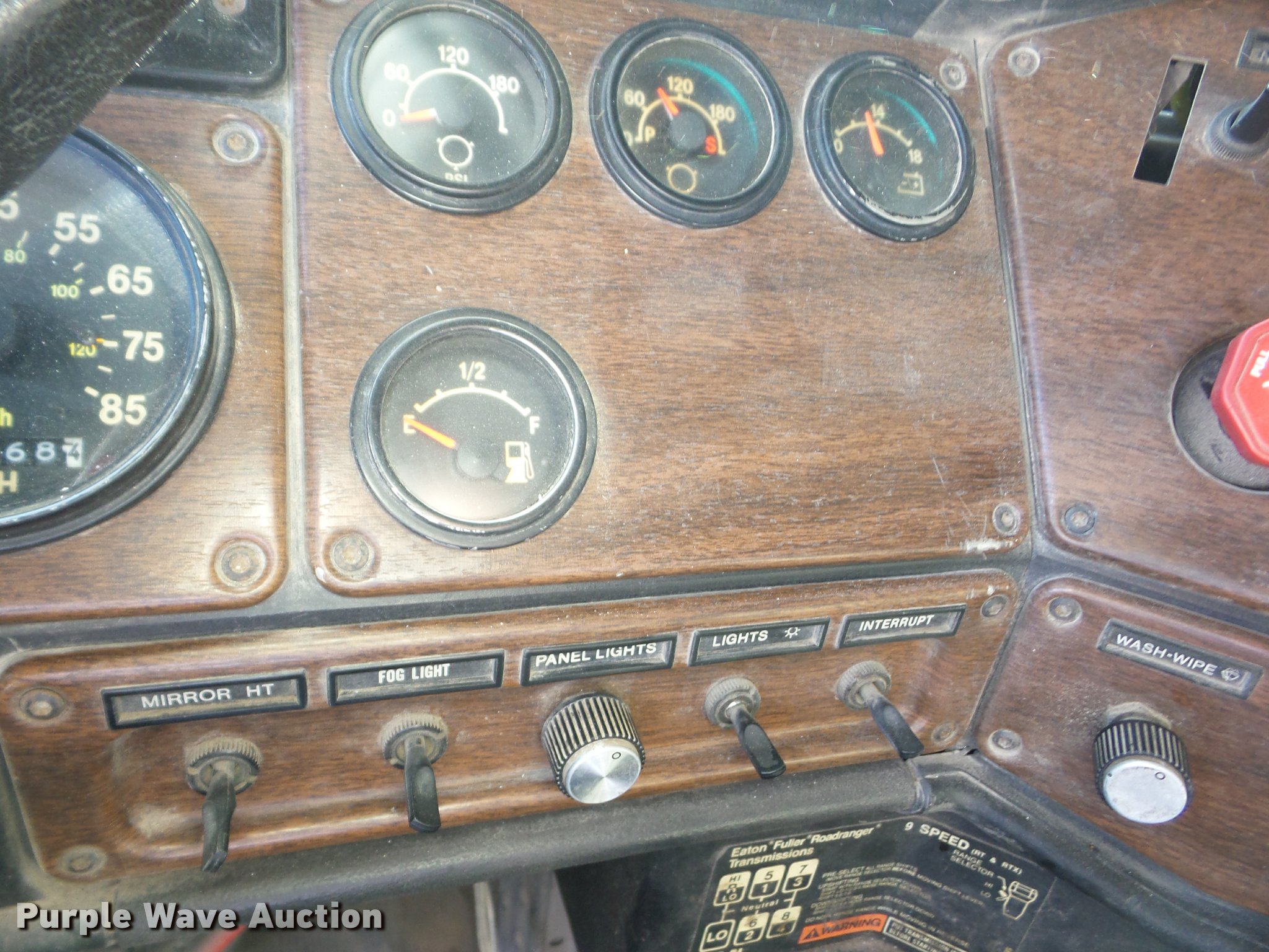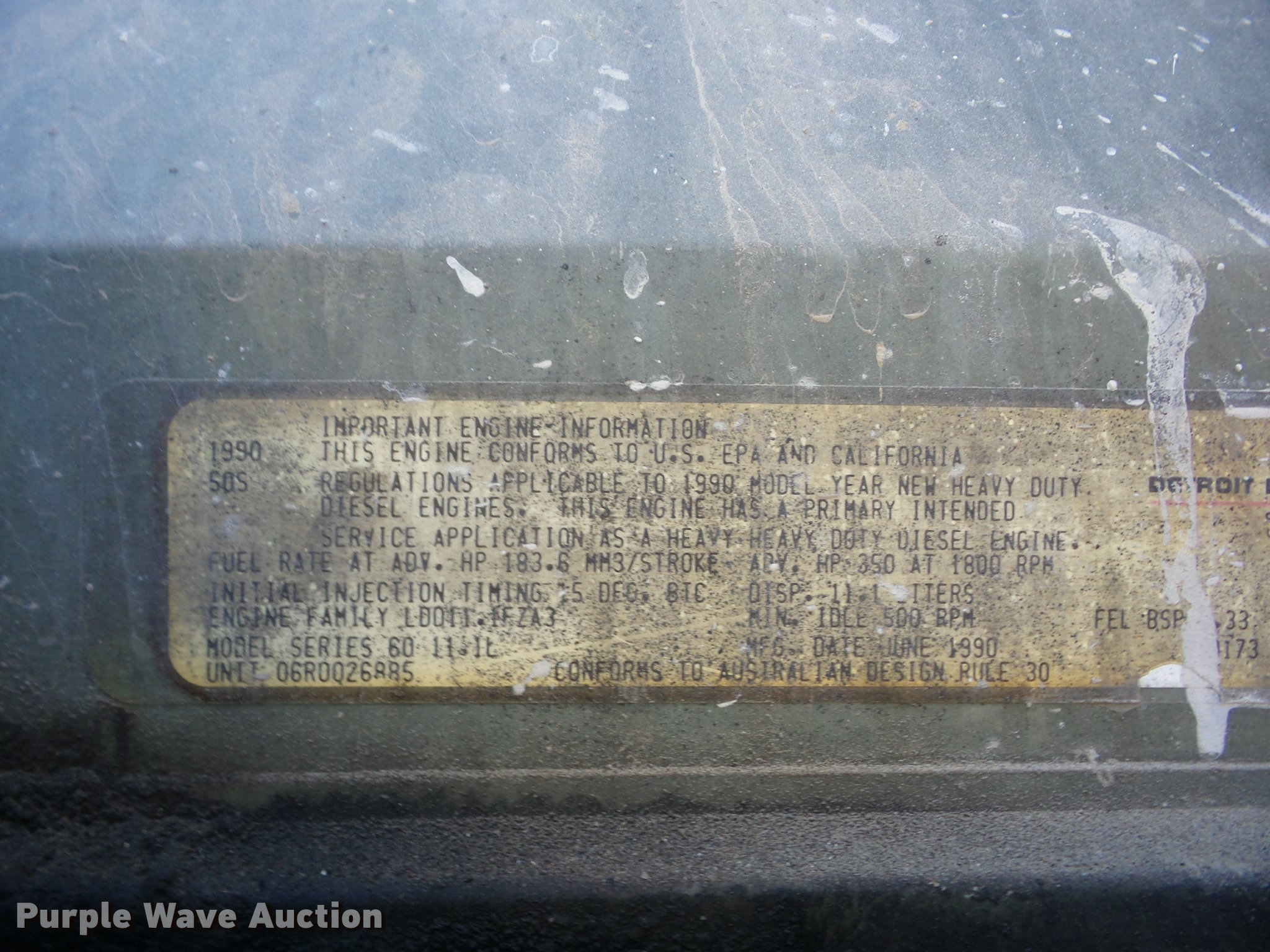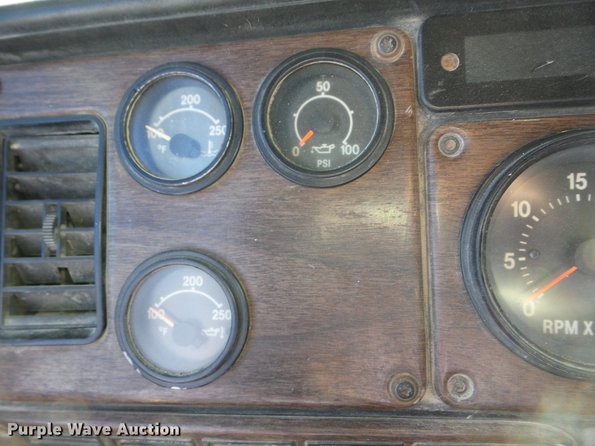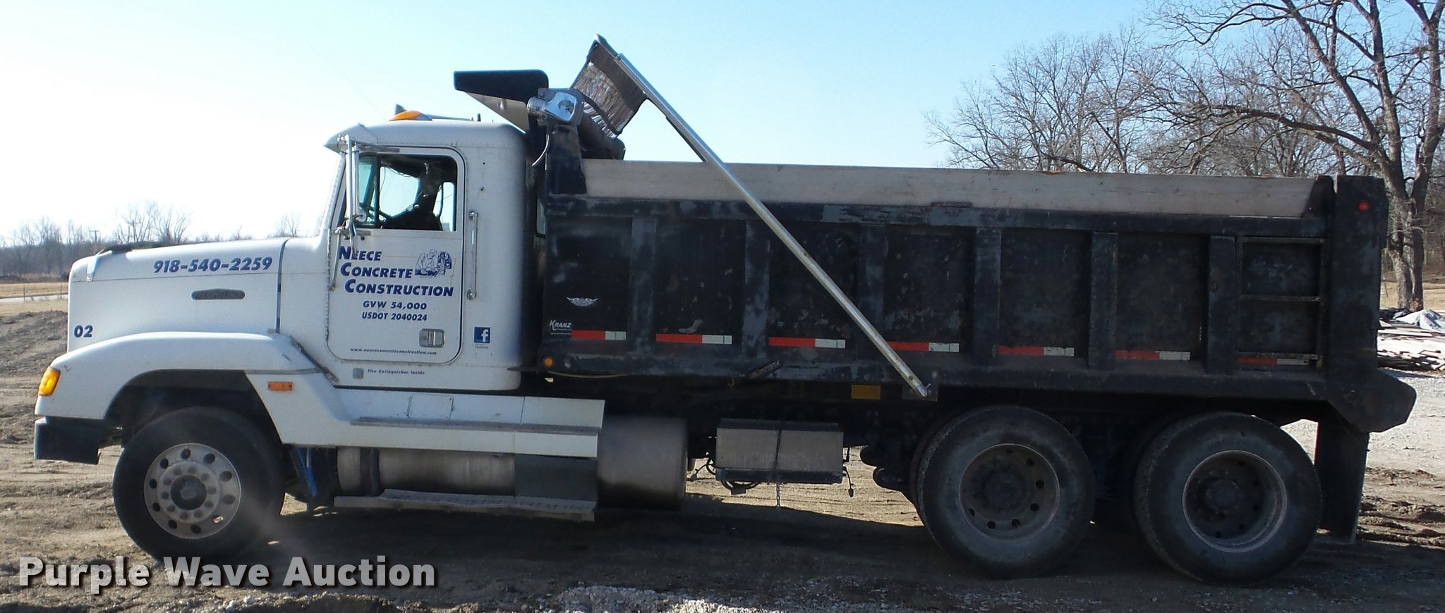 Purple Wave is selling a used Construction Dump Truck in Oklahoma. This item is a 1991 Freightliner FLD dump truck with the following: 809,468 miles on odometer, Detroit Diesel Series 60 11.1L six cylinder turbo diesel engine, Eaton Fuller nine speed manual transmission, Inter-axle differential lock, AC and heat, AM/FM/cassette, Air suspension seat, Exterior visor, PTO, 16'L x 96"W steel dump bed, Model 502F, 36" side height, 9" side board height, 12.8-16.3 yd. capacity, Rollover tarp, Air operated end gate, Single ram hoist, Dual fuel tanks, Spring suspension, Air brakes, 295/75R22.5 tires, Engine blow-by, Unit# 02