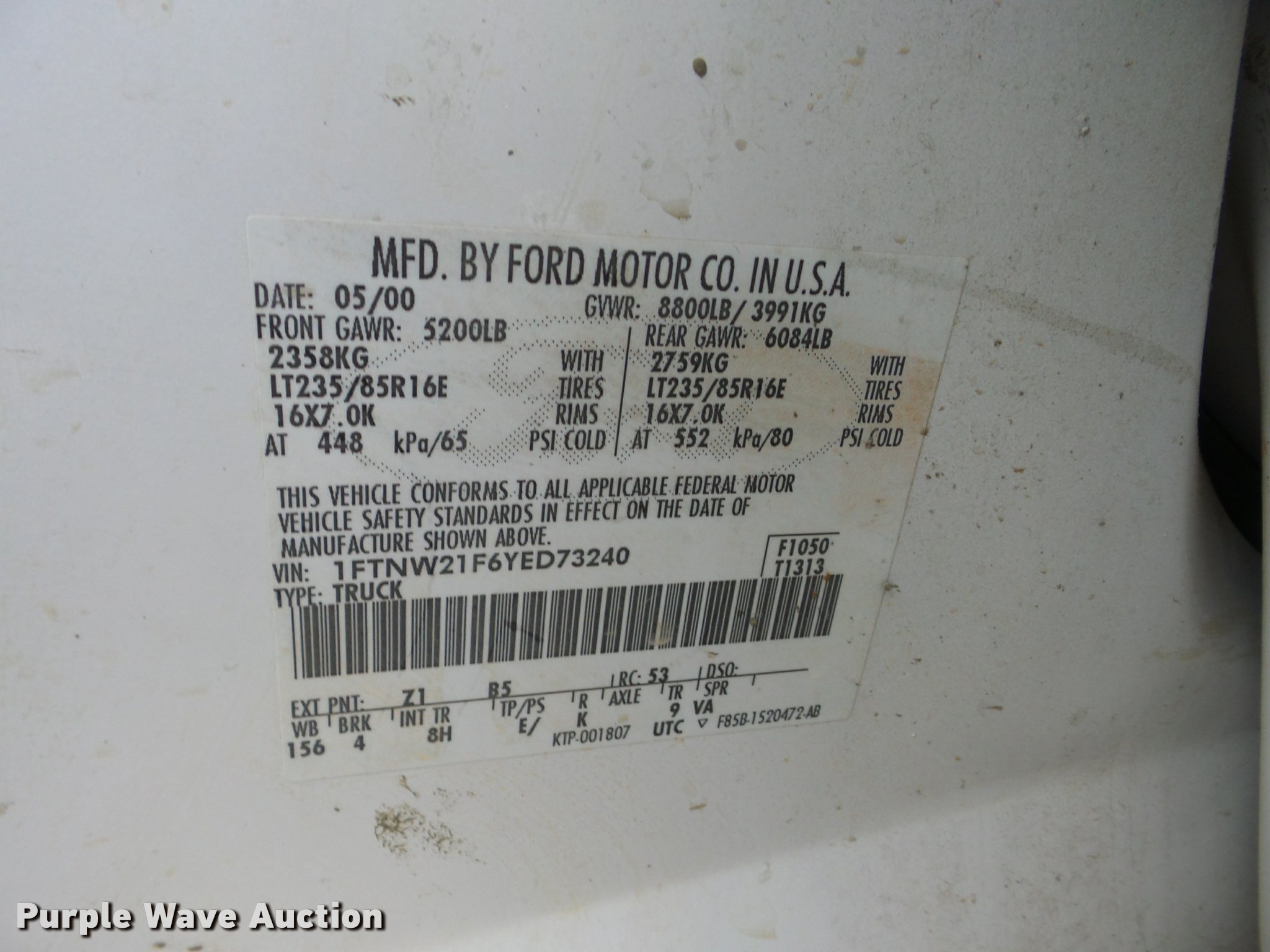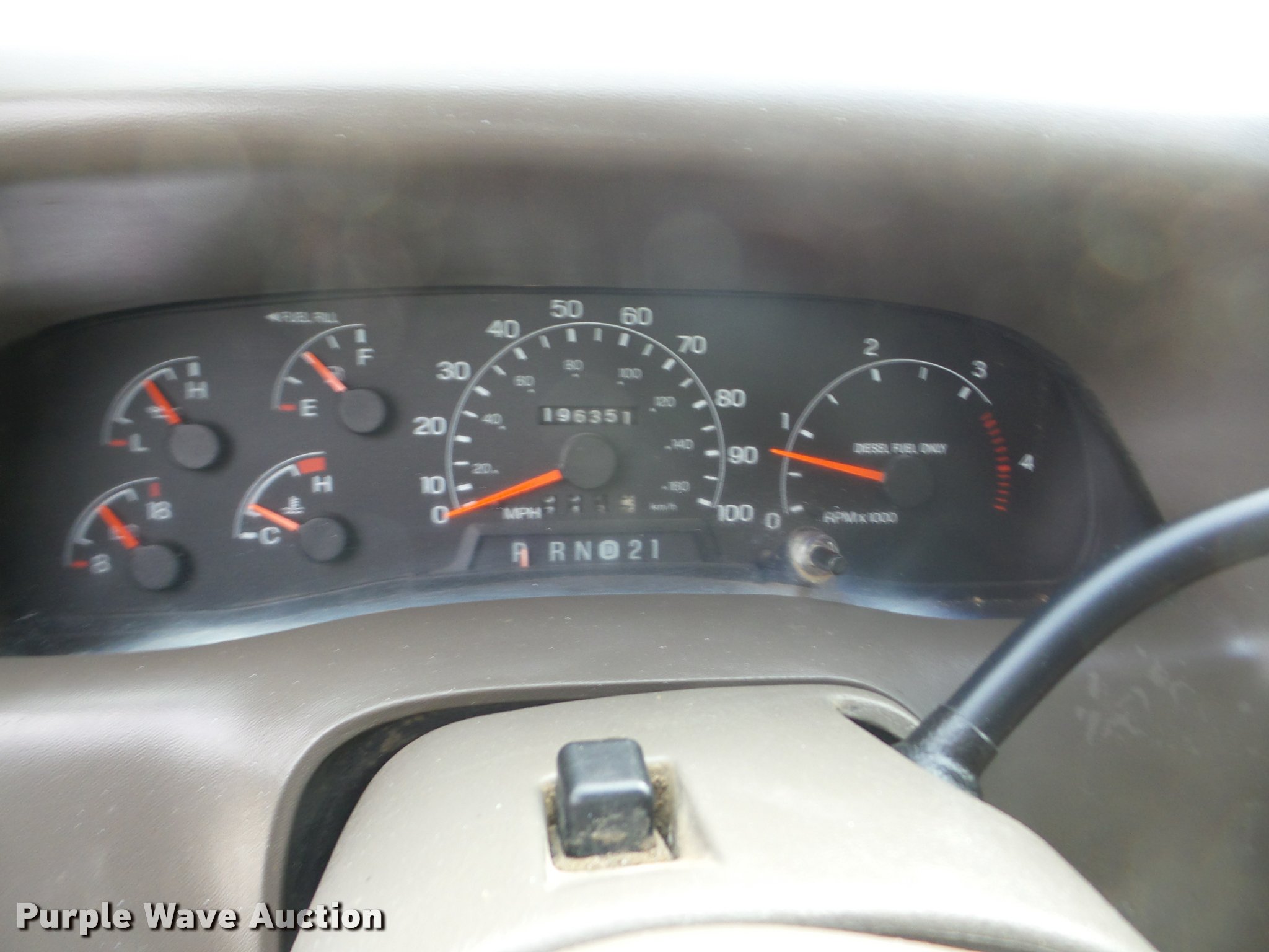 Purple Wave is selling a used 3/4 or 1 Ton Pickup or Van in Oklahoma. This item is a 2000 Ford F250 Super Duty Crew Cab flatbed pickup truck with the following: 196,351 miles on odometer, 7.3L V8 OHV 16V diesel engine, Four wheel drive, AC and heat, Tilt, Cruise, AM/FM/cassette, Power windows, locks, and mirrors, Vinyl interior, LT215/85R16 tires, Cracked windshield