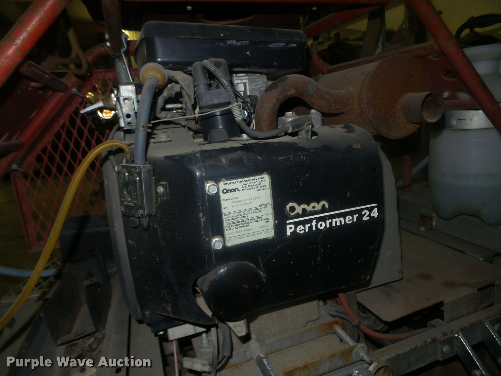 Allen Razorback 112232 power trowel. Onan Performer 24 v-twin gas enigne Model P224G-1/11225G, Serail A963472187, 8' non-overlapping capacity, 18" combination blades Bolt-on, (2) four arm spiders, Front and rear lights, Poly additive bottles, Unknown operating condition, Lifting strap is not included, Serial 1200SD. 260 Shuster Ranch Road. Fremont, NE 68025
