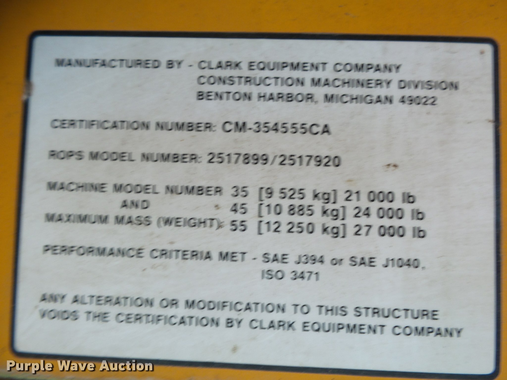 Purple Wave is selling a used Wheel Loader in Missouri. This item is a 1973 Clark 35GMC wheel loader with the following: 8,291 hours on meter, Detroit Diesel 3-53 diesel engine, 85 HP, Powershift transmission, 3F-3R gears, EROPS, Serial CM-354555CA, Heat, Two lever bucket controls, Front work lights, 84"W general purpose bucket, Bolt-on cutting edge, 14.00-24 tires, Engine rebuilt March 2016, Serial 472C-297CB