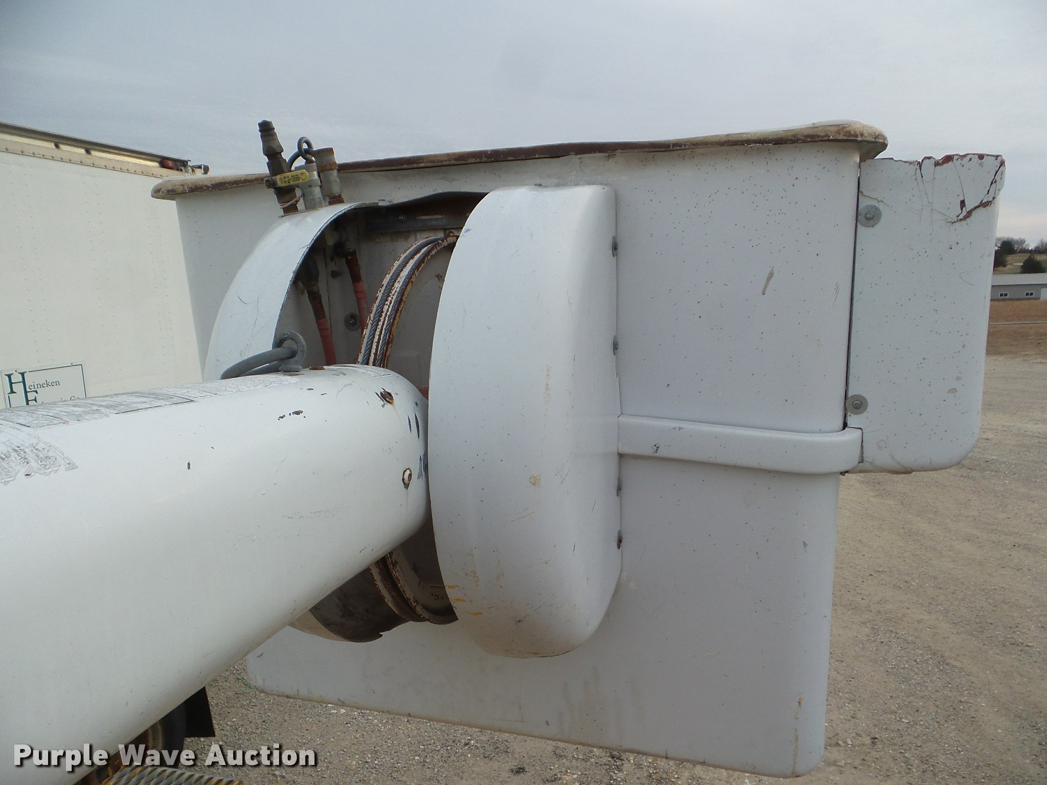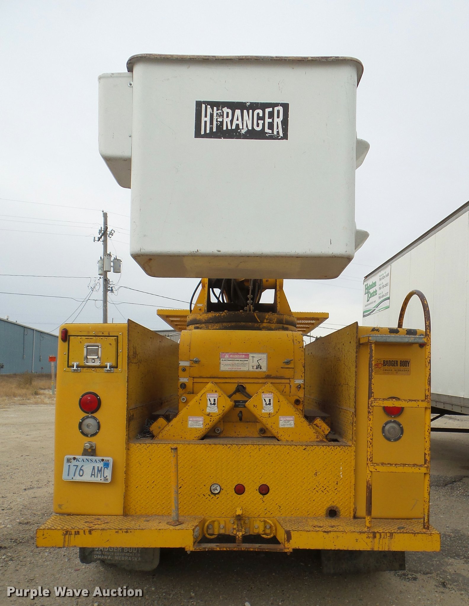 1985 Ford F700 bucket truck. 46,979 miles on odometer, 3,826 hours on meter, 6.1L V8 gas engine, Automatic transmission, Single axle, AC and heat, AM/FM, Spring suspension seat, Beacon light, PTO, Astoria 13'L service bed Shelving , Pintle hitch, Hi-Ranger 5F1-48PB1 boom Serial 108312248, 500 lbs maximum lift capacity, 32' boom length, 48' maximum lift height, Man basket, Ground and platform controls, Boom rotation, Articulating insulated boom, (2) outriggers, Single fuel tank, 171" wheelbase, Spring suspension, Hydraulic brakes, 10R20 tires. Kansas title. 1FDPF70H2FVA25257. Heineken Electric. 3121 US 24. Beloit, KS 67420