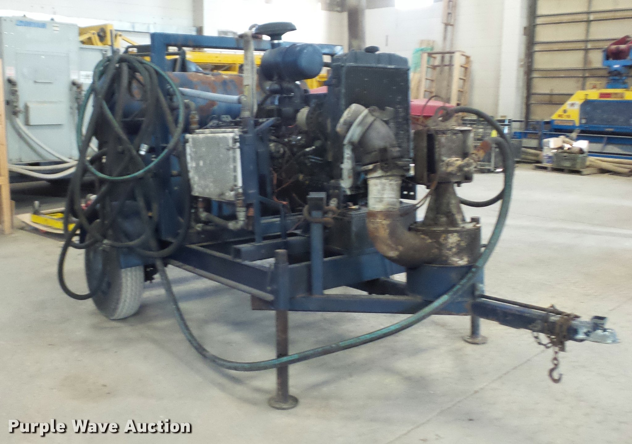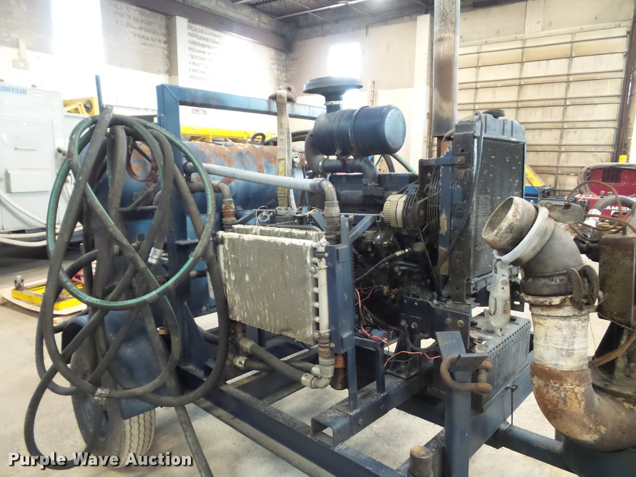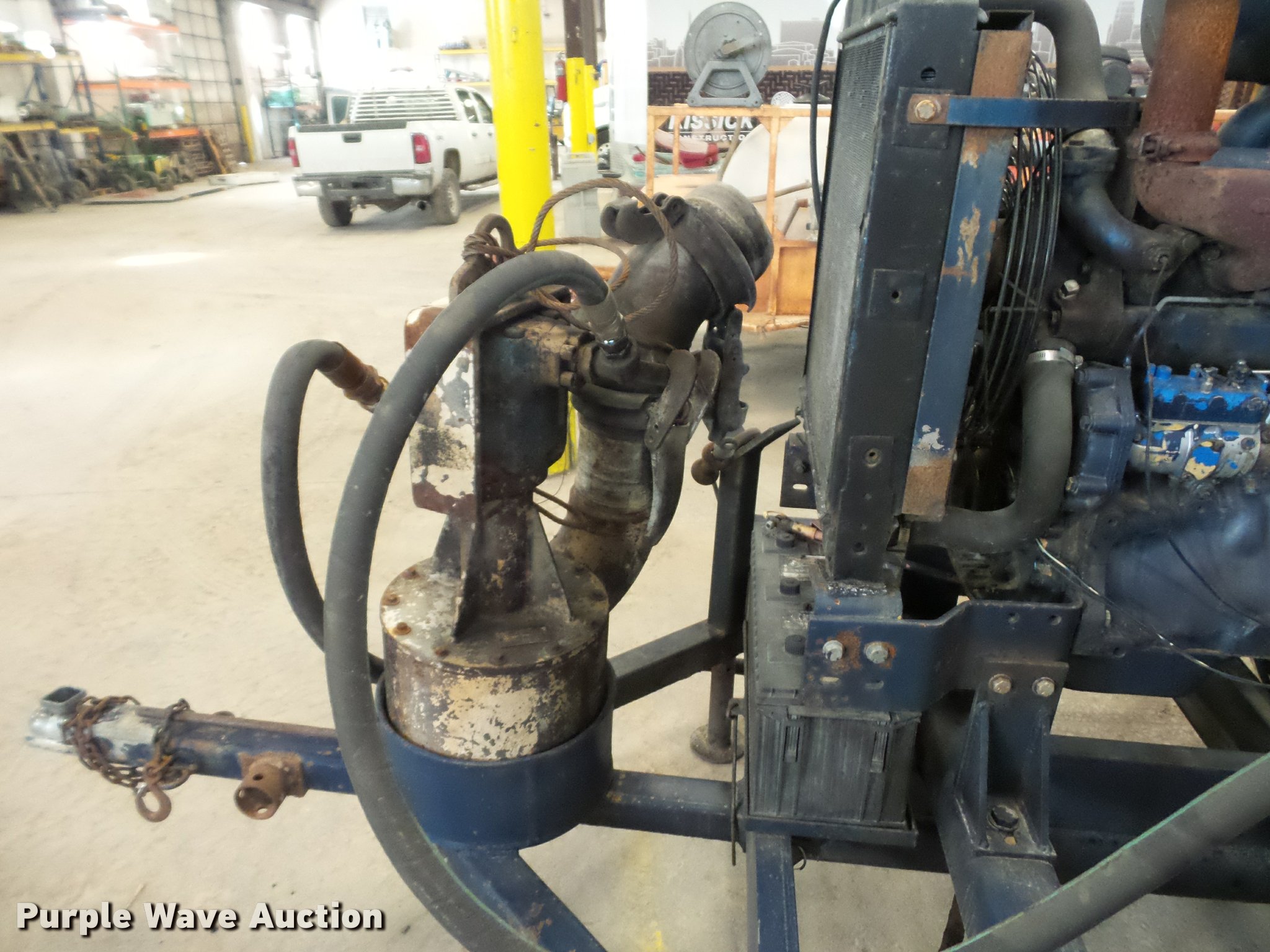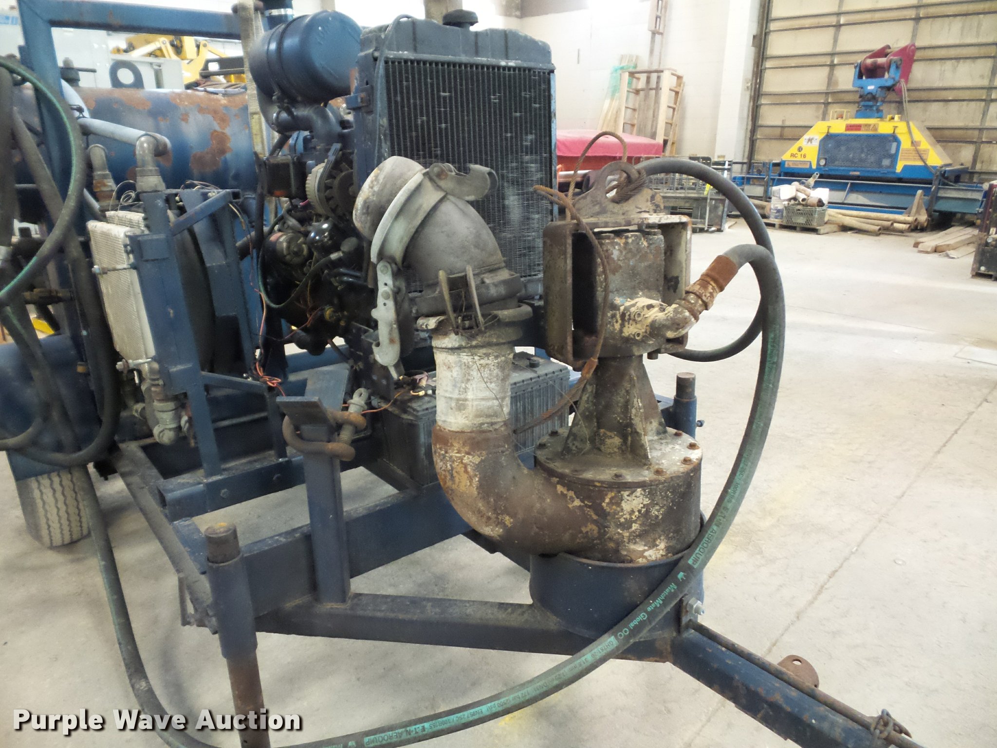 Purple Wave is selling a used Pump in Missouri. This item is a Guzzler sludge pump with the following: 9,280 hours on meter, John Deere four cylinder diesel engine, Hydraulic driven pump, 6" discharge hose, Manual jack stand, 2" ball hitch, 8-14.5 tires