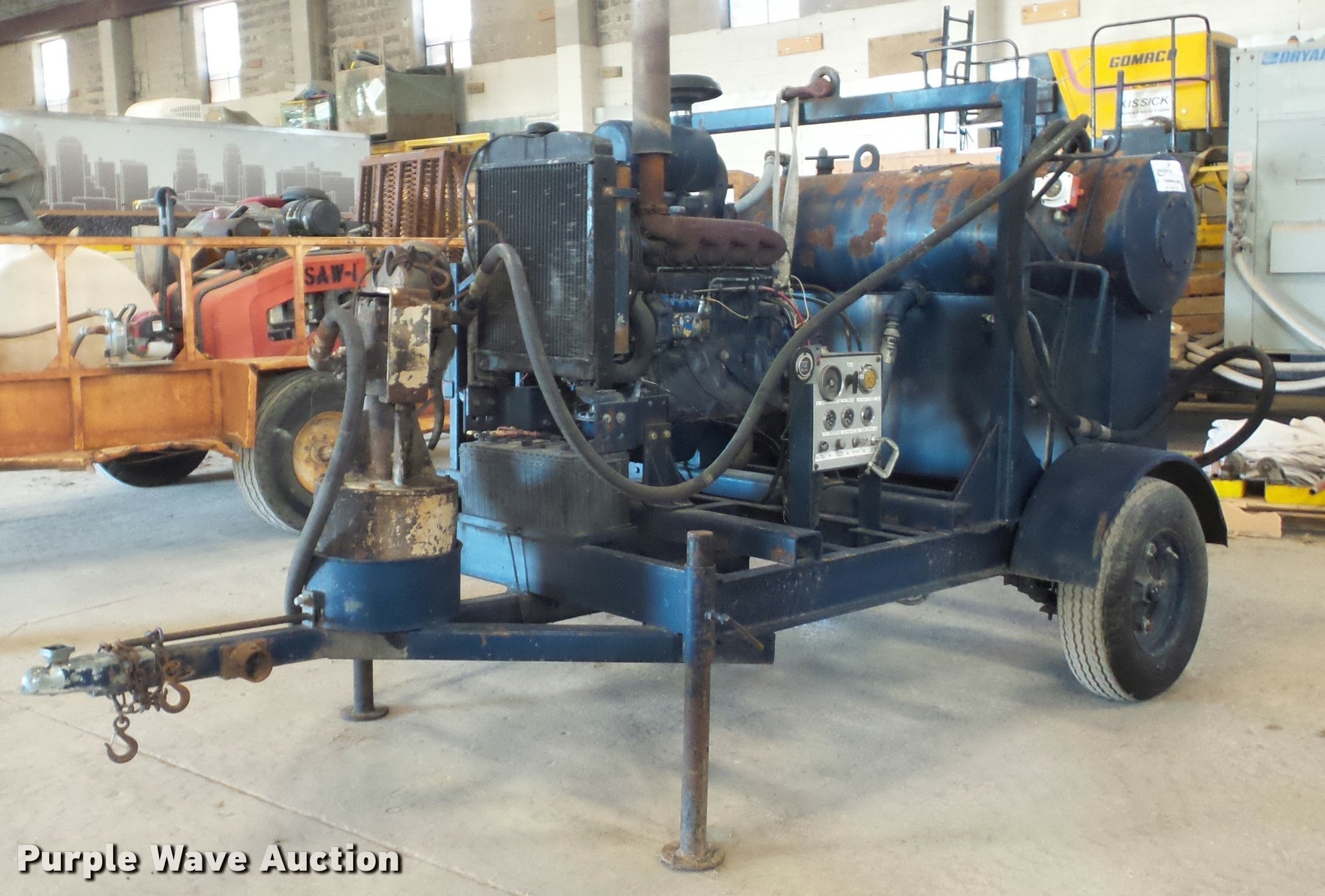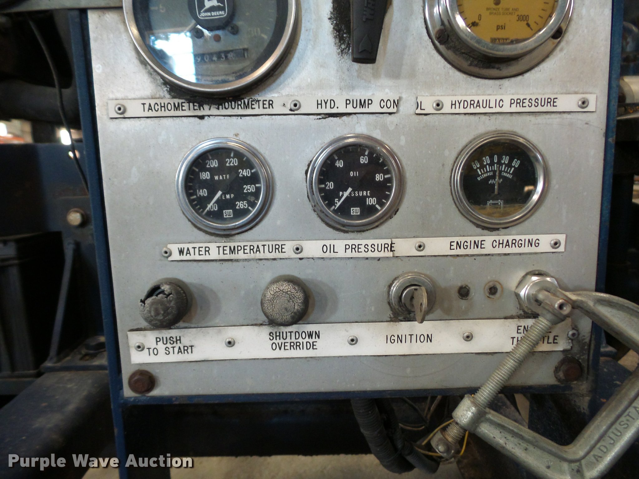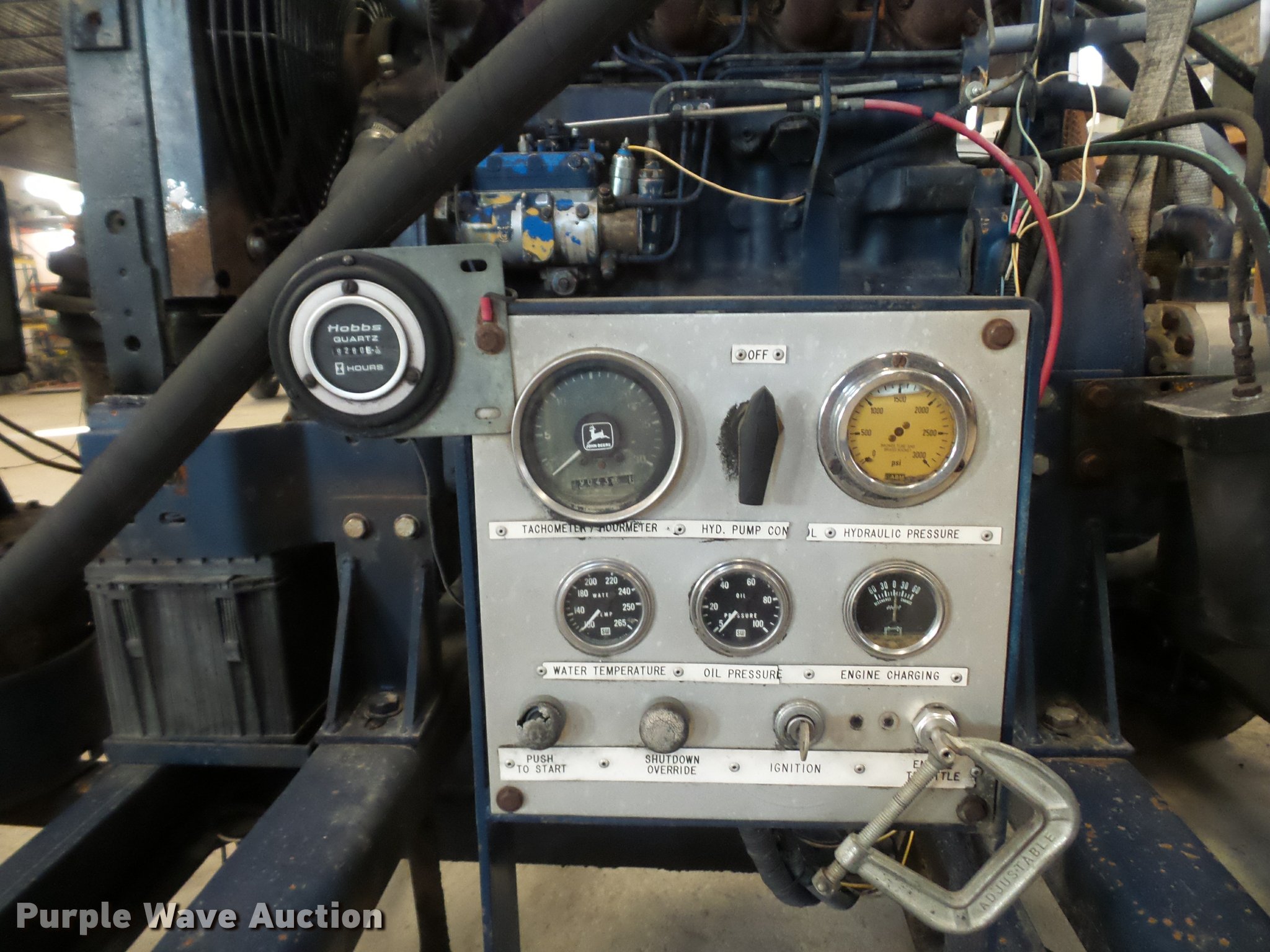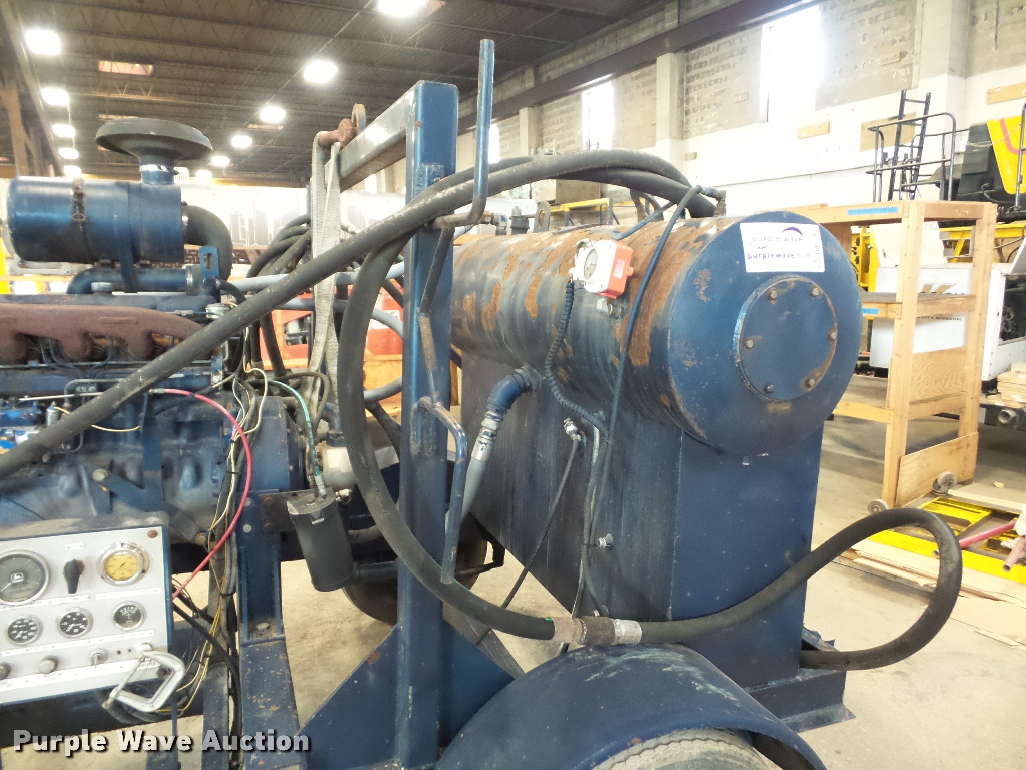 Purple Wave is selling a used Pump in Missouri. This item is a Guzzler sludge pump with the following: 9,280 hours on meter, John Deere four cylinder diesel engine, Hydraulic driven pump, 6" discharge hose, Manual jack stand, 2" ball hitch, 8-14.5 tires