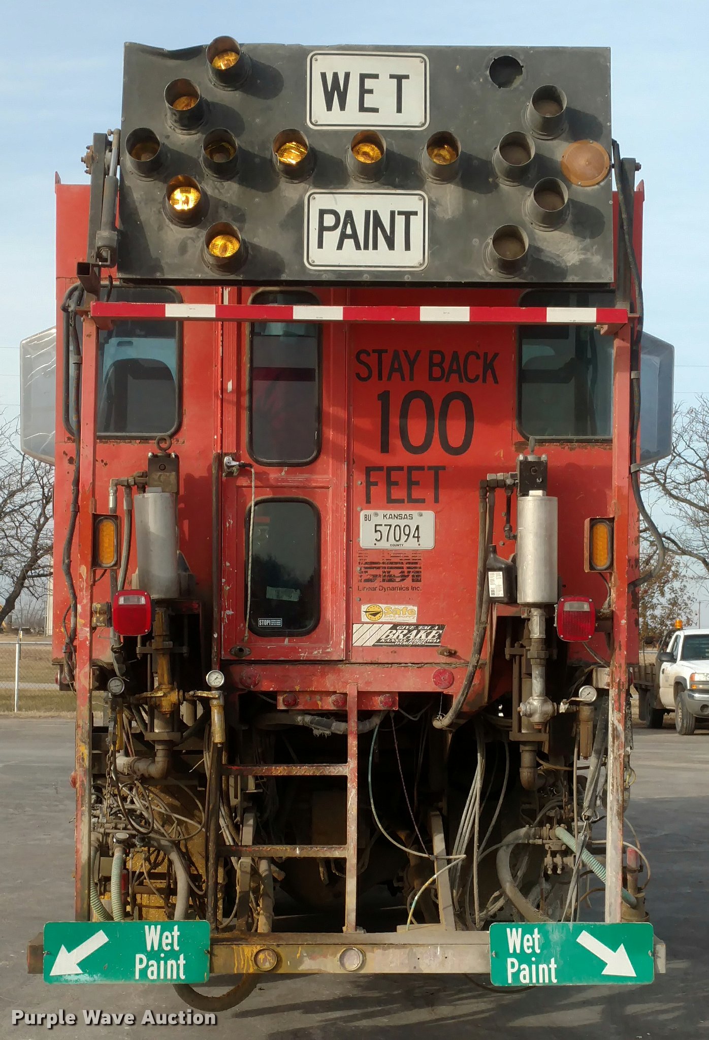 1989 Ford CT8000 paint striping truck. 33,378 miles on odometer Actual mileage unknown, Caterpillar 10.4L V8 diesel engine, Automatic transmission, Manual windows and locks, Linear Dynamics 1000G airless striping equipment Four cylinder diesel engine, Dual side operators station, In-cab controls, Arrow boards, On board air compressor, Air brakes, 395/65R22.5 front tires, 295/75R22.5 rear tires, Additional parts. Kansas title. 1FDZH80U0KVA08683. Butler County. El Dorado, KS 67042