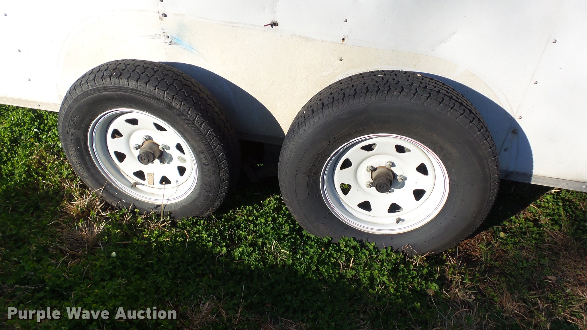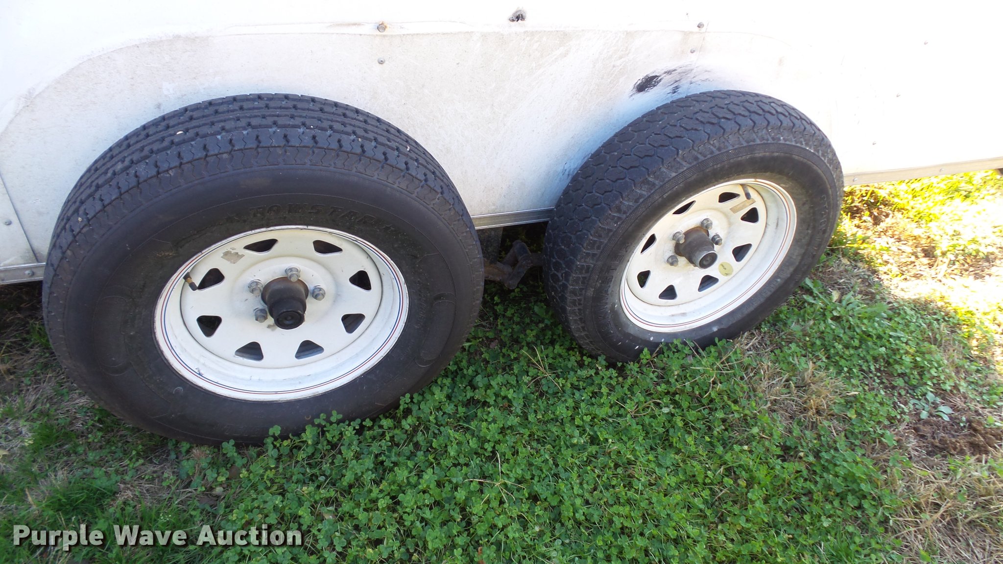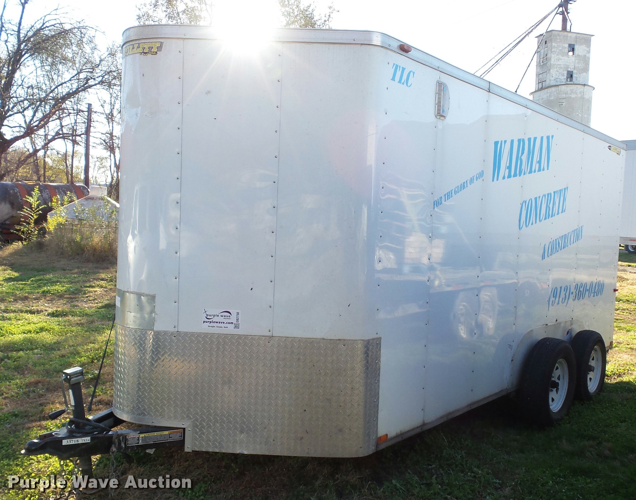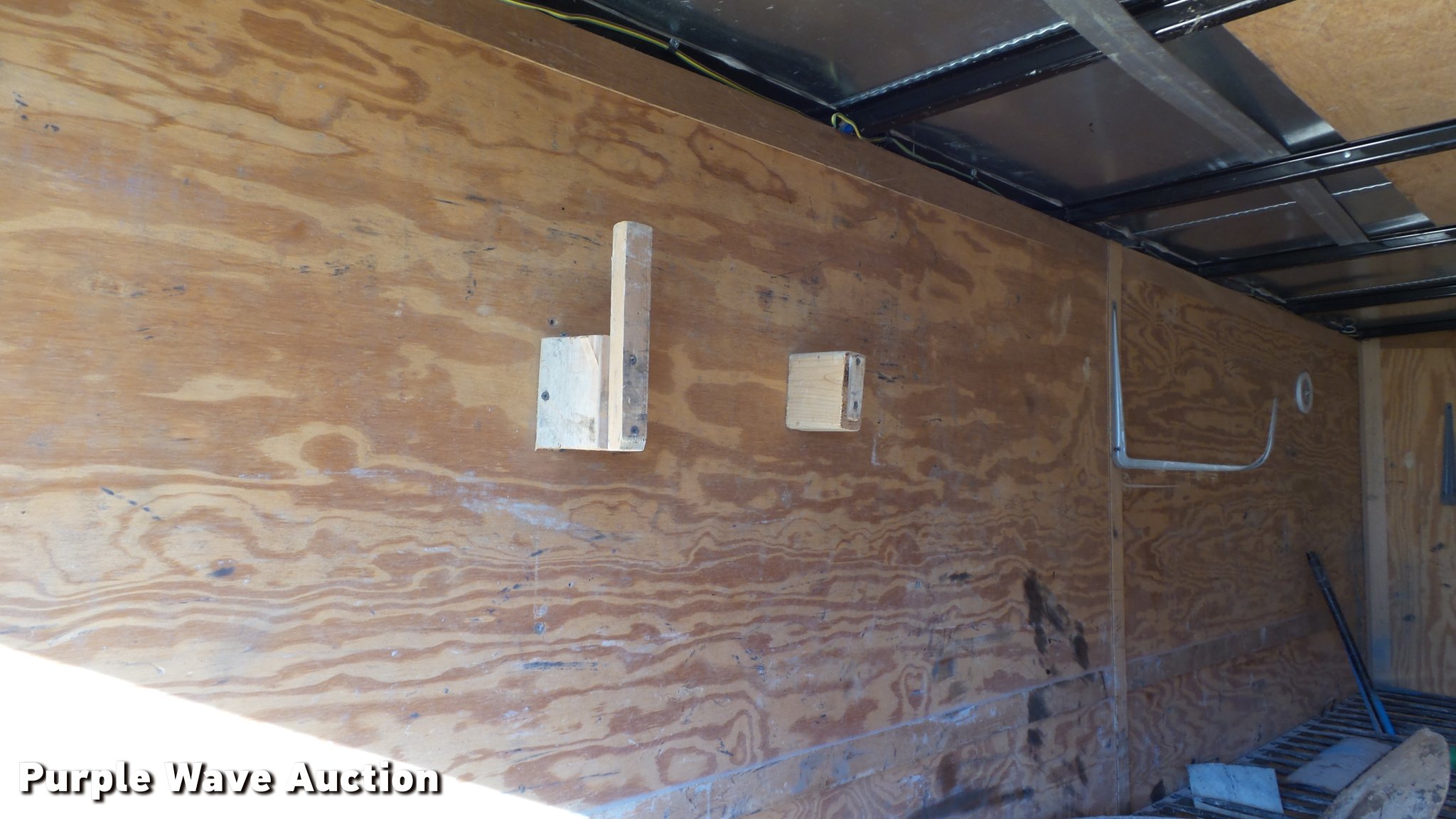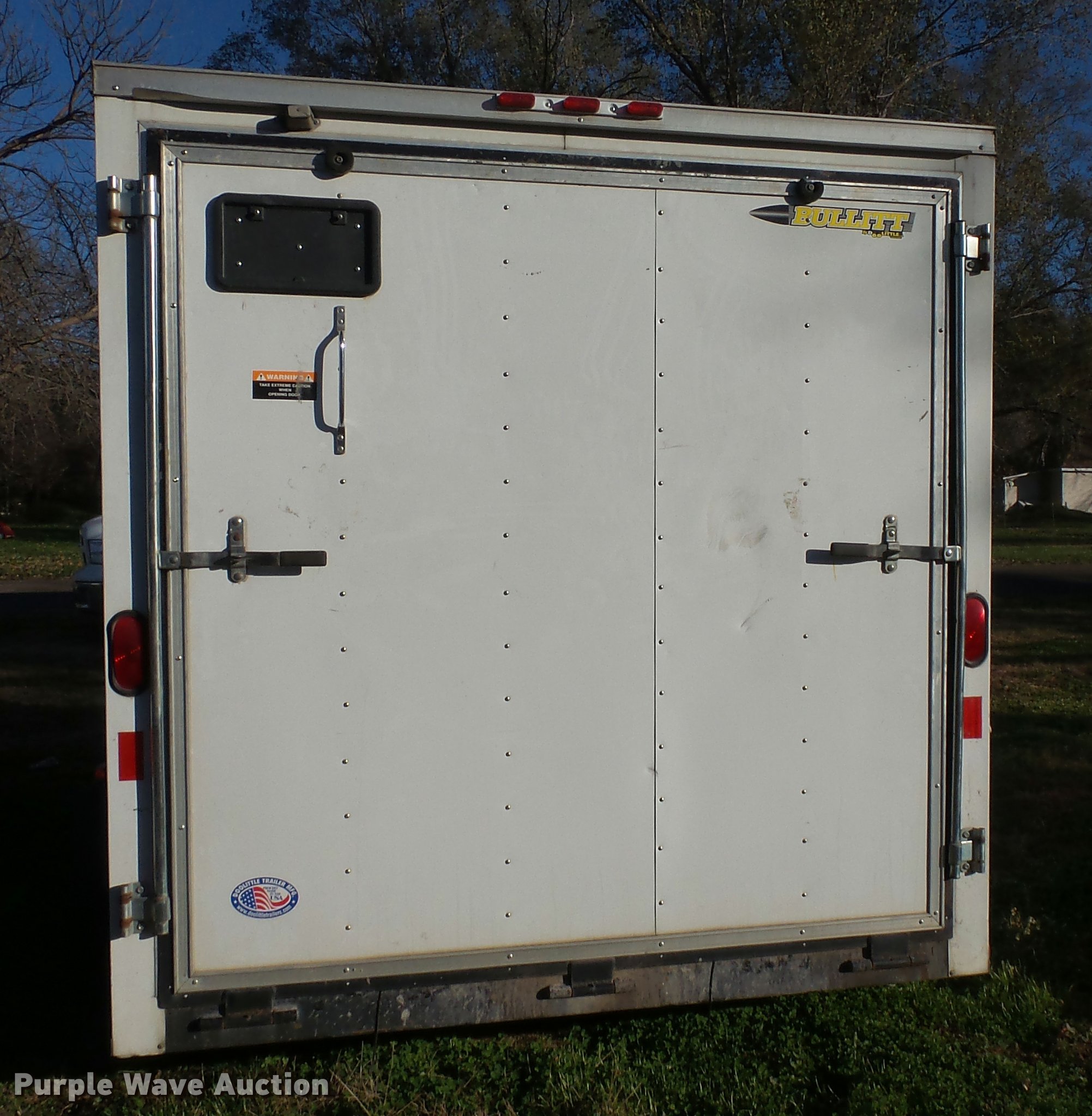 Purple Wave is selling a used Enclosed Cargo Trailer in Missouri. This item is a 2012 Doolittle Bullitt enclosed cargo trailer with the following: 16'L x 7'W, 85"H, Wood floor, Interior racking, Rear folding door, Side entry door, Lights, Safety chains, 2 5/16" ball hitch, Tandem axle, 205/75R15 tires, GVWR 7,000 lbs, Contents are not included