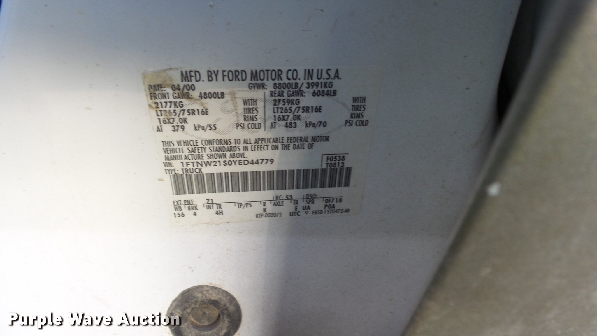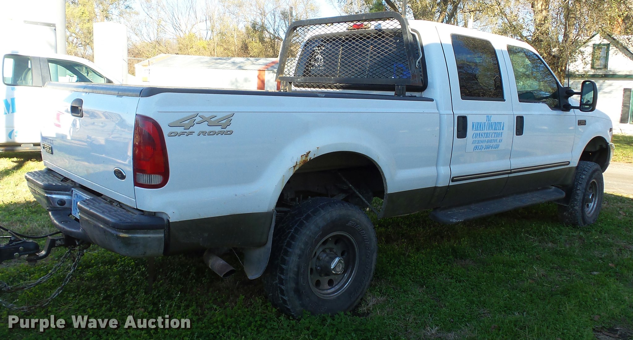 Purple Wave is selling a used 3/4 or 1 Ton Pickup or Van in Missouri. This item is a 2000 Ford F250 Super Duty Crew Cab pickup truck with the following: 206,964 miles on odometer, 6.8L V10 SOHC 20V gas engine, Automatic transmission, Four wheel drive, AC and heat, Tilt, Cruise, AM/FM/CD/cassette, Power windows, locks, mirrors and seat, Leather interior, Headache rack, Receiver hitch, 285/75R16 tires, Seats torn