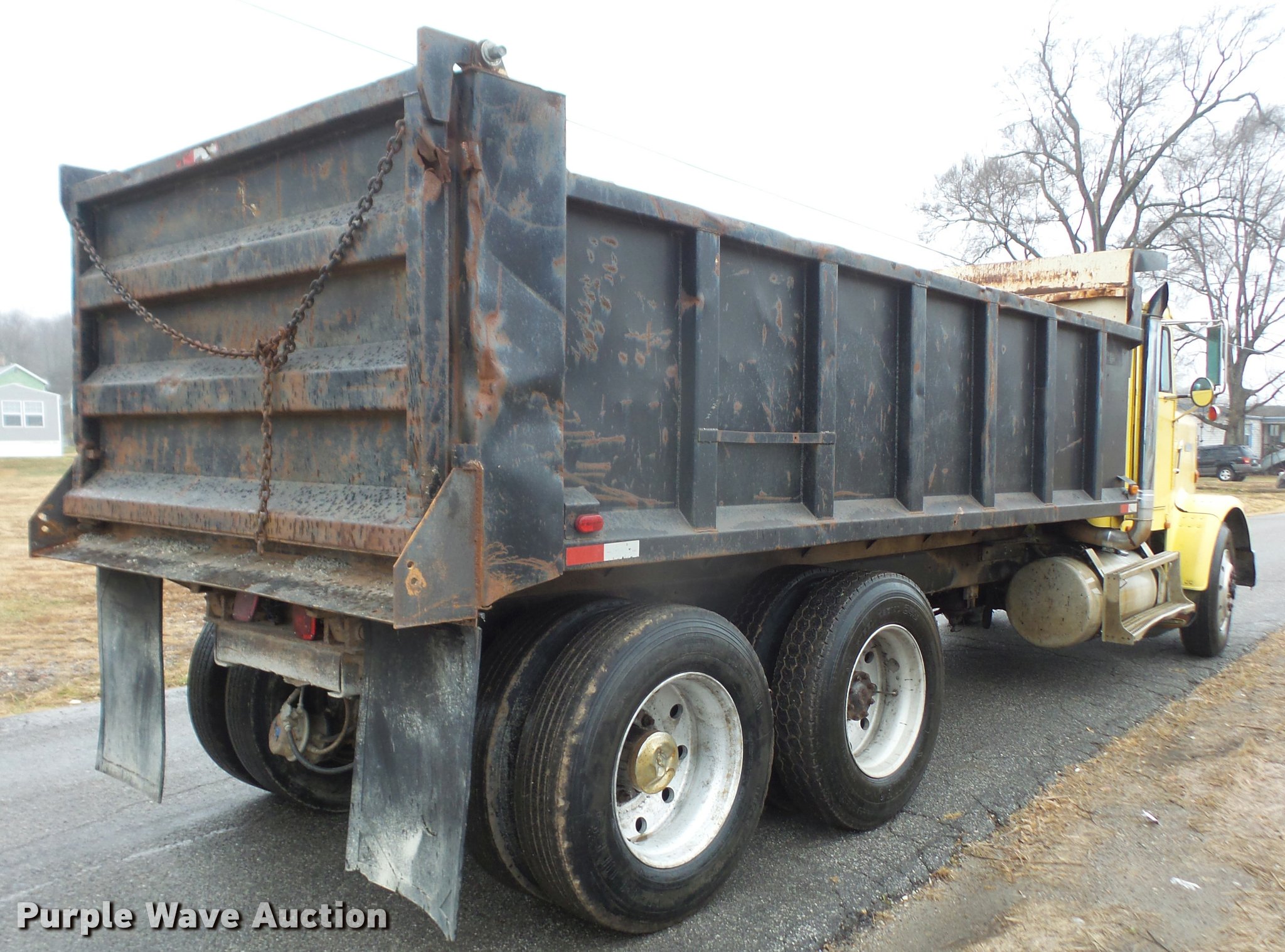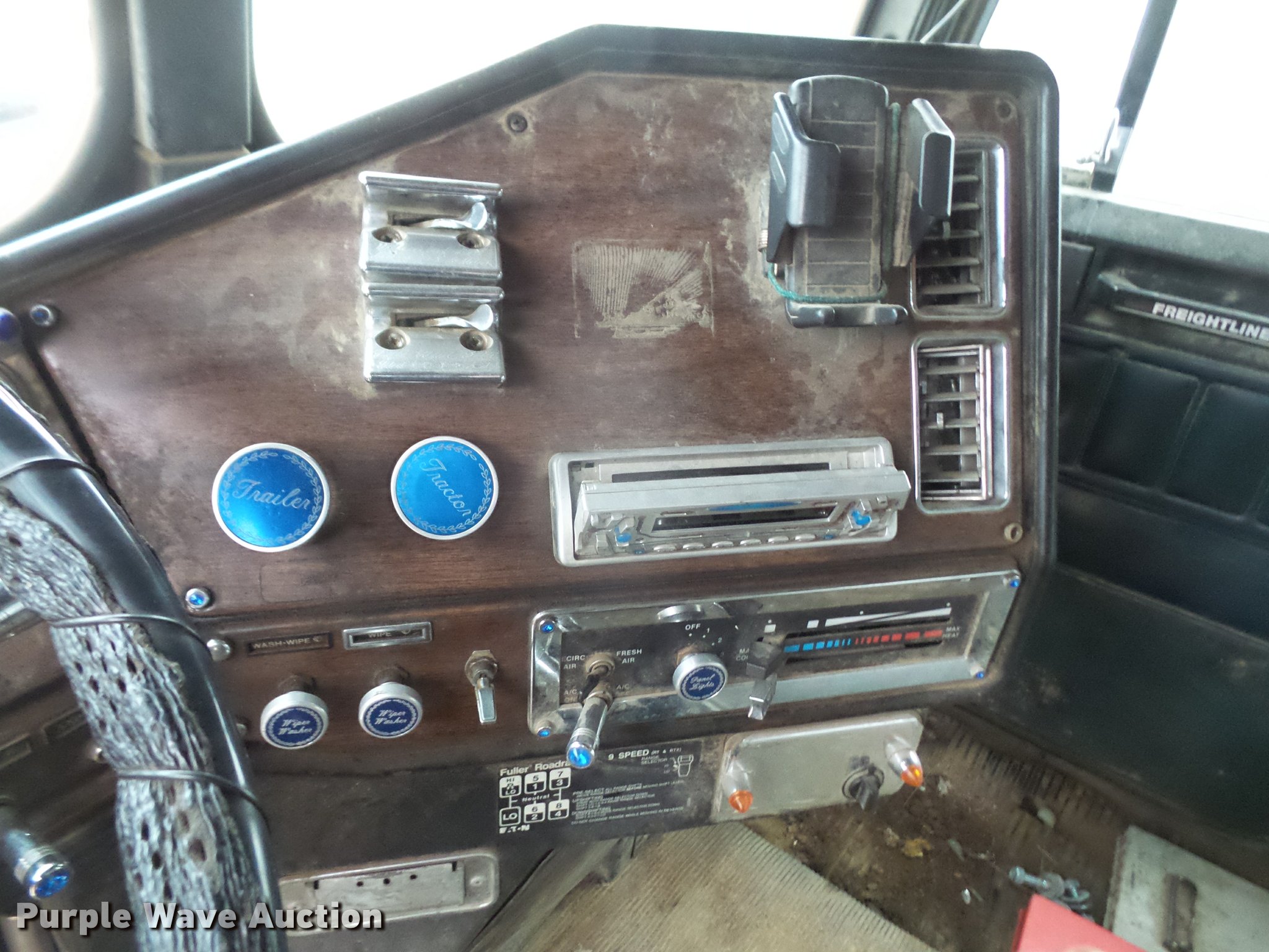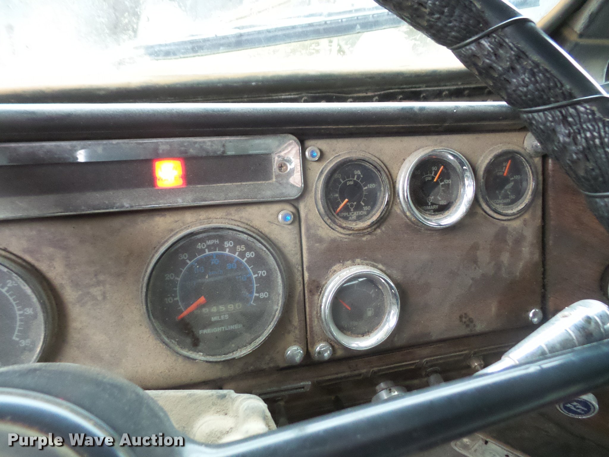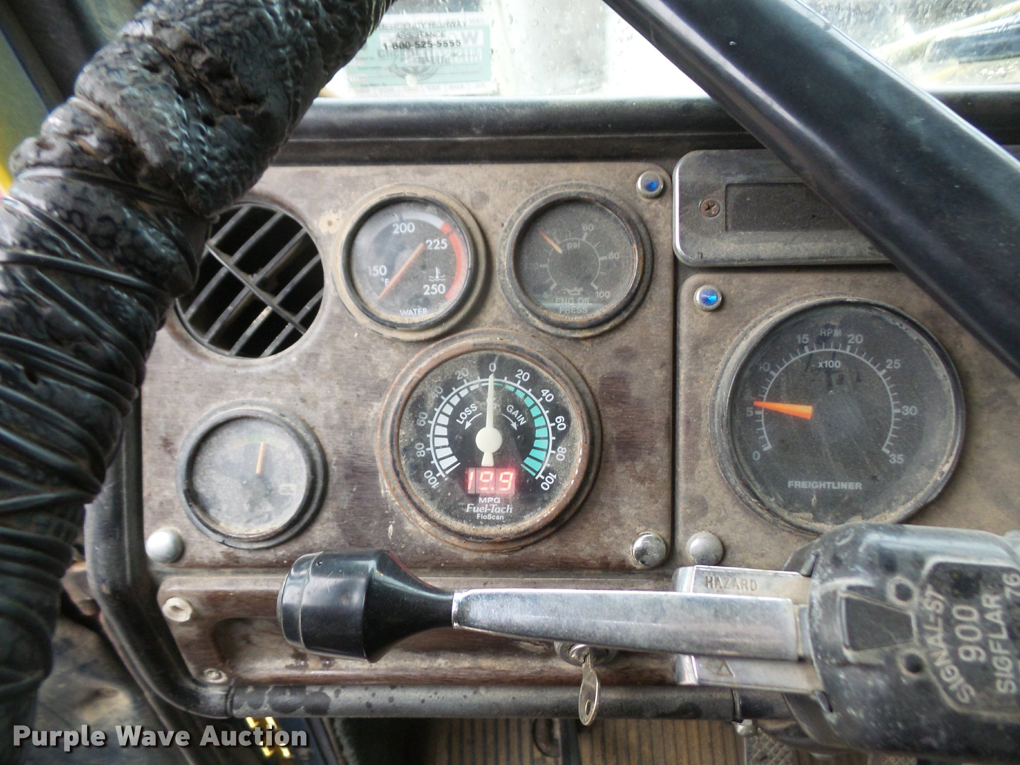 Purple Wave is selling a used Construction Dump Truck in Missouri. This item is a 1987 Freightliner FLC-64T dump truck with the following: 664,590 miles on odometer, Cummins NTC 14.0L L6 turbo diesel engine, 315 HP, Eaton Fuller nine speed manual transmission, Tandem axle, AC and heat, AM/FM, Air suspension seat, Exterior visor, PTO, Davis steel dump bed, 17'L x 96"W, 42" side height, Single ram hoist, Air operated end gate, Additional lip extension, Spring suspension, Air brakes, 11R24.5 tires, GVWR 46,000 lbs, FAWR 12,000 lbs, IAWR 17,000 lbs, RAWR 17,000 lbs