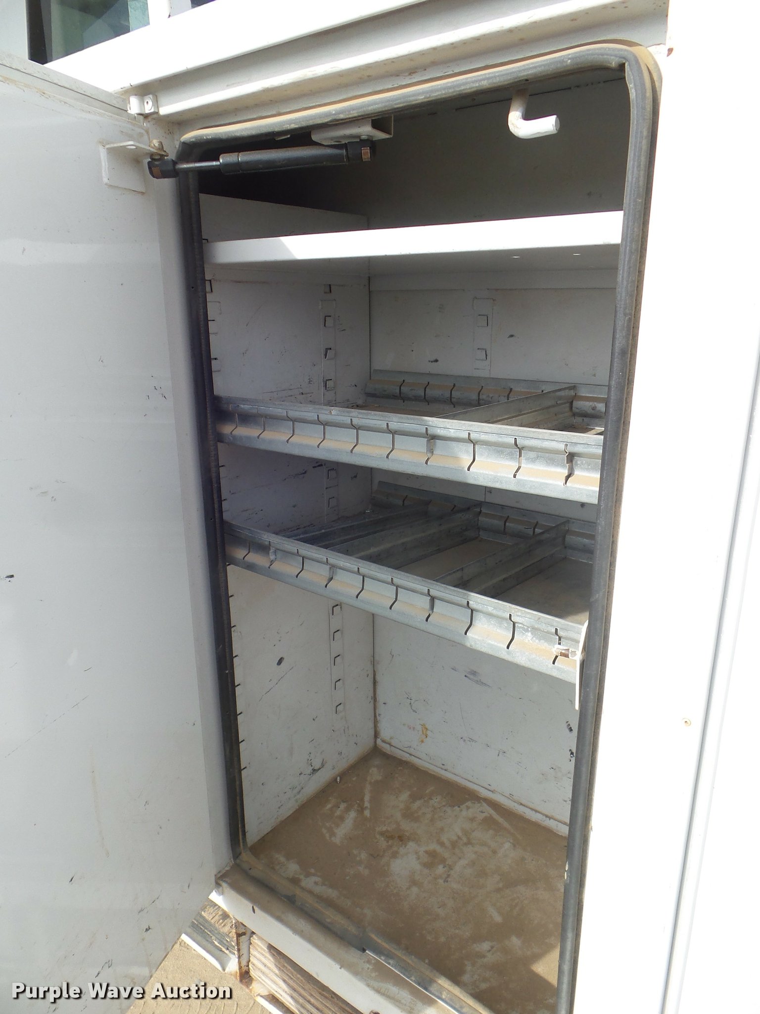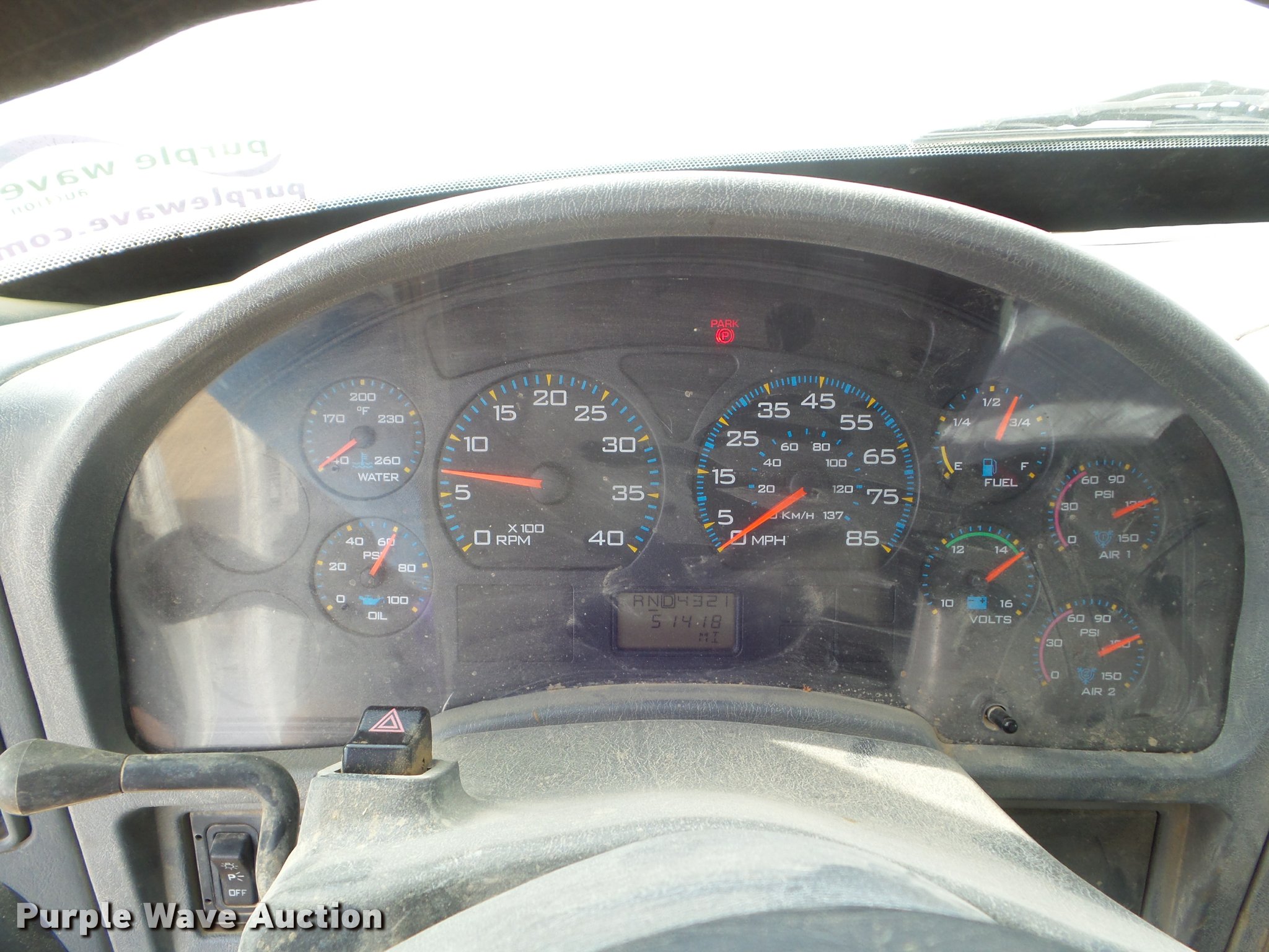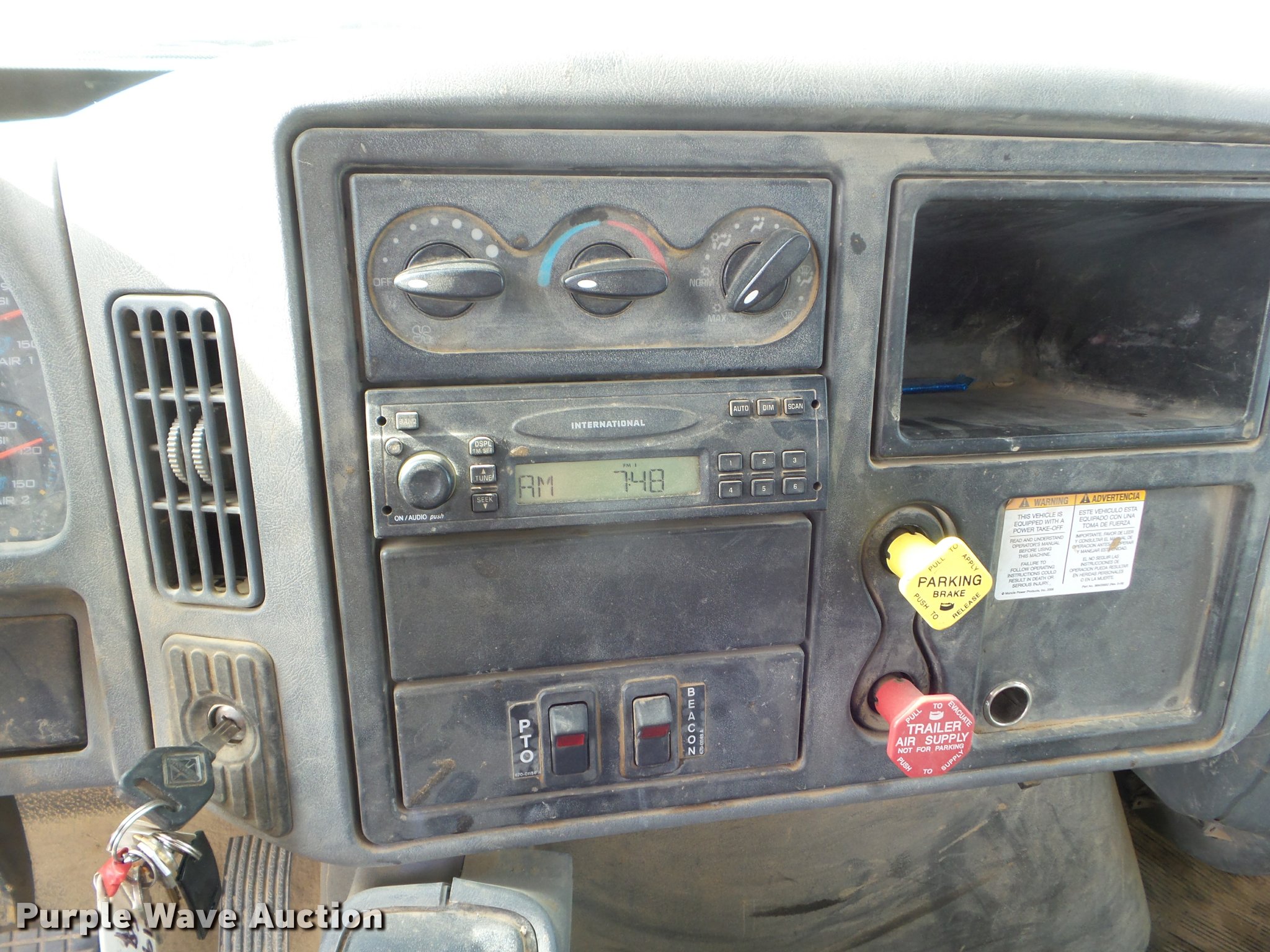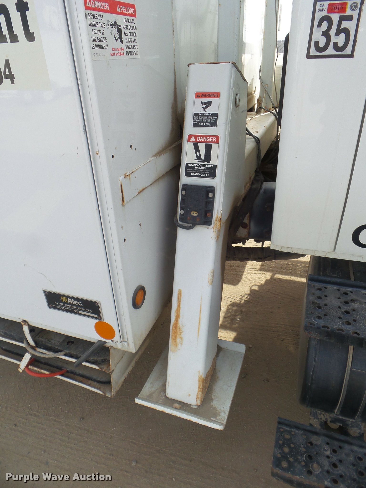 Purple Wave is selling a used Bucket Truck in California. This item is a 2008 International DuraStar 4300 bucket truck with the following: 51,418 miles on odometer, 5,631 hours on meter, International MaxxForce DT DT466 7.6L L6 turbo diesel engine, Automatic transmission, Single axle, AC and heat, Cruise, AM/FM, Heated mirrors, Spring suspension seat, Beacon light, Front tow hooks, PTO, Altec service bed, 16'L, Shelving, Pintle hitch, Trailer wiring, Glad hand couplers, 2007 Altec AA755L boom, 600 lbs maximum lift capacity, 56' maximum lift height, Man basket, Platform and ground controls, Boom rotation, Articulating, insulated boom, Single fuel tank, 188" wheelbase, Spring suspension, Air brakes, 11R22.5 tires, GVWR 33,000 lbs, Boom rusted, Boom is not certified, Vehicle is not California emissions compliant, Contents are not included, Unit# 1358
