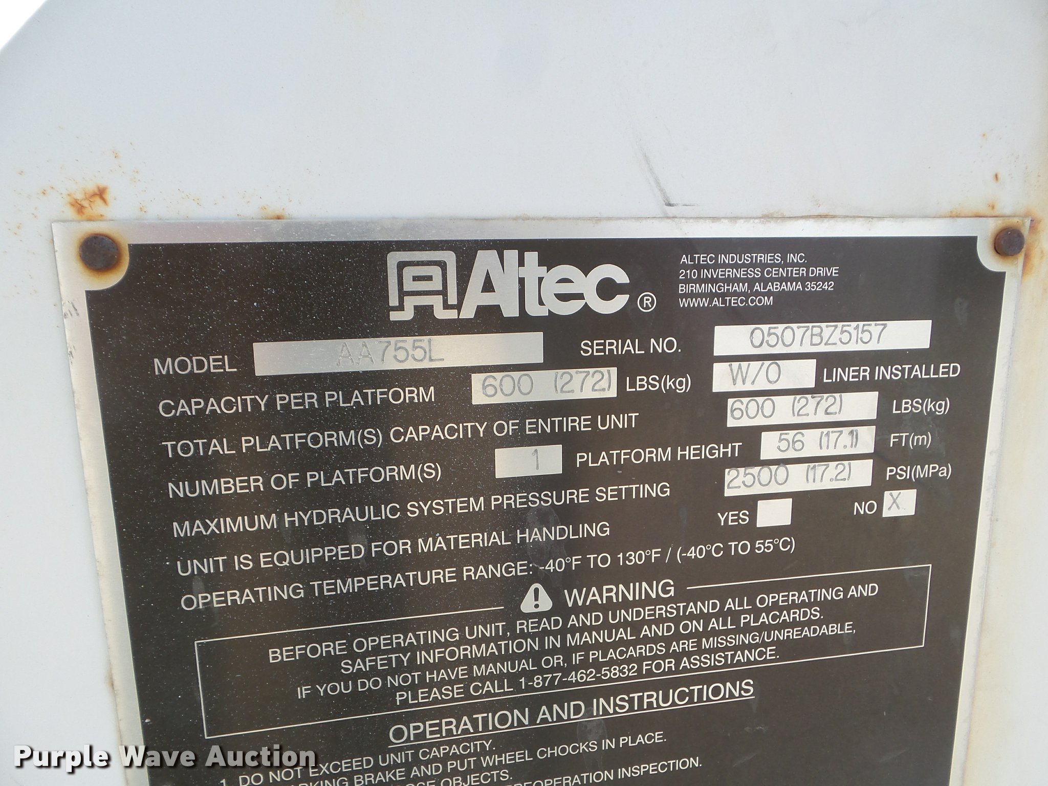 - 2007 Altec AA755L boom