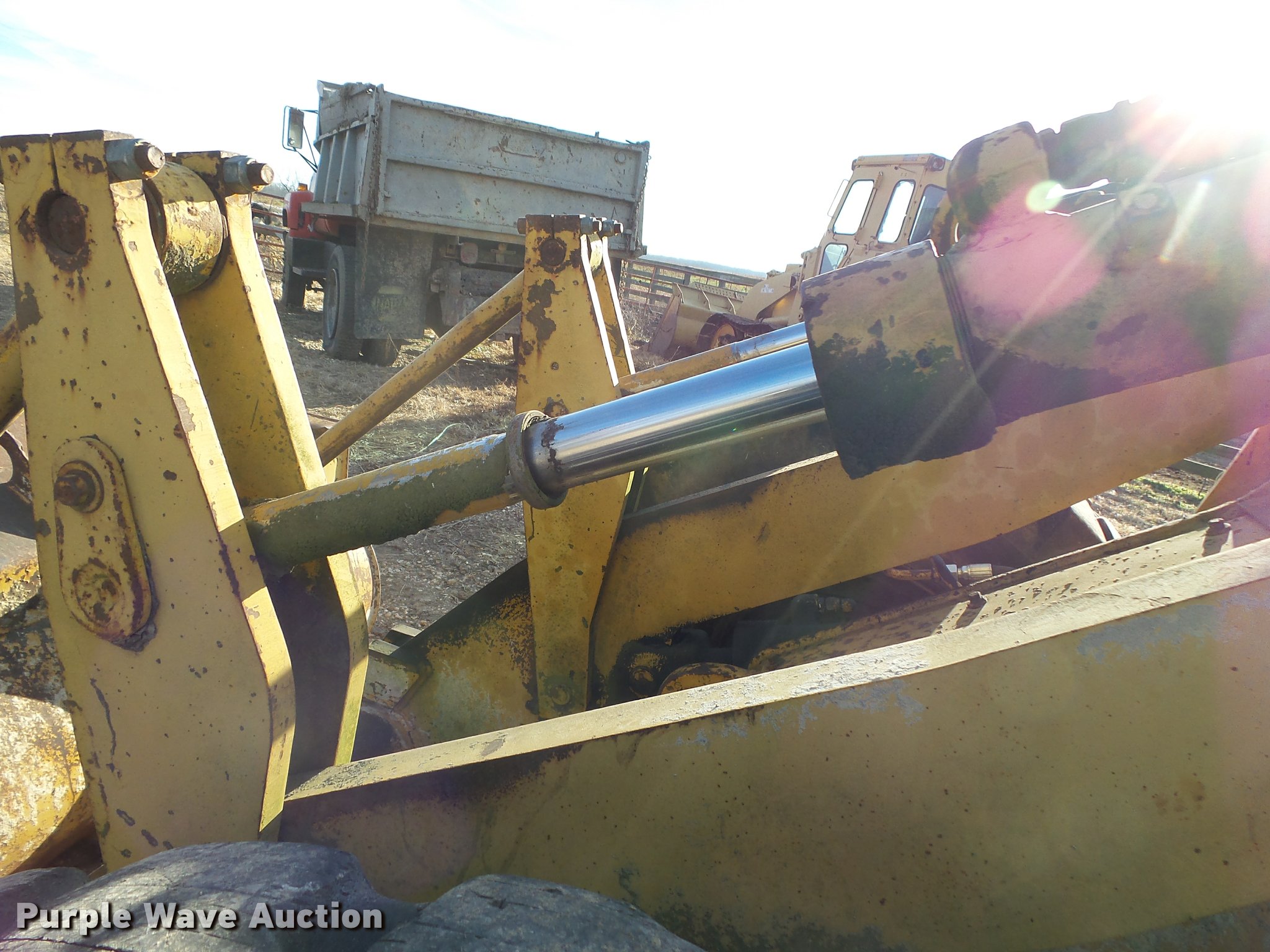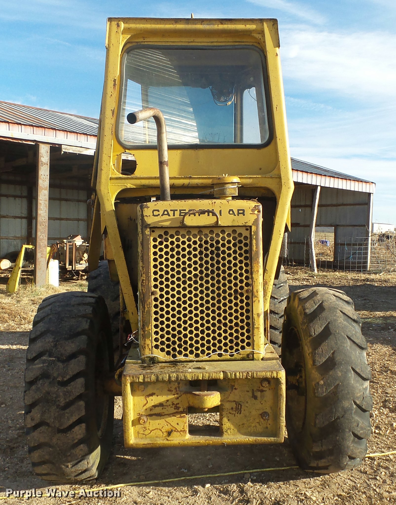 Caterpillar 910 wheel loader. Unknown hours on meter, Caterpillar 3204 four cylinder diesel engine Serial 45V1447, Powershift transmission 3F-1R gears, Enclosed cab Arrangement no. 653300, Joystick bucket controls, 81"W bucket Bolt-on cutting edge, Rear counterweight, 15.5-25 tires Tires have cuts, One forward gear inoperable, Engine side panels missing, Engine oil leaks, Fuel injector leak, No brakes, Hour meter inoperable, Serial 80U5438. 469 Hazelwood Rd. Seymour, MO 65746