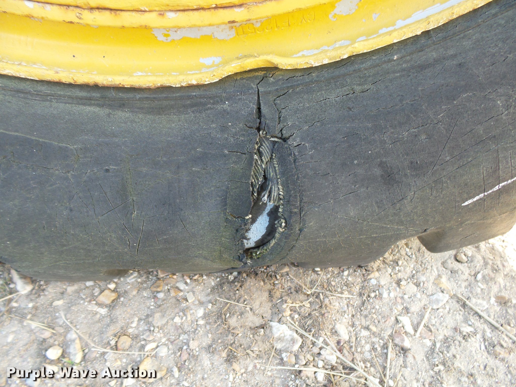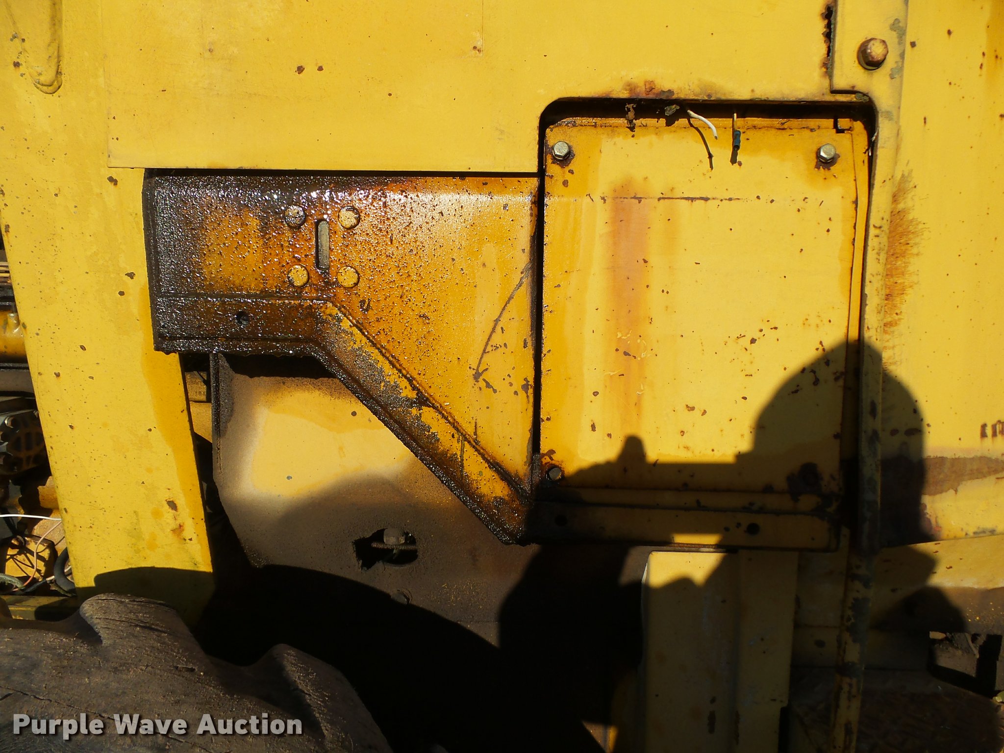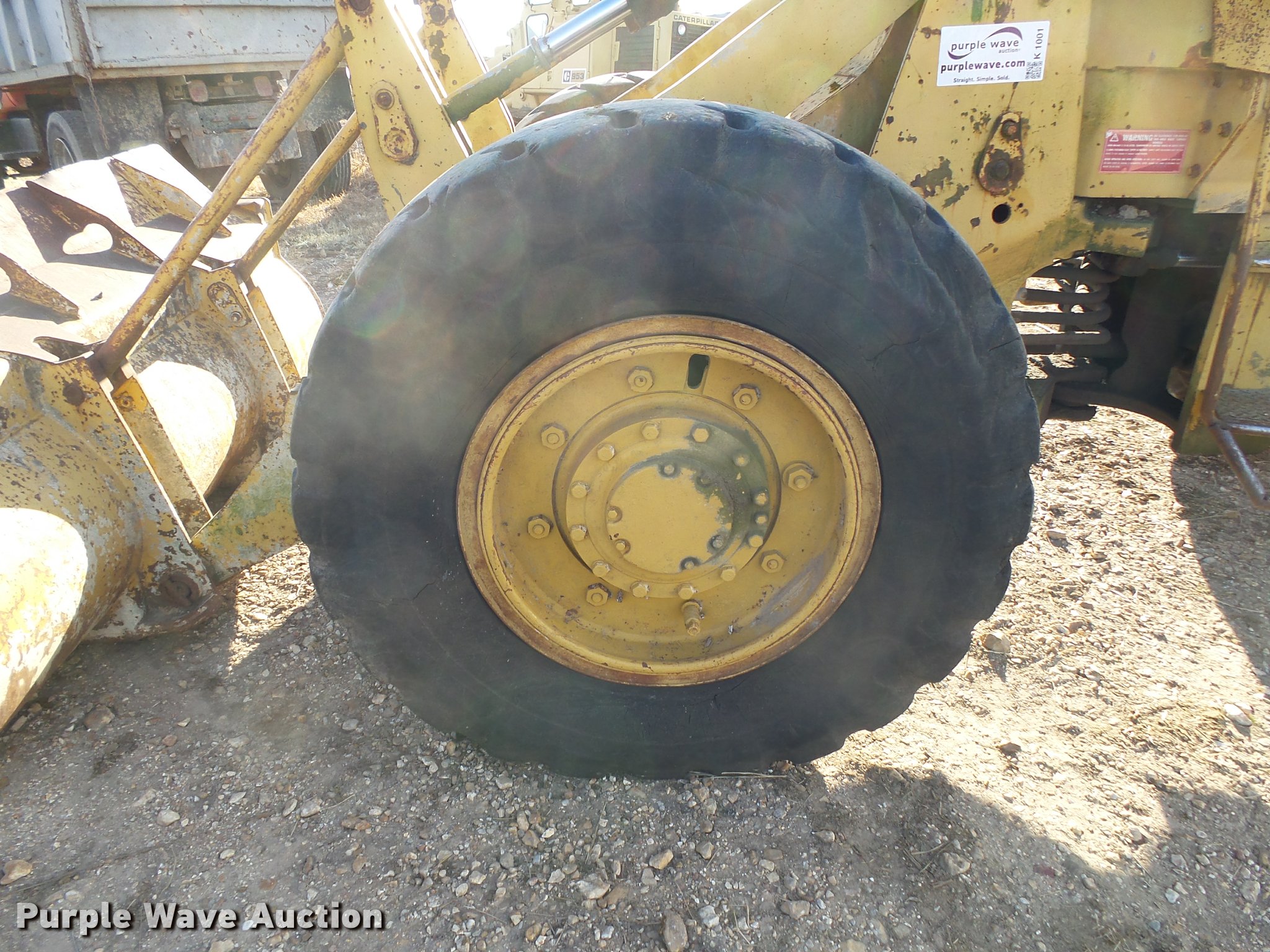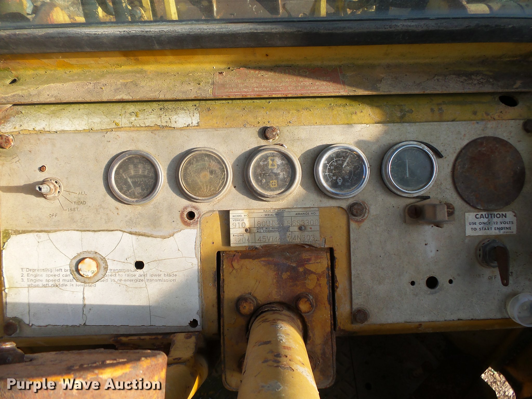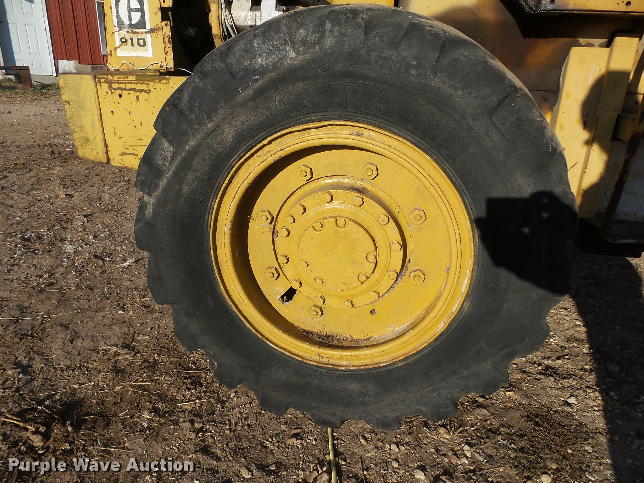 Purple Wave is selling a used Wheel Loader in Missouri. This item is a Caterpillar 910 wheel loader with the following: Unknown hours on meter, Caterpillar 3204 four cylinder diesel engine, Serial 45V1447, Powershift transmission, 3F-1R gears, Enclosed cab, Arrangement no. 653300, Joystick bucket controls, 81"W bucket, Bolt-on cutting edge, Rear counterweight, 15.5-25 tires, Tires have cuts, One forward gear inoperable, Engine side panels missing, Engine oil leaks, Fuel injector leak, No brakes, Hour meter inoperable, Serial 80U5438