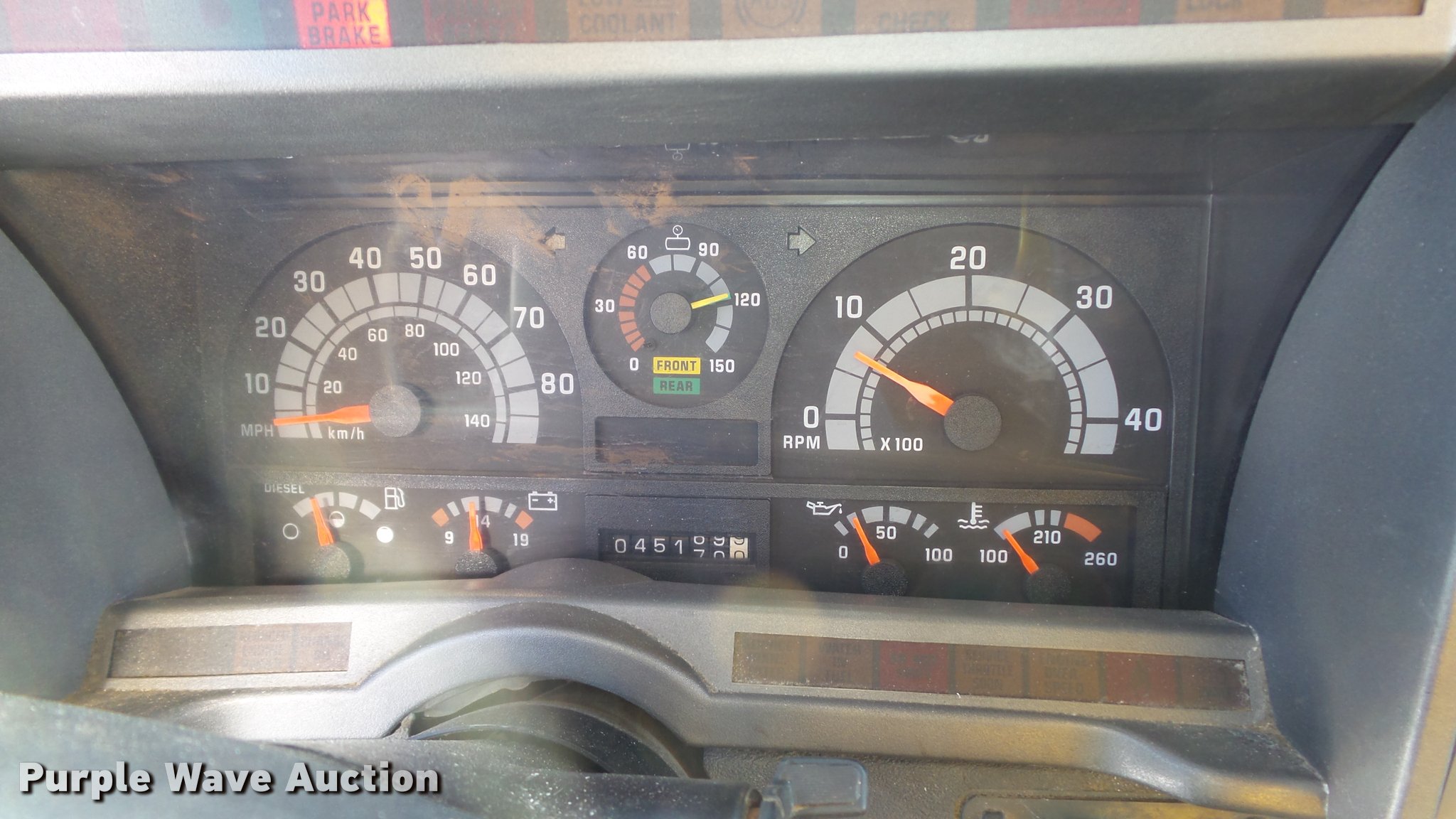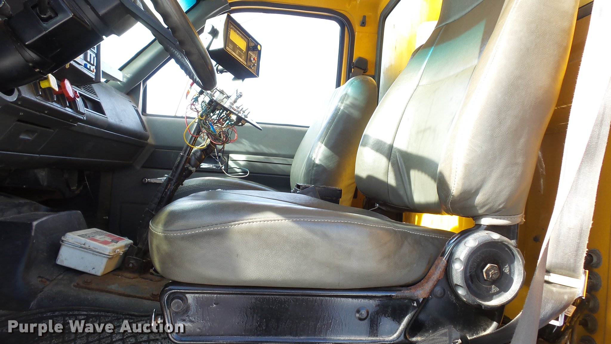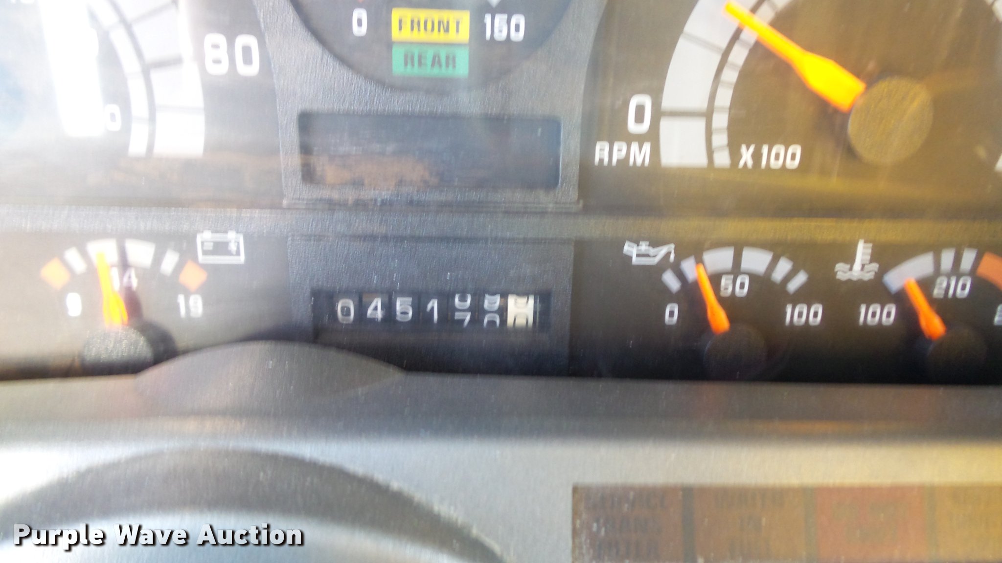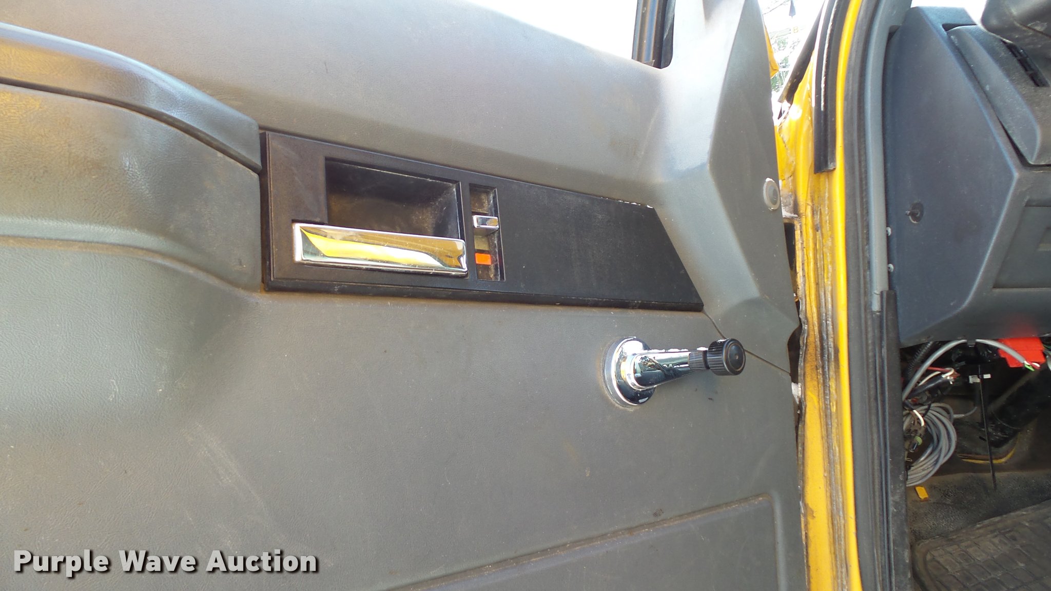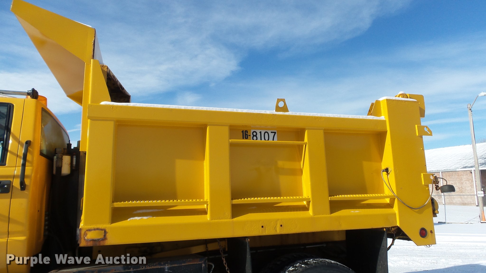 Purple Wave is selling a used Construction Dump Truck in Kansas. This item is a 2000 GMC C7500 dump truck with the following: 45,170 miles on odometer, Caterpillar 3126 7.2L six cylinder turbo diesel engine, Automatic transmission, Single axle, AC and heat, Tilt, AM/FM, Heated mirrors, Air suspension seat, Block heater, Steel dump bed, 10'L x 8'W, 39" side height, Single ram two stage hoist, Hinke 11'W snow plow, 8'W side blade, Air Flow FND spreader, Dickey John DJCS2000 control unit, Front and rear work lights, Single fuel tank, Pintle hitch, Trailer wiring, 13' wheelbase, Spring suspension, Air brakes, 11R22.5 tires, GVWR 36,220 lbs, FAWR 13,220 lbs, RAWR 23,000 lbs, Batteries dead, Rust, Unit# 8107