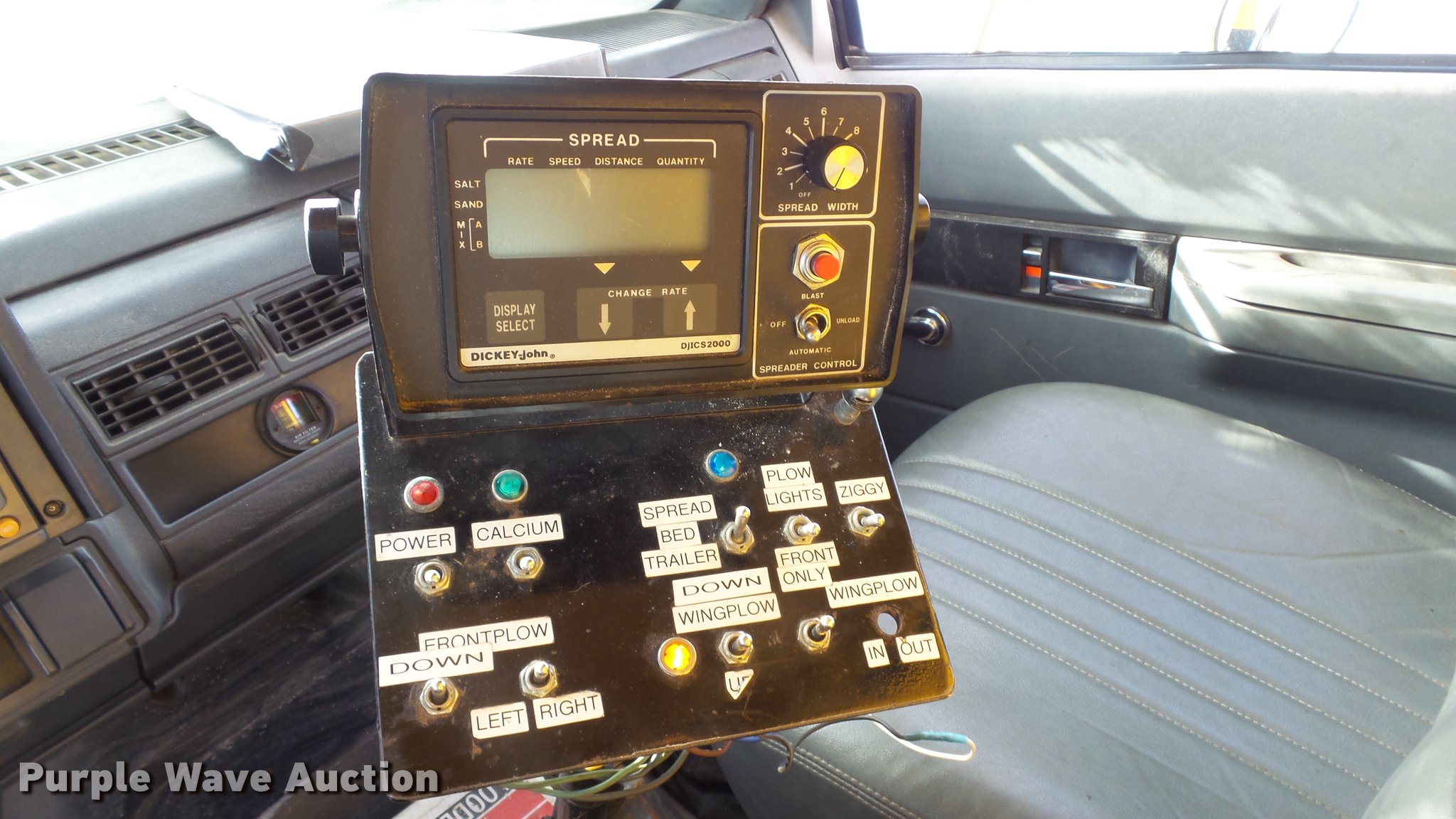 2000 GMC C7500 dump truck. 45,170 miles on odometer, Caterpillar 3126 7.2L six cylinder turbo diesel engine, Automatic transmission, Single axle, AC and heat, Tilt, AM/FM, Heated mirrors, Air suspension seat, Block heater, Steel dump bed 10'L x 8'W, 39" side height, Single ram two stage hoist, Hinke 11'W snow plow 8'W side blade, Air Flow FND spreader, Dickey John DJCS2000 control unit, Front and rear work lights, Single fuel tank, Pintle hitch, Trailer wiring, 13' wheelbase, Spring suspension, Air brakes, 11R22.5 tires, GVWR 36,220 lbs, FAWR 13,220 lbs, RAWR 23,000 lbs, Batteries dead, Rust, Unit# 8107. Kansas title. Seller is a government entity who will be assigning and distributing the title. Please contact the seller for distribution questions. 1GDP7H1C9YJ514366. City of Overland Park. Overland Park, KS 66212