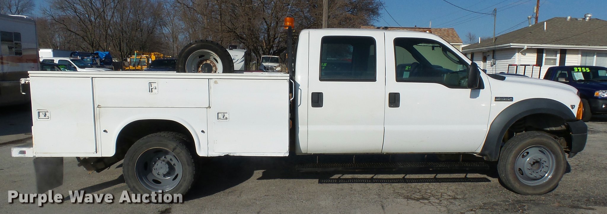 Purple Wave is selling a used Service Truck in Missouri. This item is a 2006 Ford F550 XL Crew Cab service truck with the following: 228,824 miles on odometer, 6.8L V10 gas engine, Automatic transmission, AC and heat, AM/FM, Brake controller, Auxiliary controls, Beacon light, Backup alarm, Front tow hooks, Knapheide 7108D service bed, 9'L, (6) compartments, Shelving, Headache rack, Single fuel tank, Trailer wiring, Spring suspension, Hydraulic brakes, 225/70R19.5 tires, GVWR 17,950 lbs