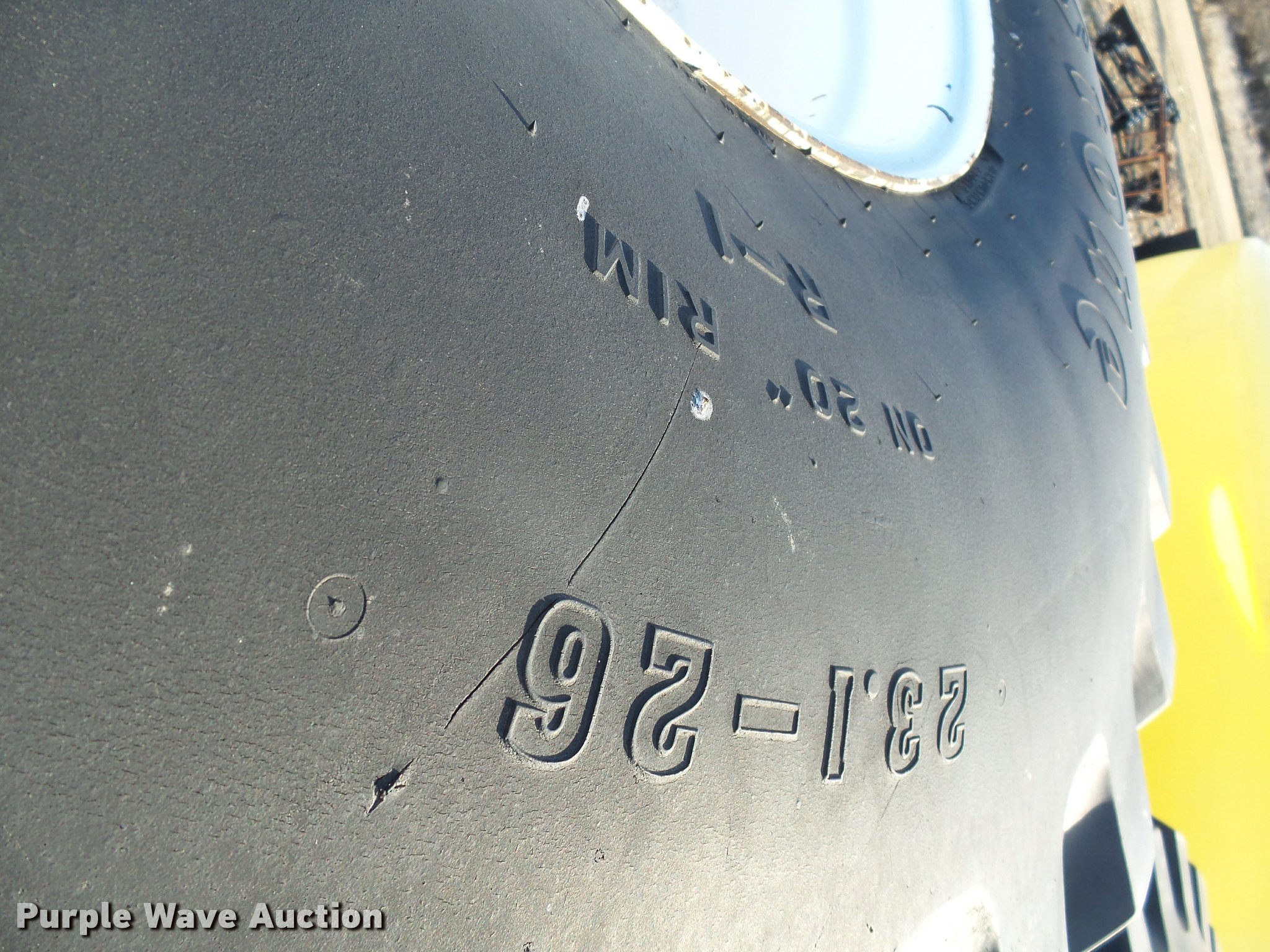 Purple Wave is selling a used Industrial Tires or Tracks in South Dakota. This item is a (4) Firestone 23.1-26 tires with the following: 12 ply, 20" eight hole wheels, Fits 1994 to 2003 models 854, 864, and 1064