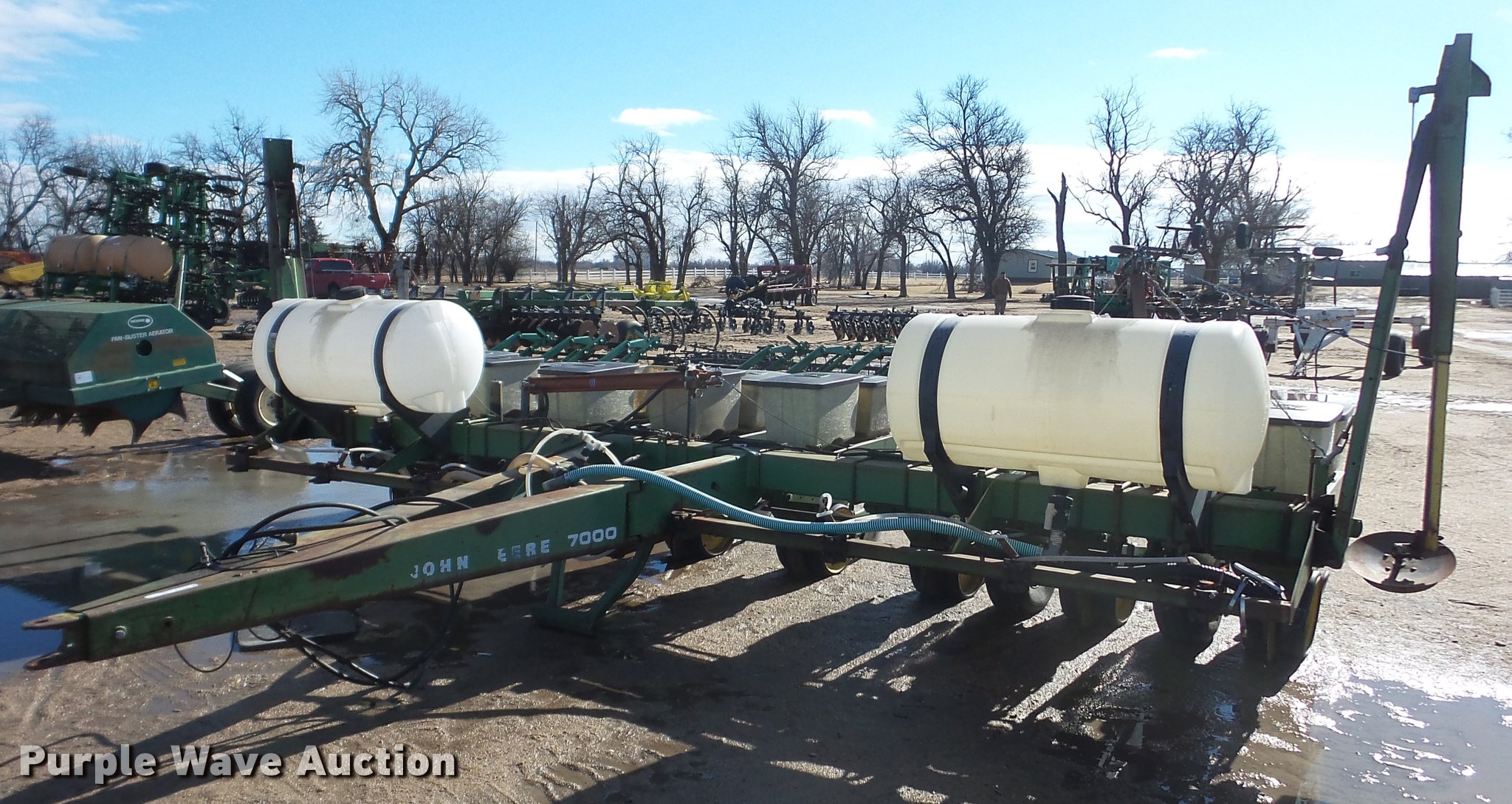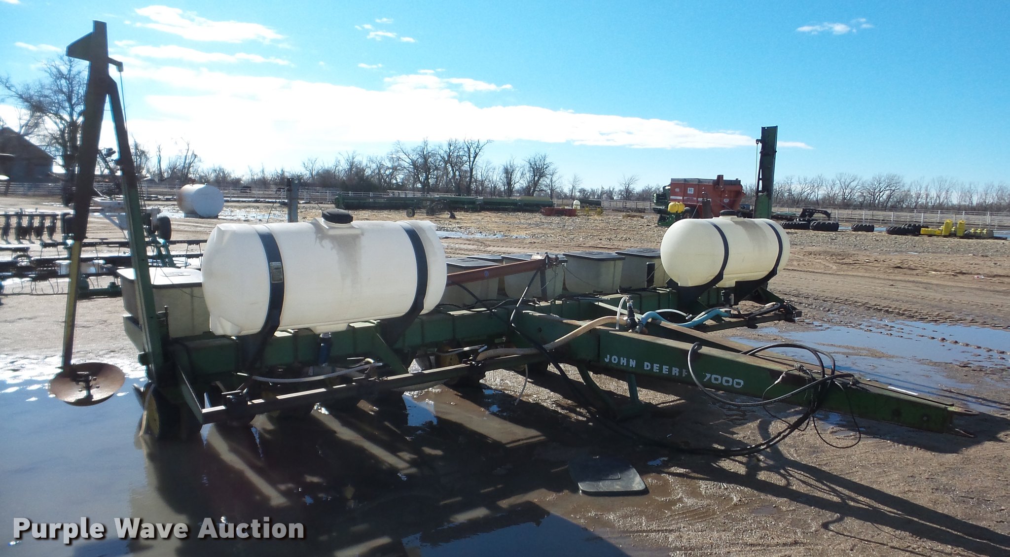 Purple Wave is selling a used Planter in Kansas. This item is a John Deere 7000 planter with the following: Eight row, 30" row spacing, Hydraulic lift, Marker arms, Pin hitch