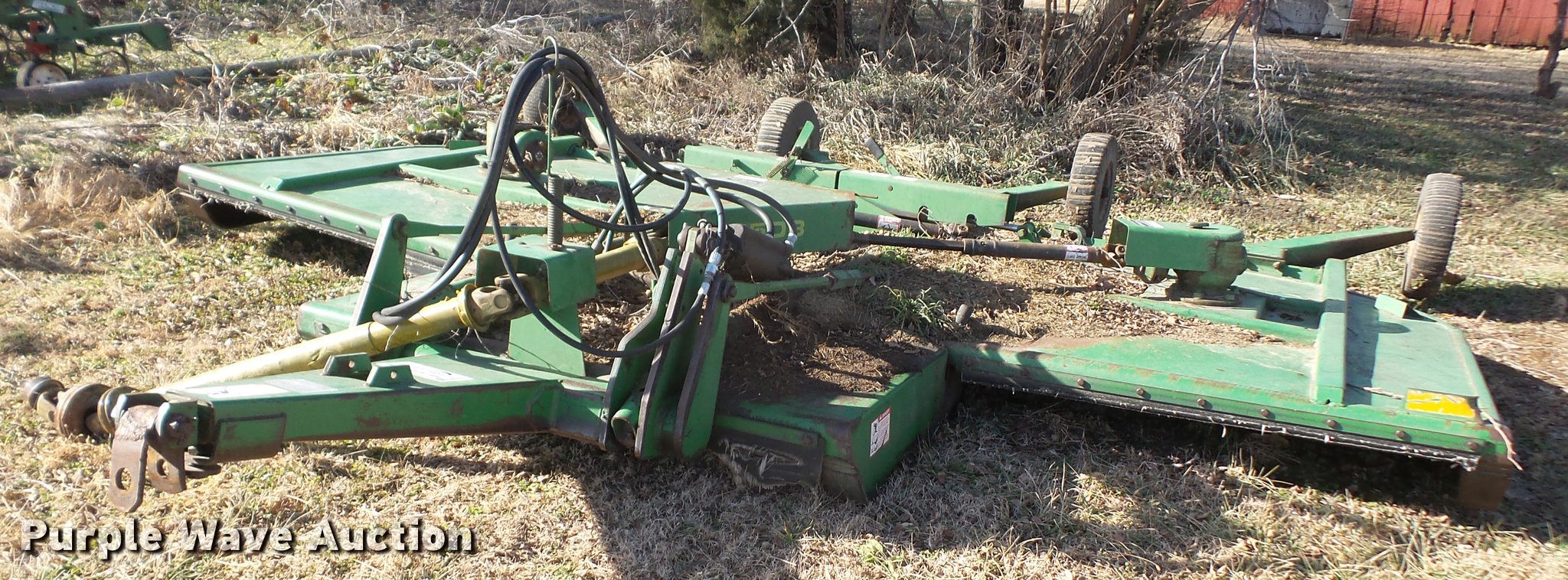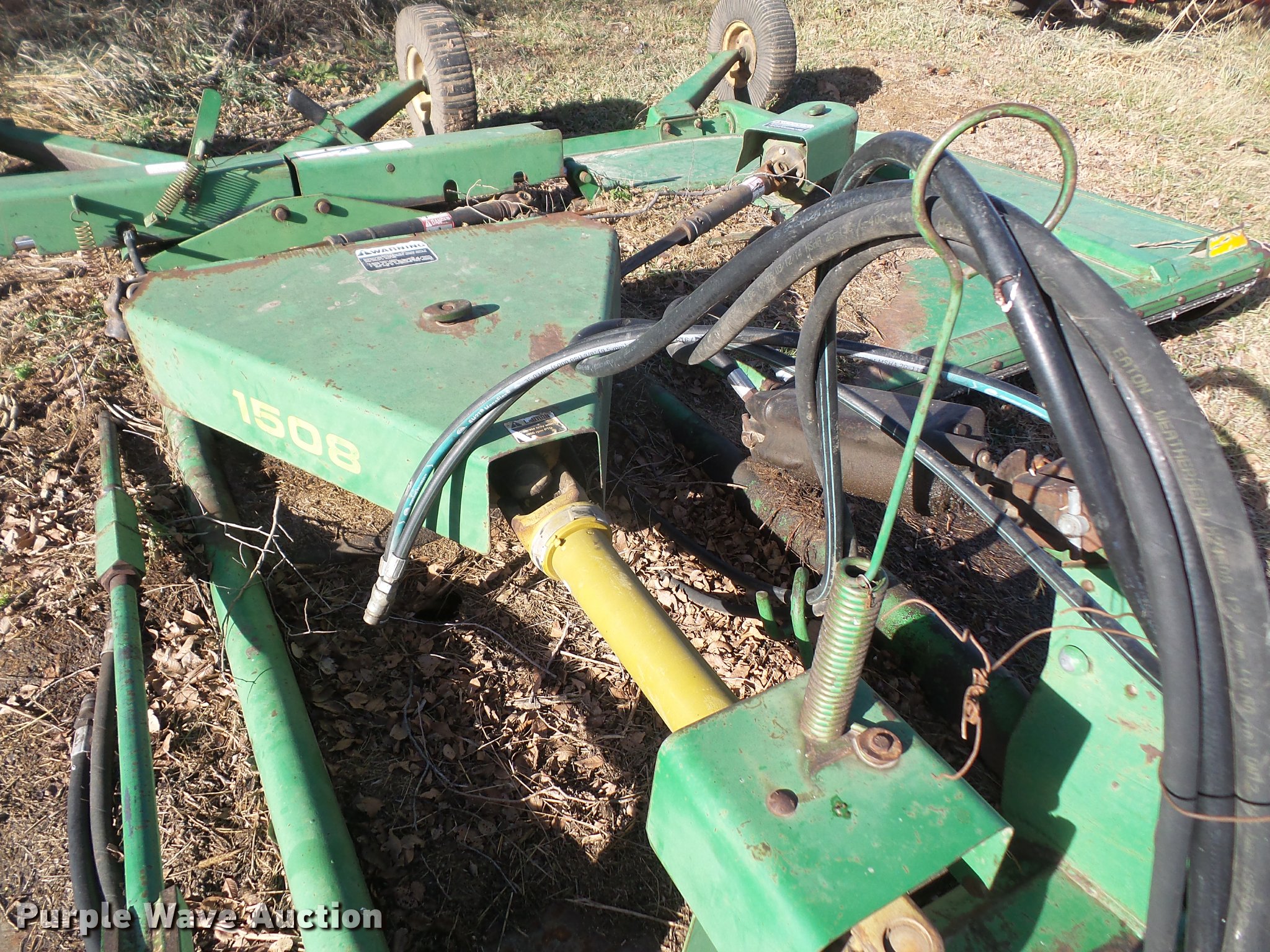 Purple Wave is selling a used Mower, Cutter, Shredder in Kansas. This item is a John Deere 1508 rotary mower with the following: 15'W, Hydraulic lift and fold, 1000 PTO, Pin hitch, Driveline shaft is twisted and needs to be repaired