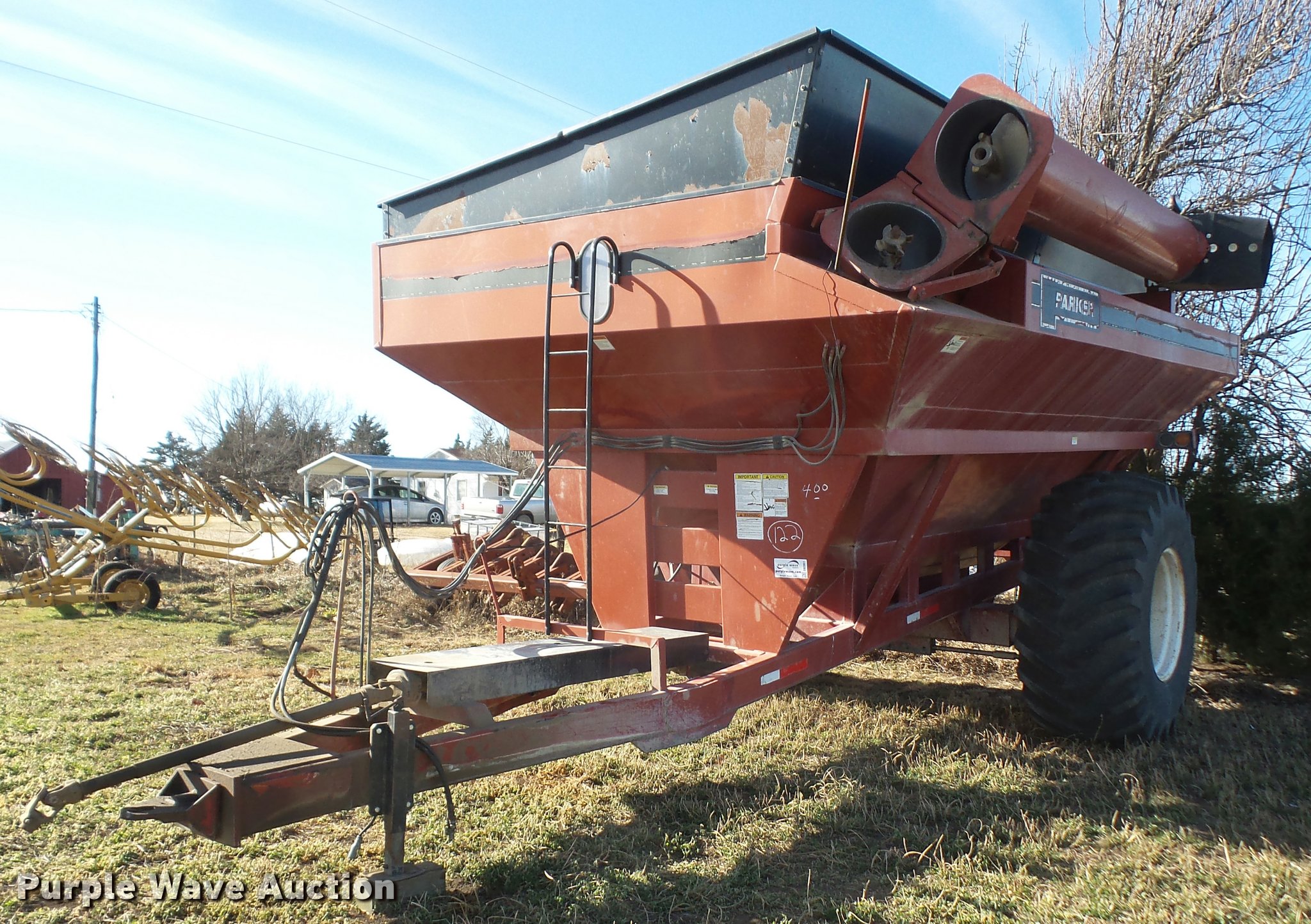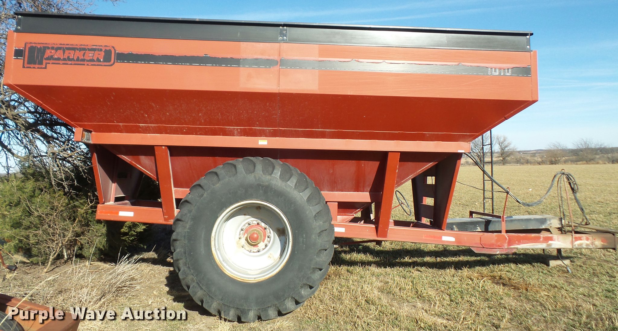 Purple Wave is selling a used Grain Cart or Gravity Wagon in Kansas. This item is a Parker 1010 grain cart with the following: 1000 bushel capacity, 18" unloading auger, 1000 PTO, 30.5L-32 tires