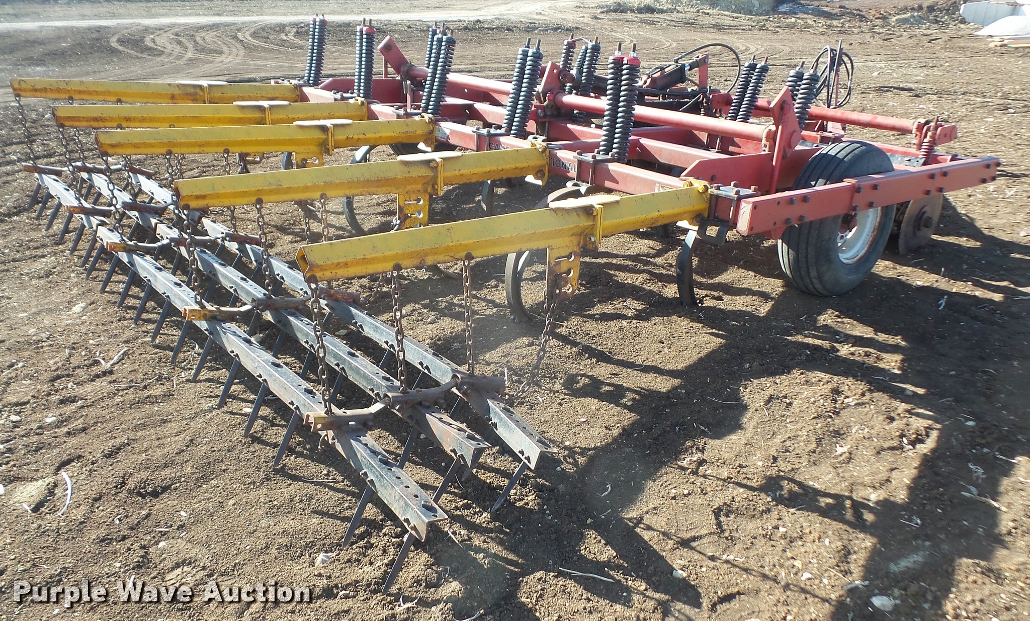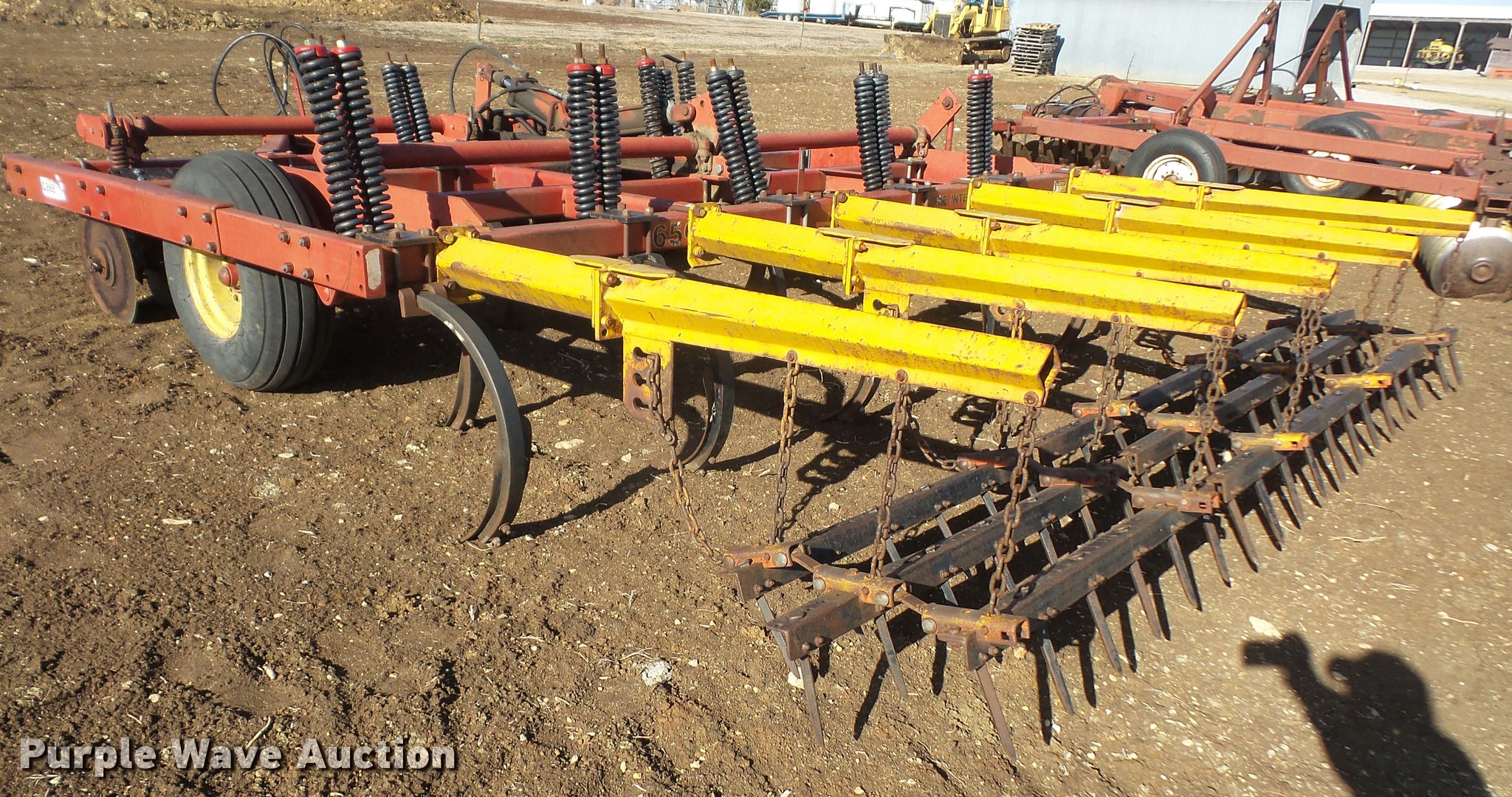 Purple Wave is selling a used Chisel in Kansas. This item is a Case IH Conser-Till 6500 chisel with the following: 14'W, (11) shanks, 19.5" diameter blades, Three bar spike tooth harrow, Hydraulic lift, Pin/clevis hitch, 11L-14 tires, One shank unattached, but will be included, Serial JAG0013200