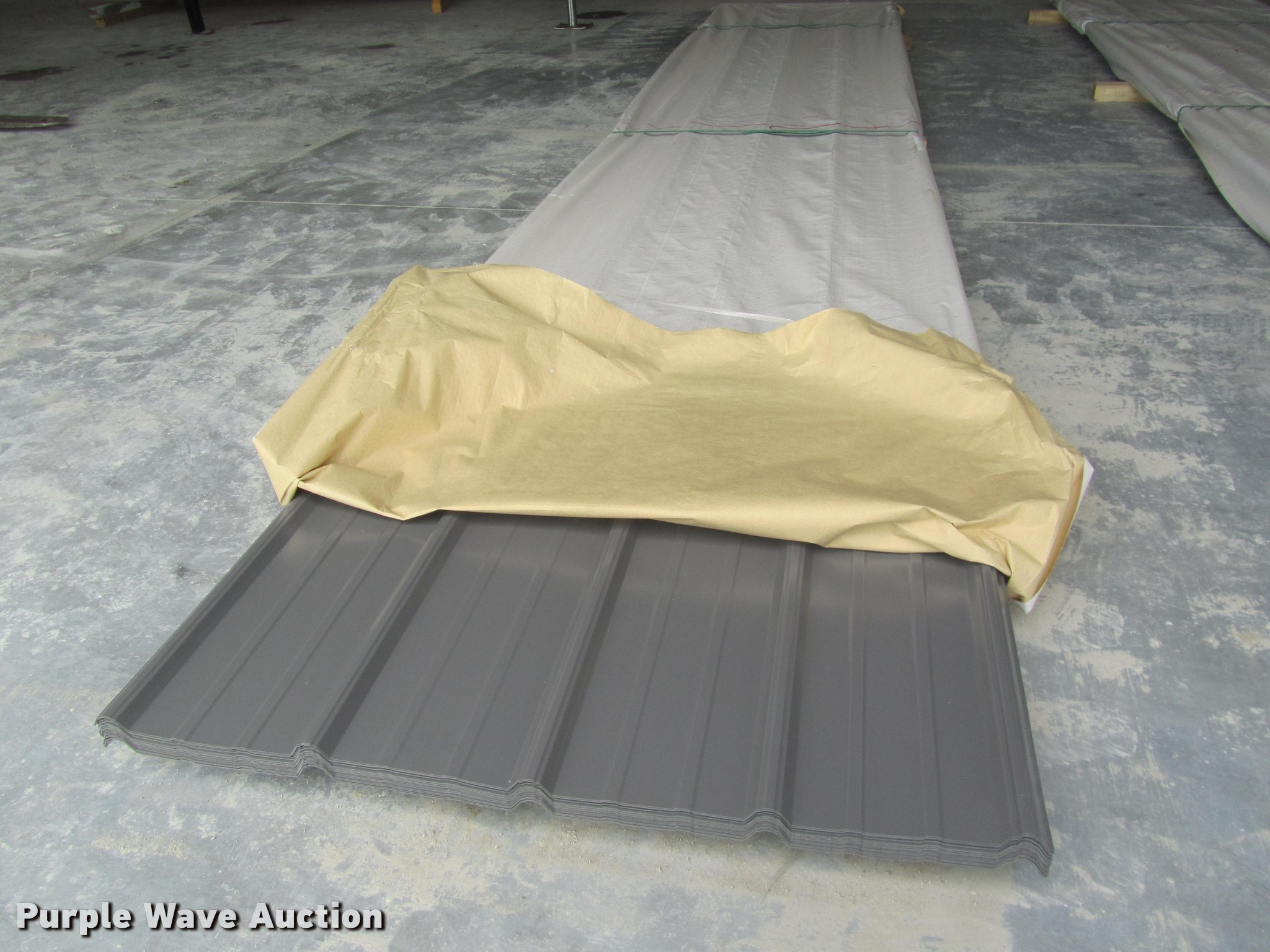 Purple Wave is selling a used Building Materials in Nebraska. This item is a (40) sheets of metal siding/roofing with the following: 16'L x 36" overlap coverage, Premium panel loc plus profile style, 29 gauge, Stored inside, Color: Charcoal, Unused, Meets all U.S.A. building material engineering codes for tested tolerances for wind and snow, USA stamped seal of documentation