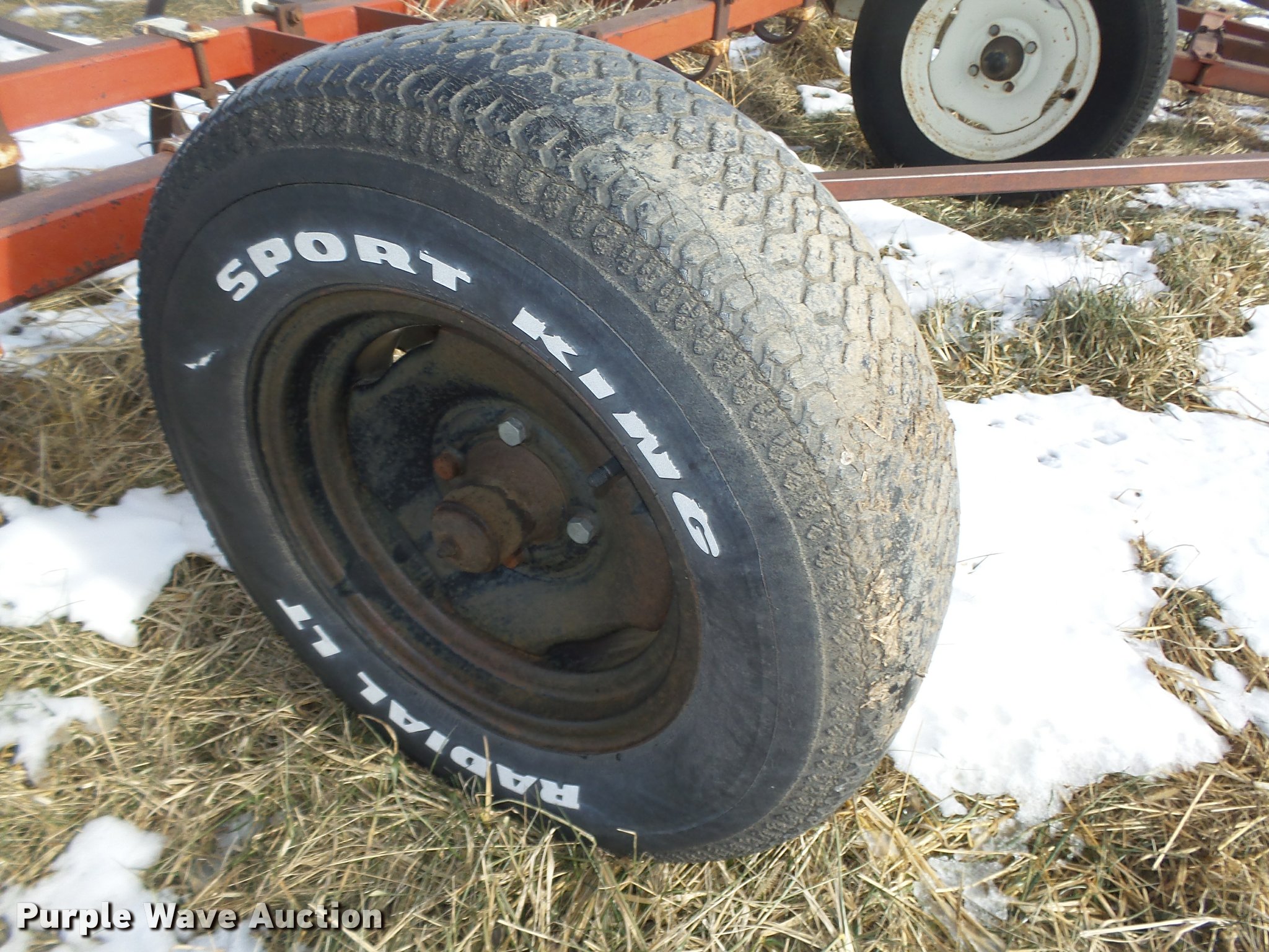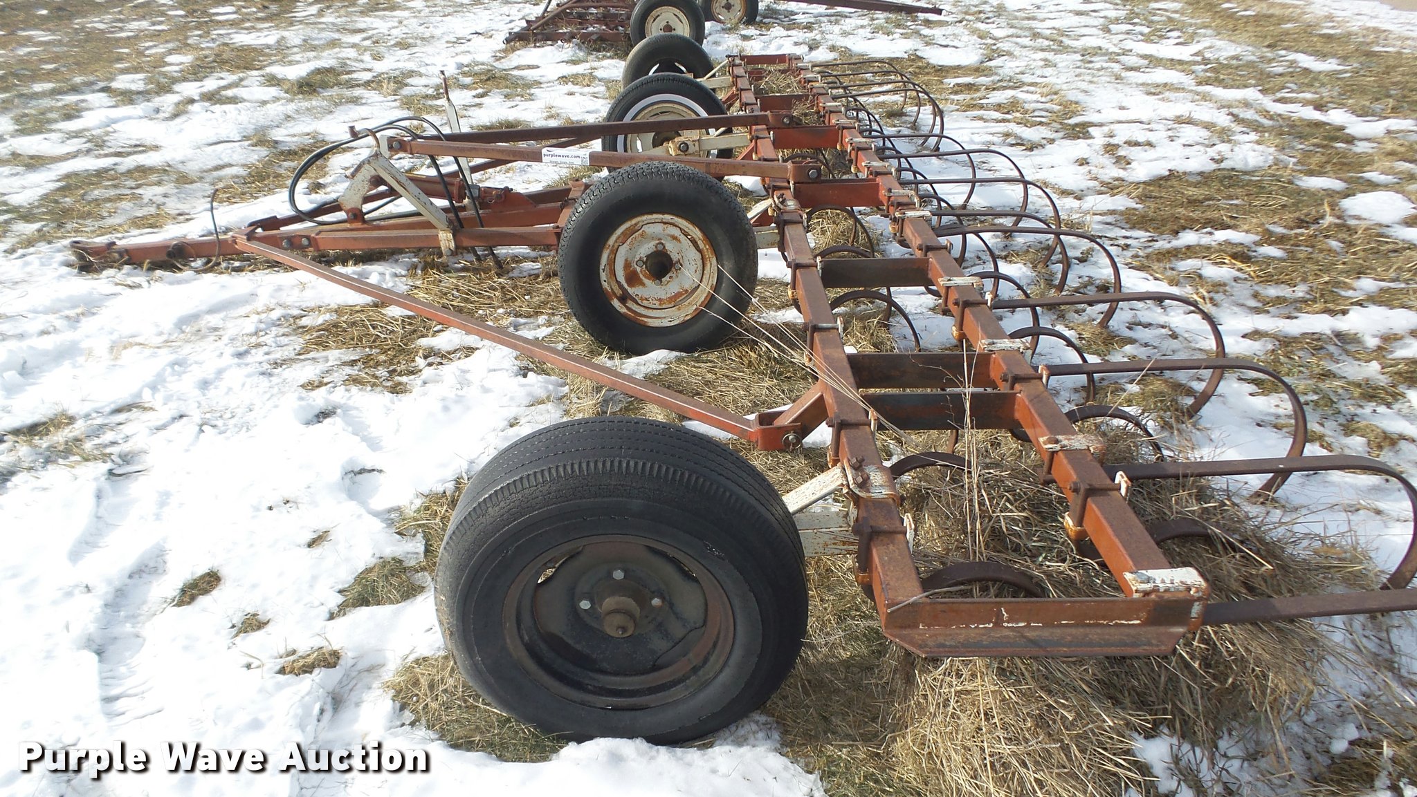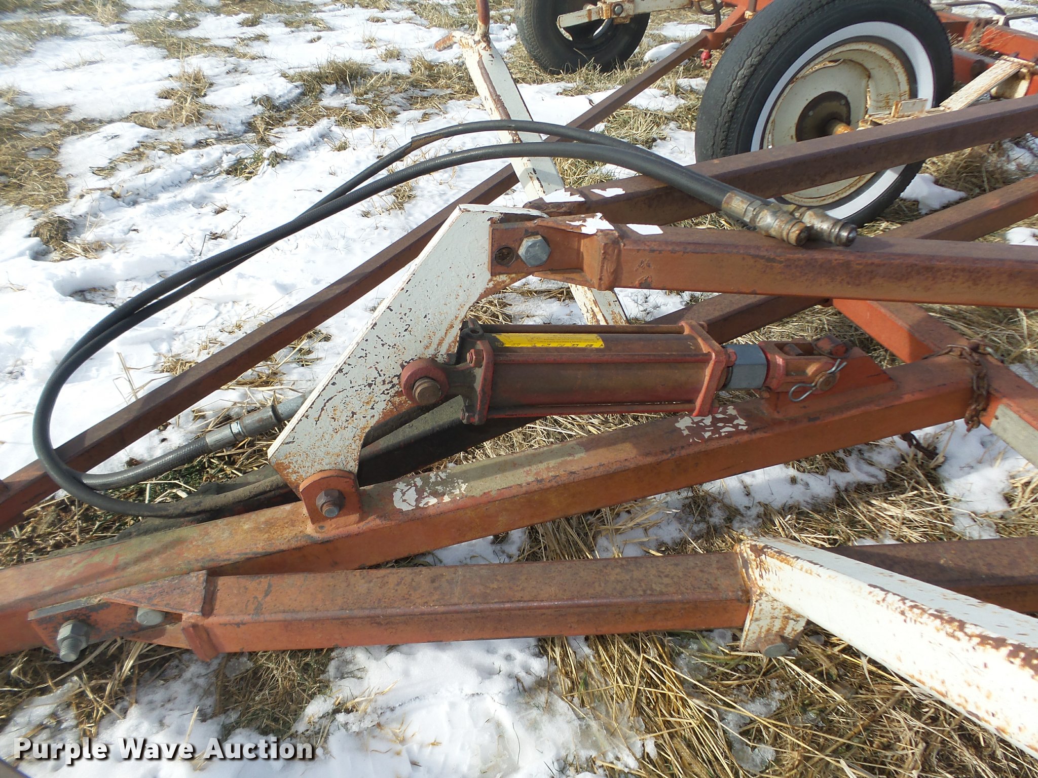 Purple Wave is selling a used Field Cultivator or Sweep Plow in Nebraska. This item is a CrustBuster field cultivator/harrow with the following: 20'W, 75" center section, 7' manual fold wings, No sweeps on spring shanks, Cross hydraulic cylinder, Pin hitch, 14" tires