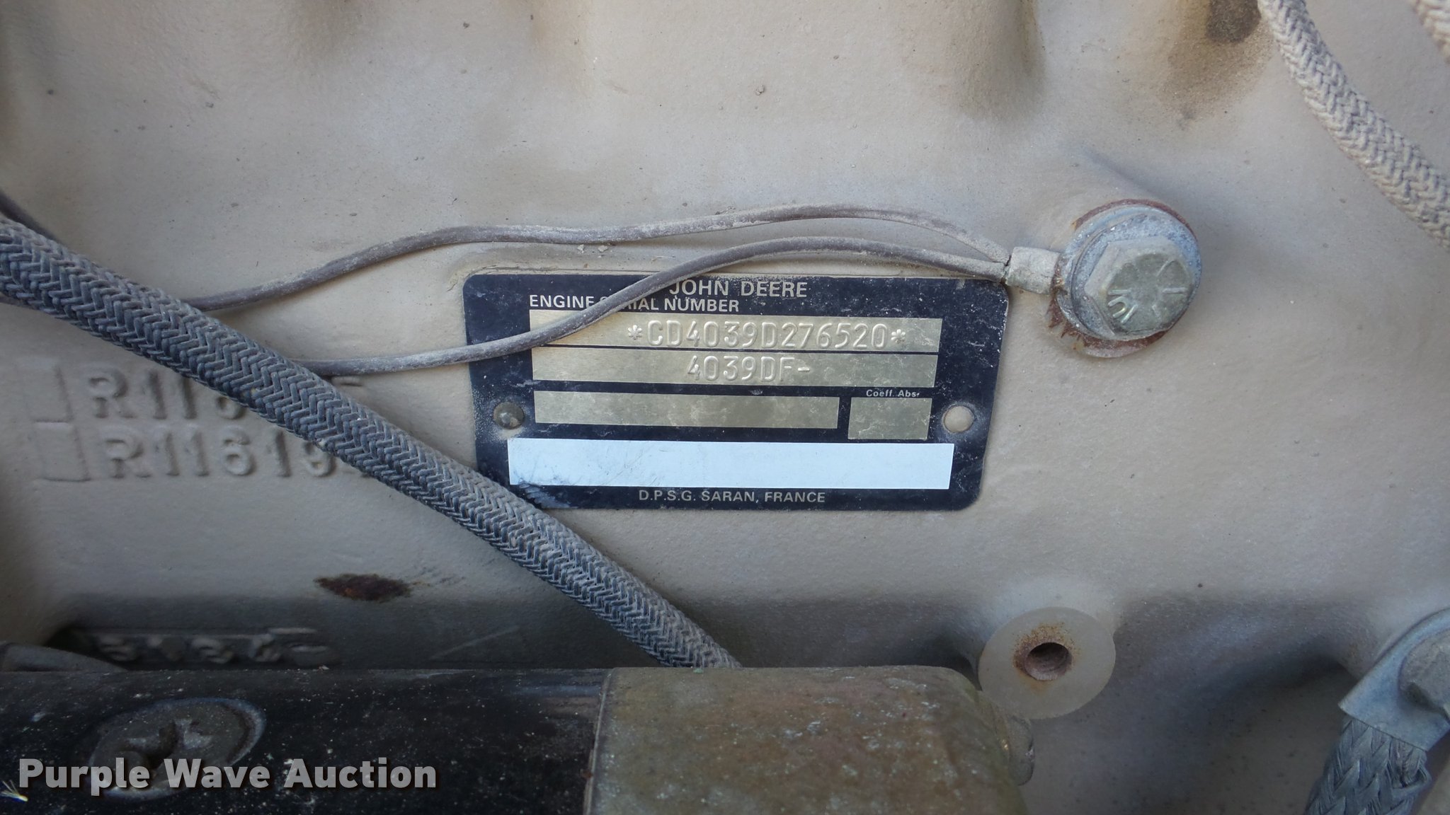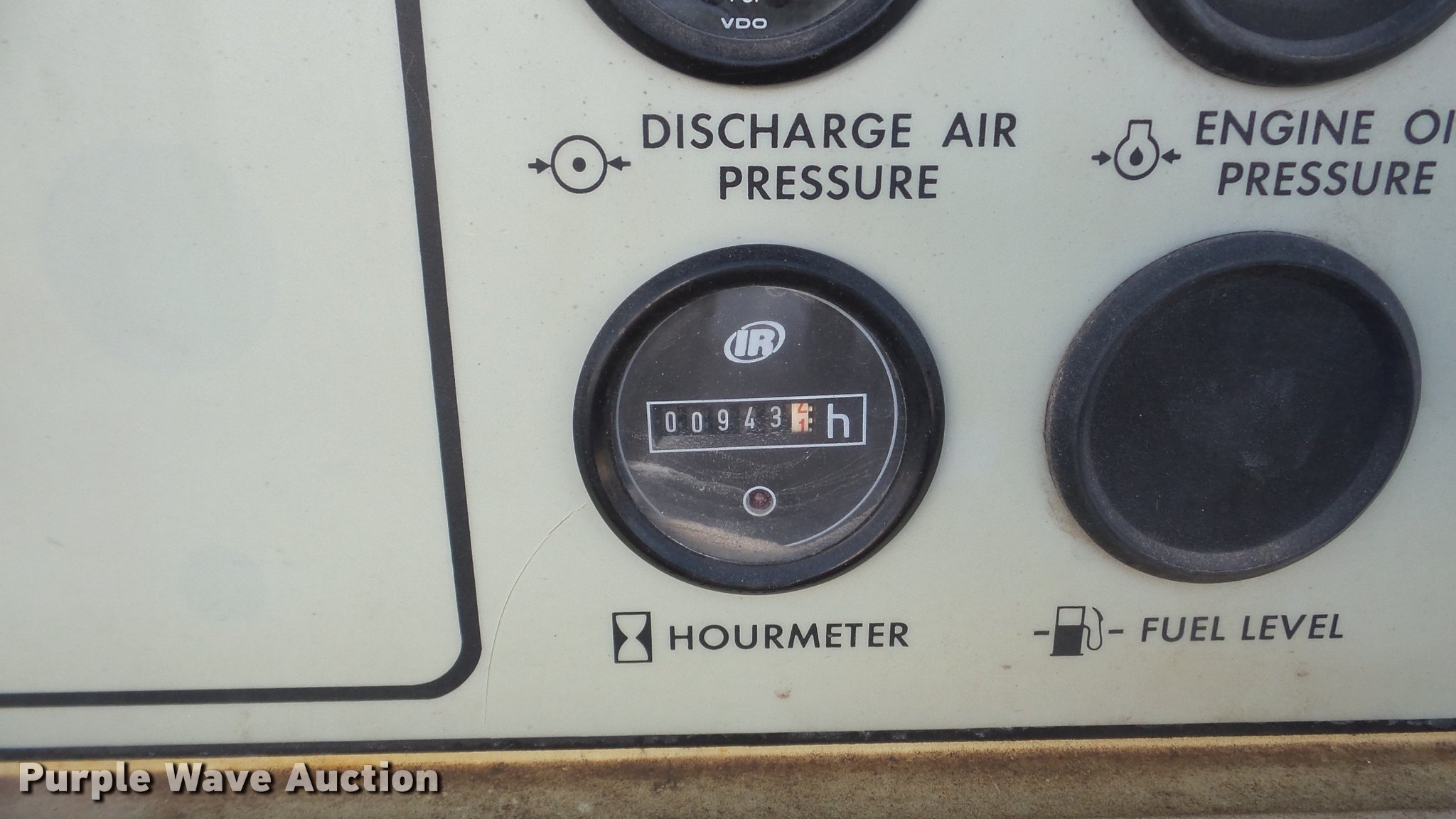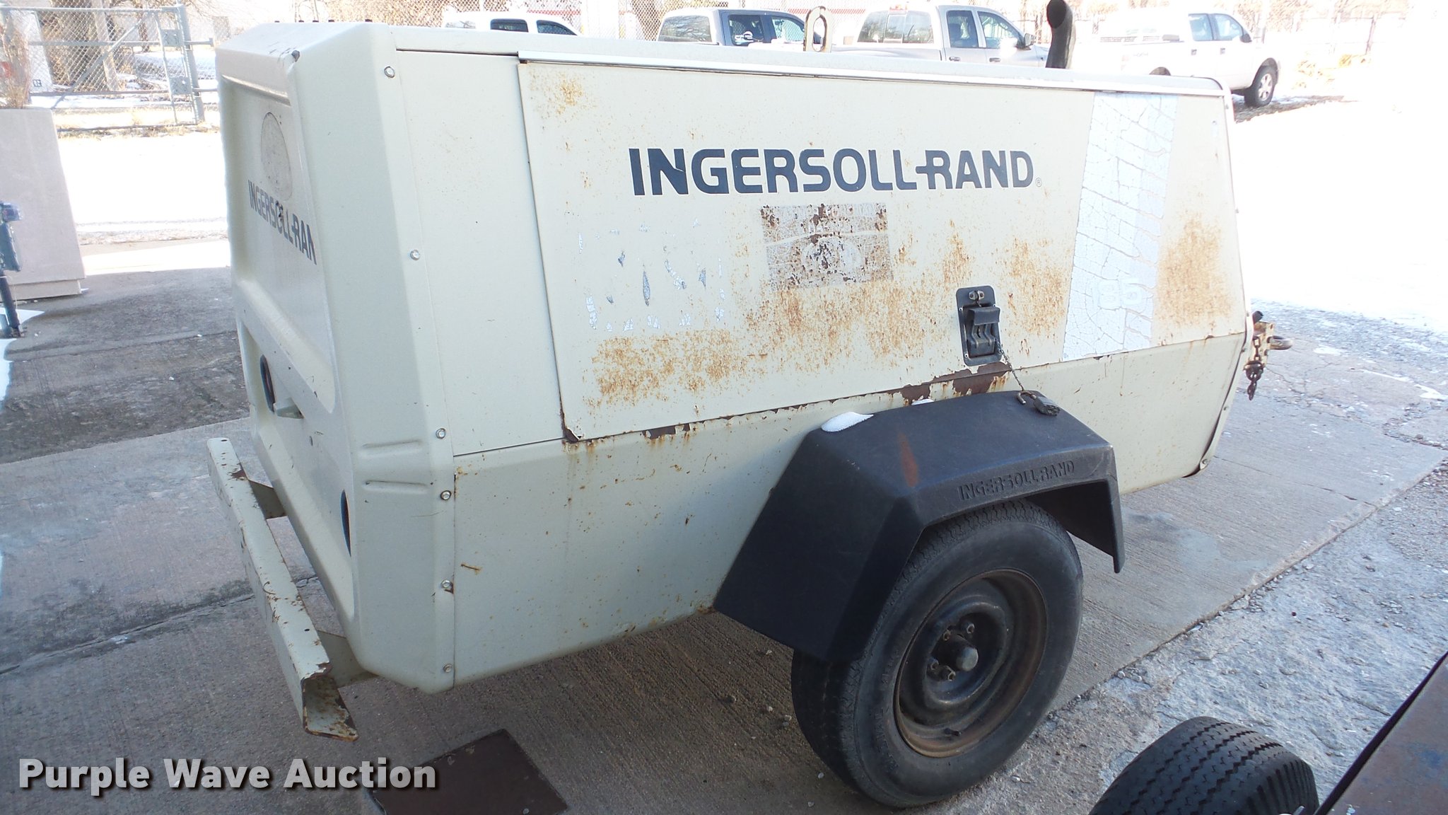 Purple Wave is selling a used Air Compressor in Kansas. This item is a 1996 Ingersoll Rand 185 air compressor with the following: 943 hours on meter, John Deere four cylinder diesel engine, 185 CFM, Hose, Pintle hitch, 205/75D15 tires