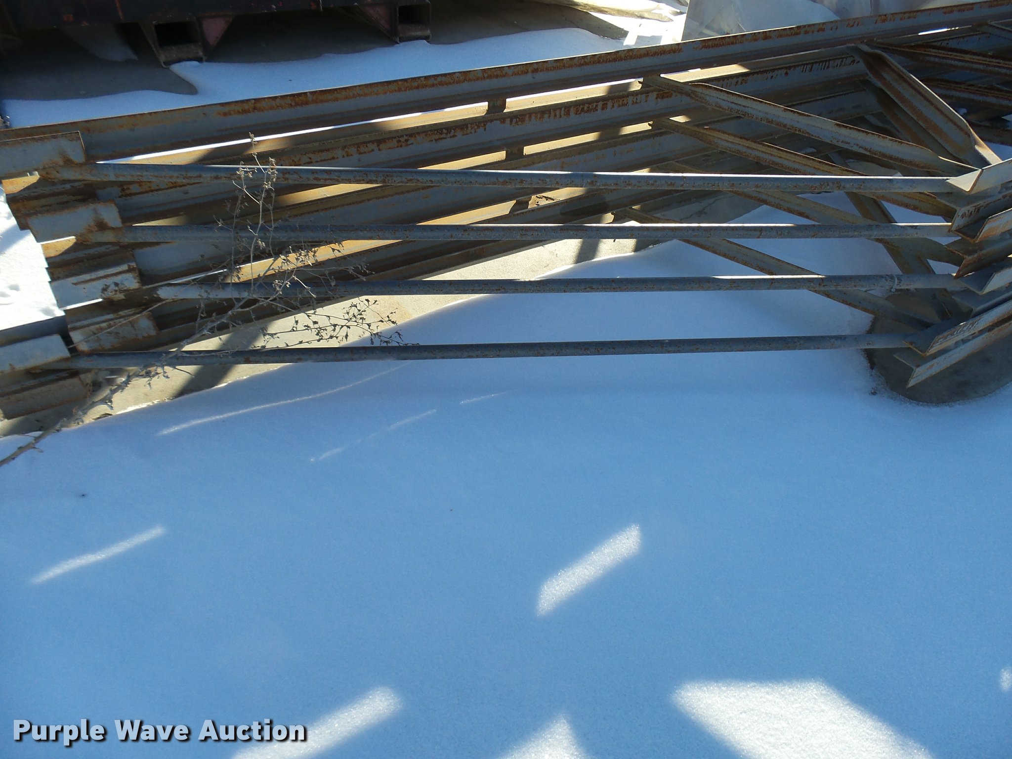 Purple Wave is selling a used Building Materials in Kansas. This item is a (4) metal trusses with the following: 50'L x 30"W