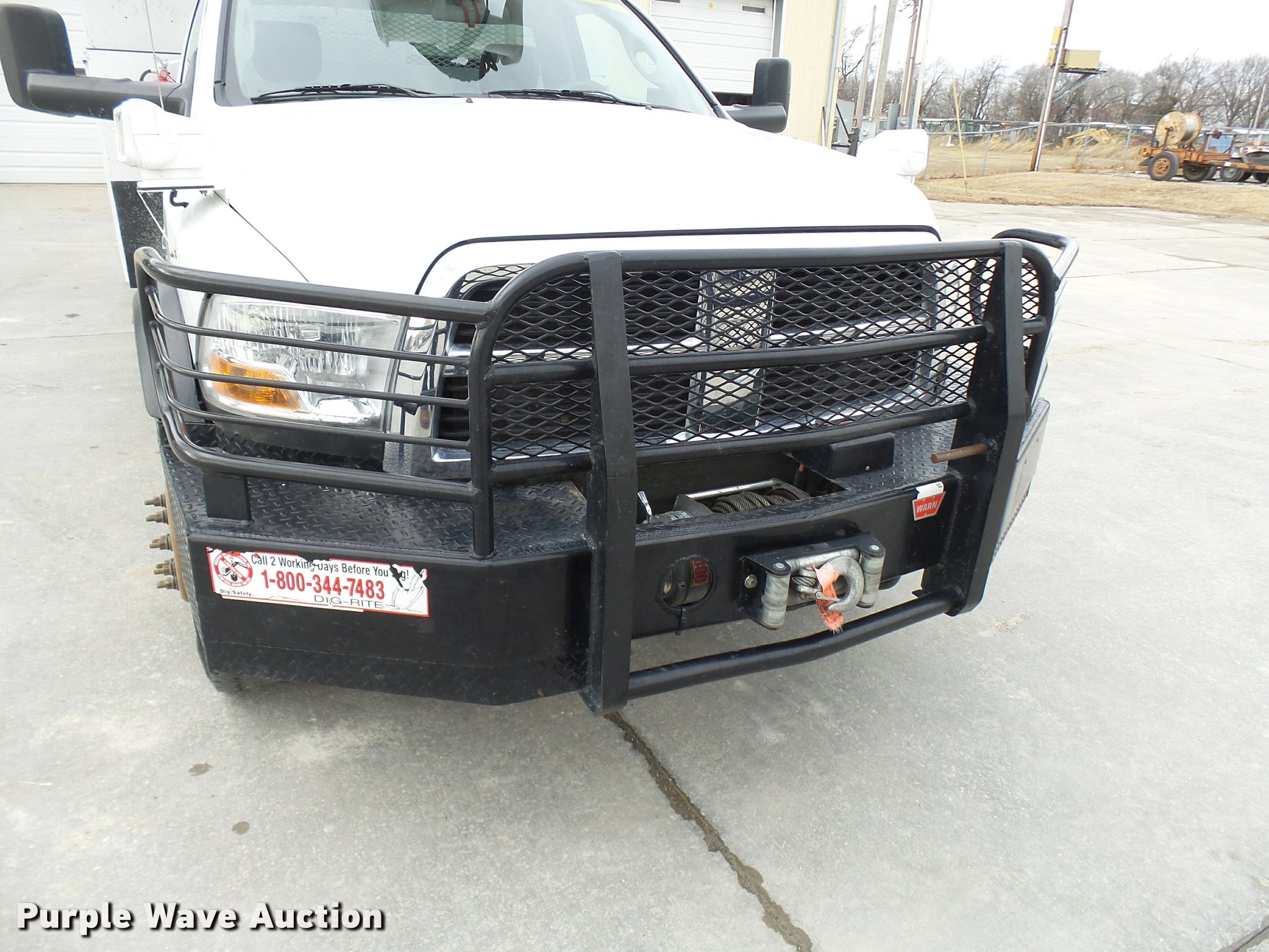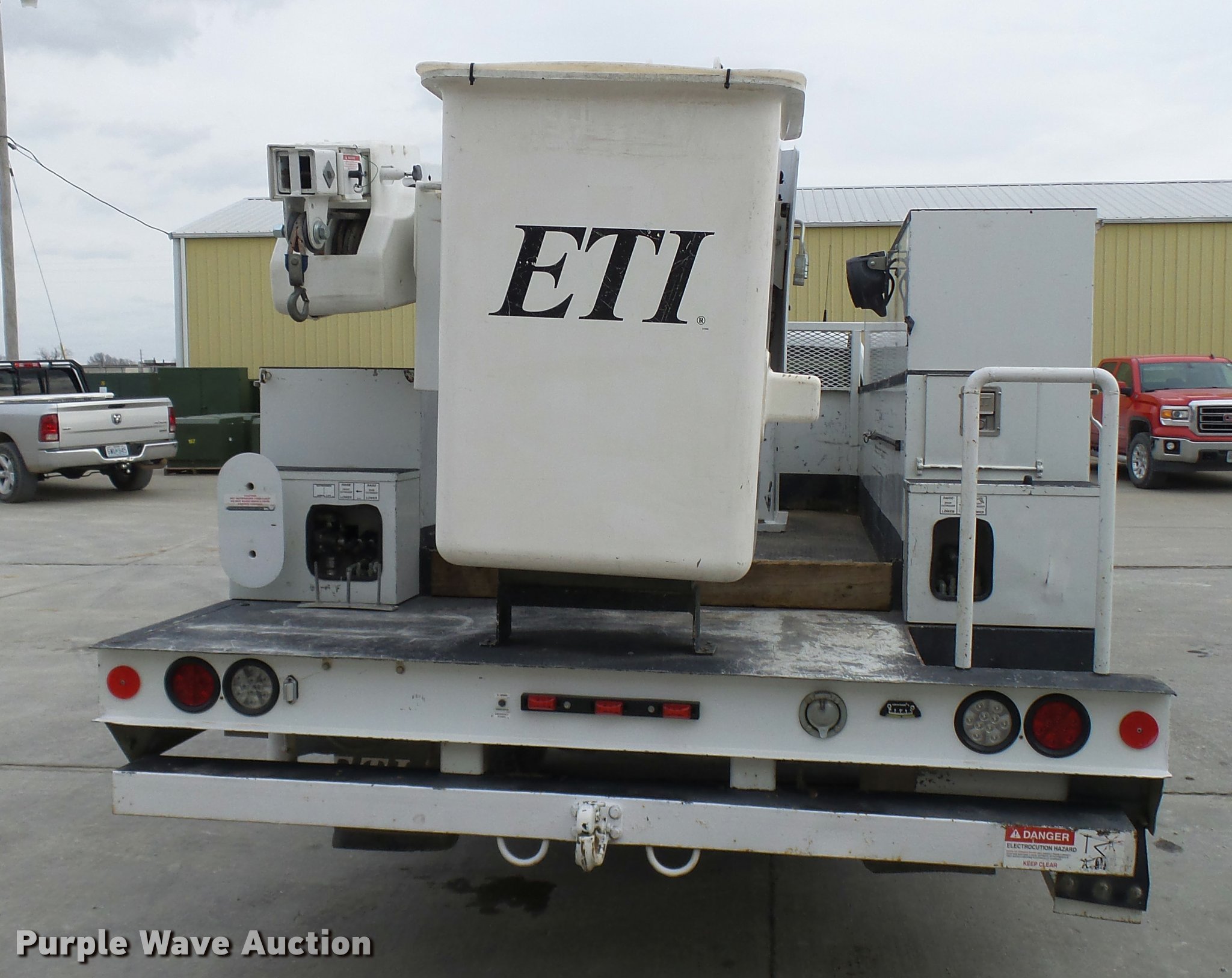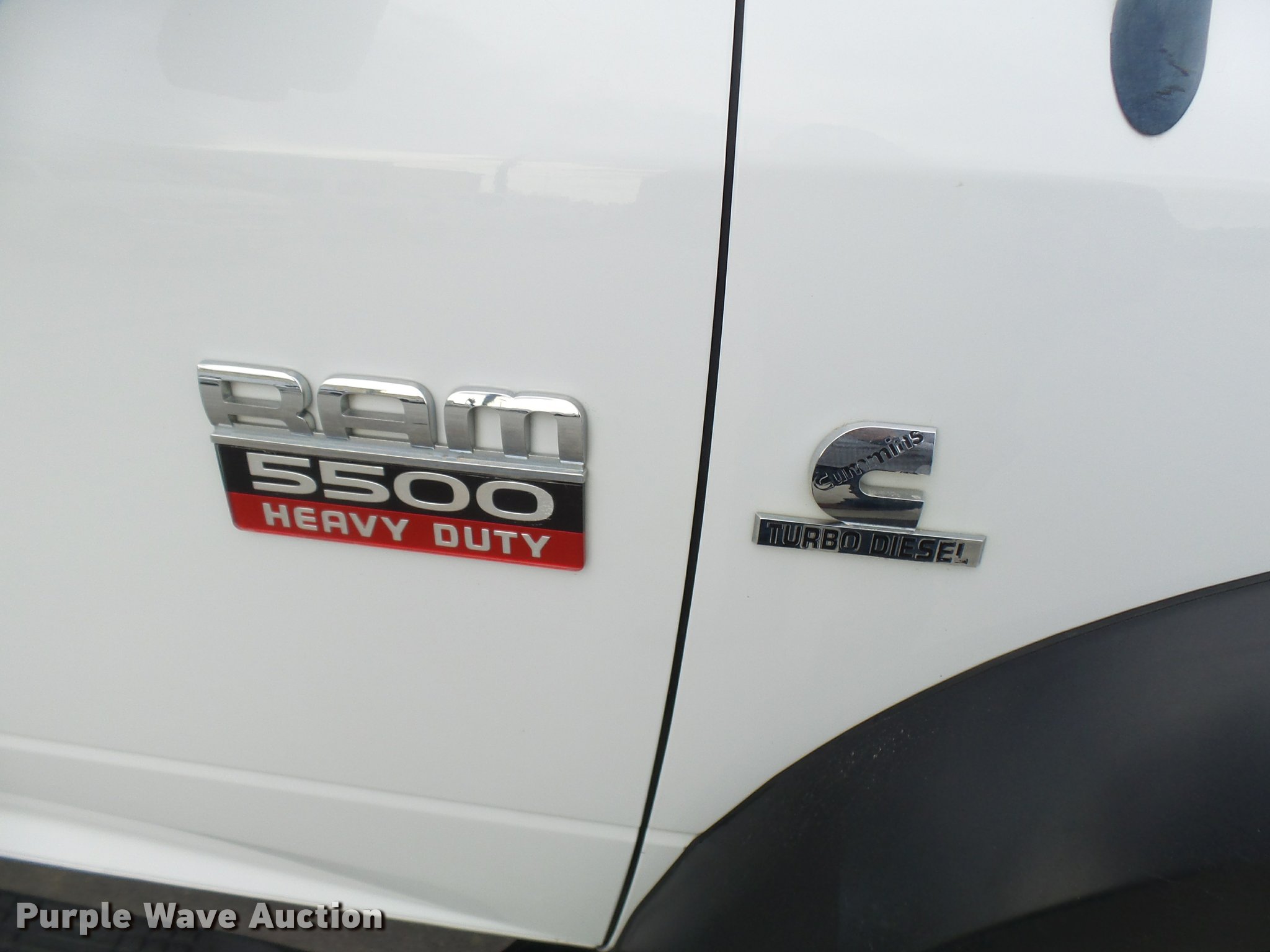 Purple Wave is selling a used Bucket Truck in Missouri. This item is a 2011 Dodge Ram 5500 HD bucket truck with the following: 129,352 miles on odometer, 6.7L L6 OHV 24V turbo diesel engine, Automatic transmission, Four wheel drive, AC and heat, AM/FM/CD, PTO, Backup alarm, Beacon light, Front tow hooks, ETI SB132DD96B36Q service bed, Shelving, Compartment lights, Catwalk, Running boards, Pintle hitch, Trailer wiring, Serial 13587, 2011 ETI ETCMH37IH boom, Serial 0311CM78121, 400 lbs maximum lift capacity, 37' maximum lift height, Man basket, Ground and platform controls, Boom rotation, Articulating, insulated, telescopic boom, Rope material handler, 800 lbs capacity, (4) outriggers, Remote control, Work lights, Ranch front bumper, Warn 15,000 lbs capacity winch, Single fuel tank, Spring suspension, Hydraulic brakes, 245/70R19.5 tires, GVWR 19,500 lbs, Current bucket inspection