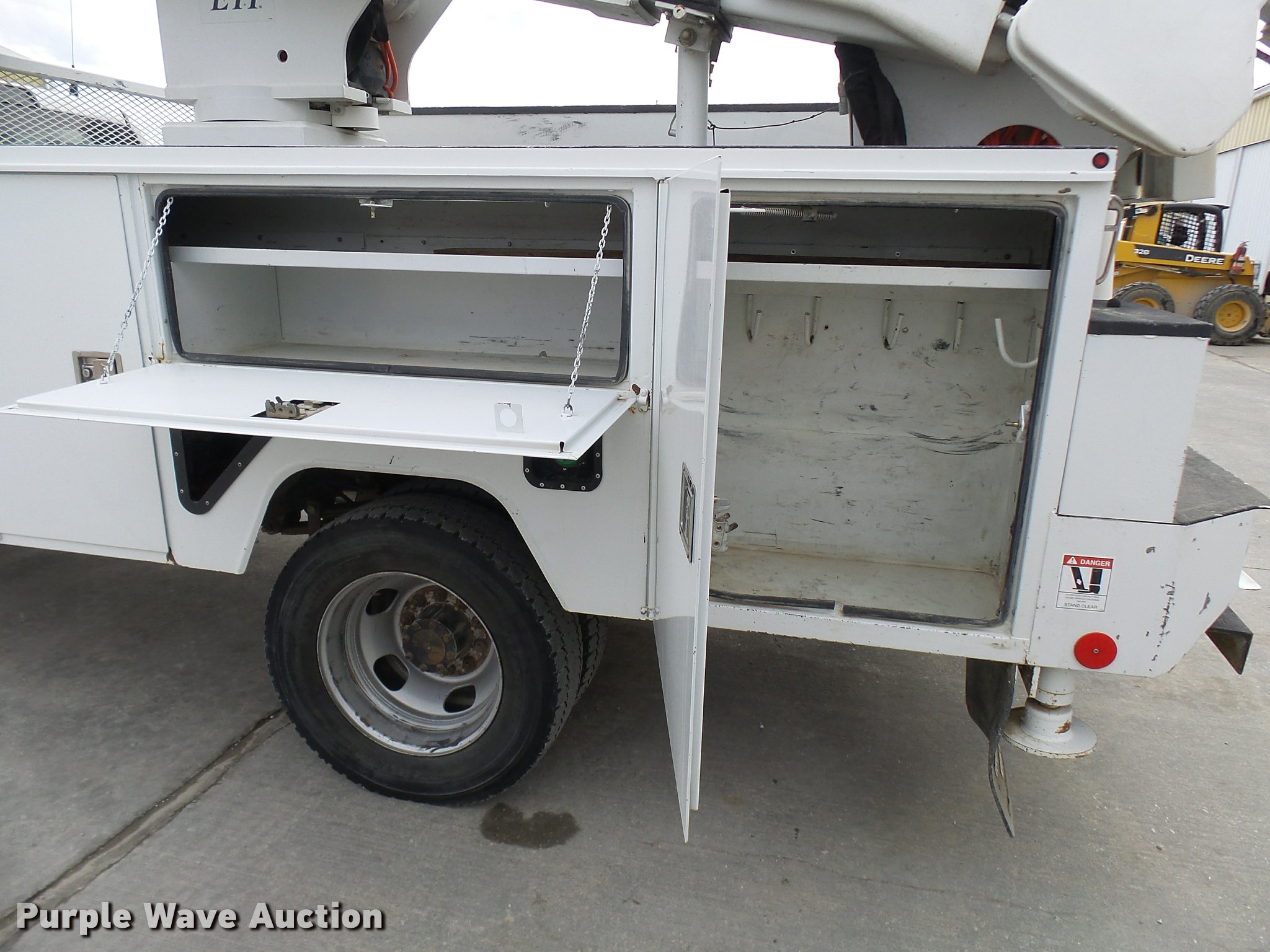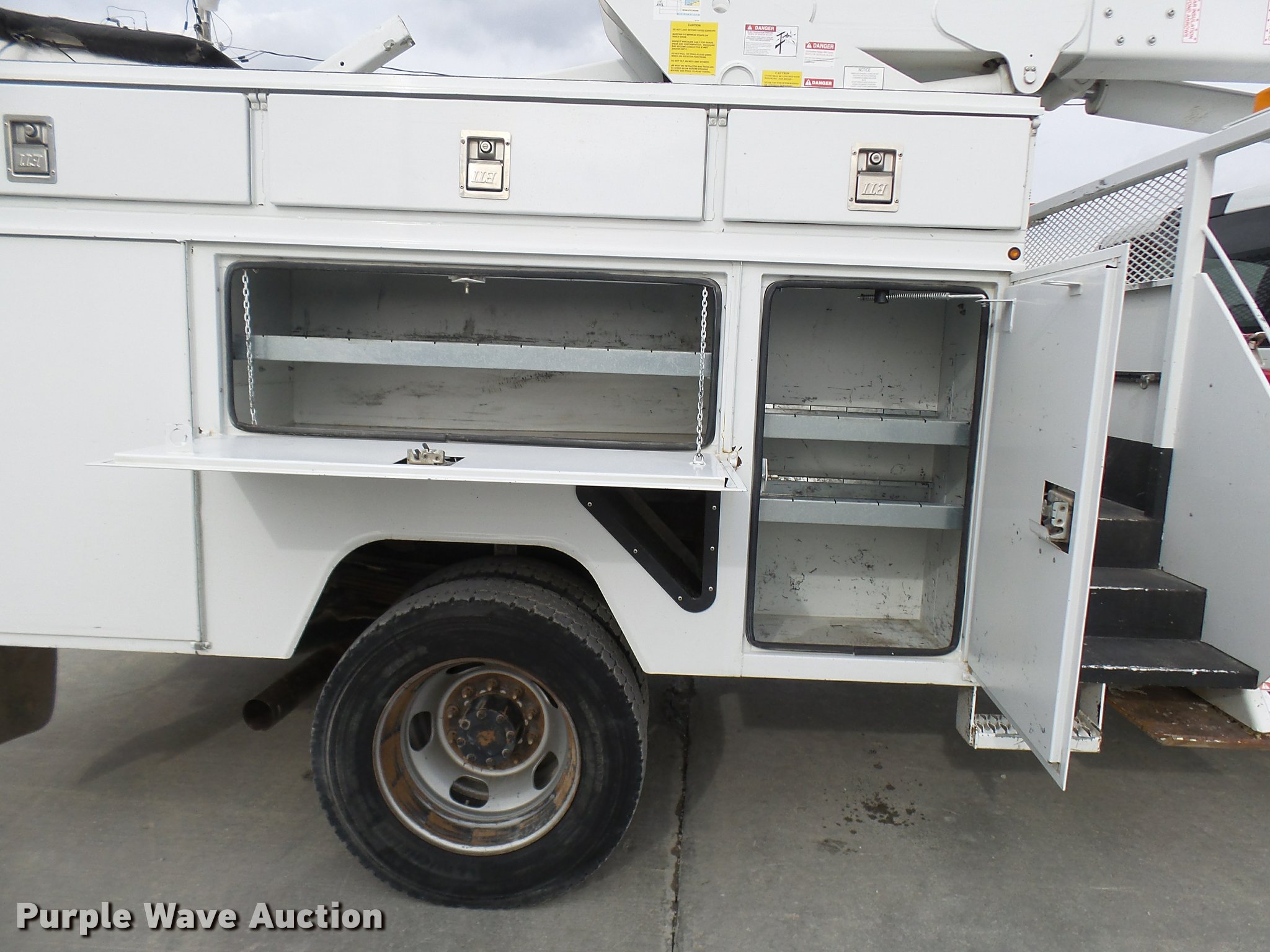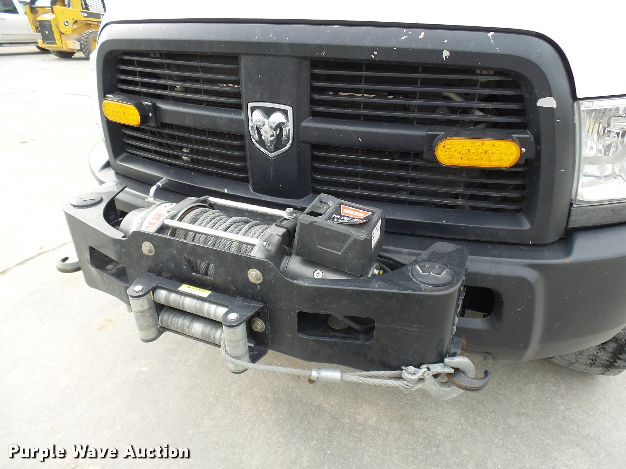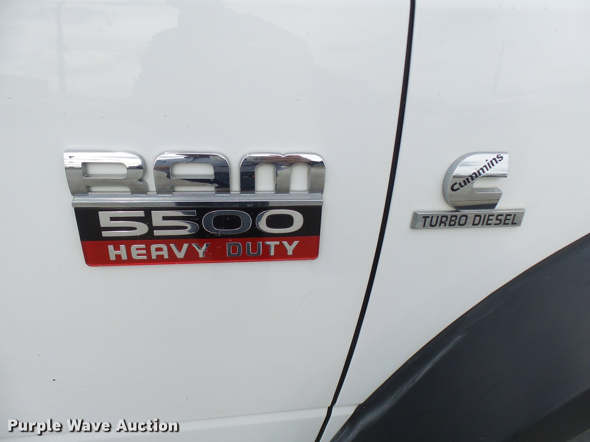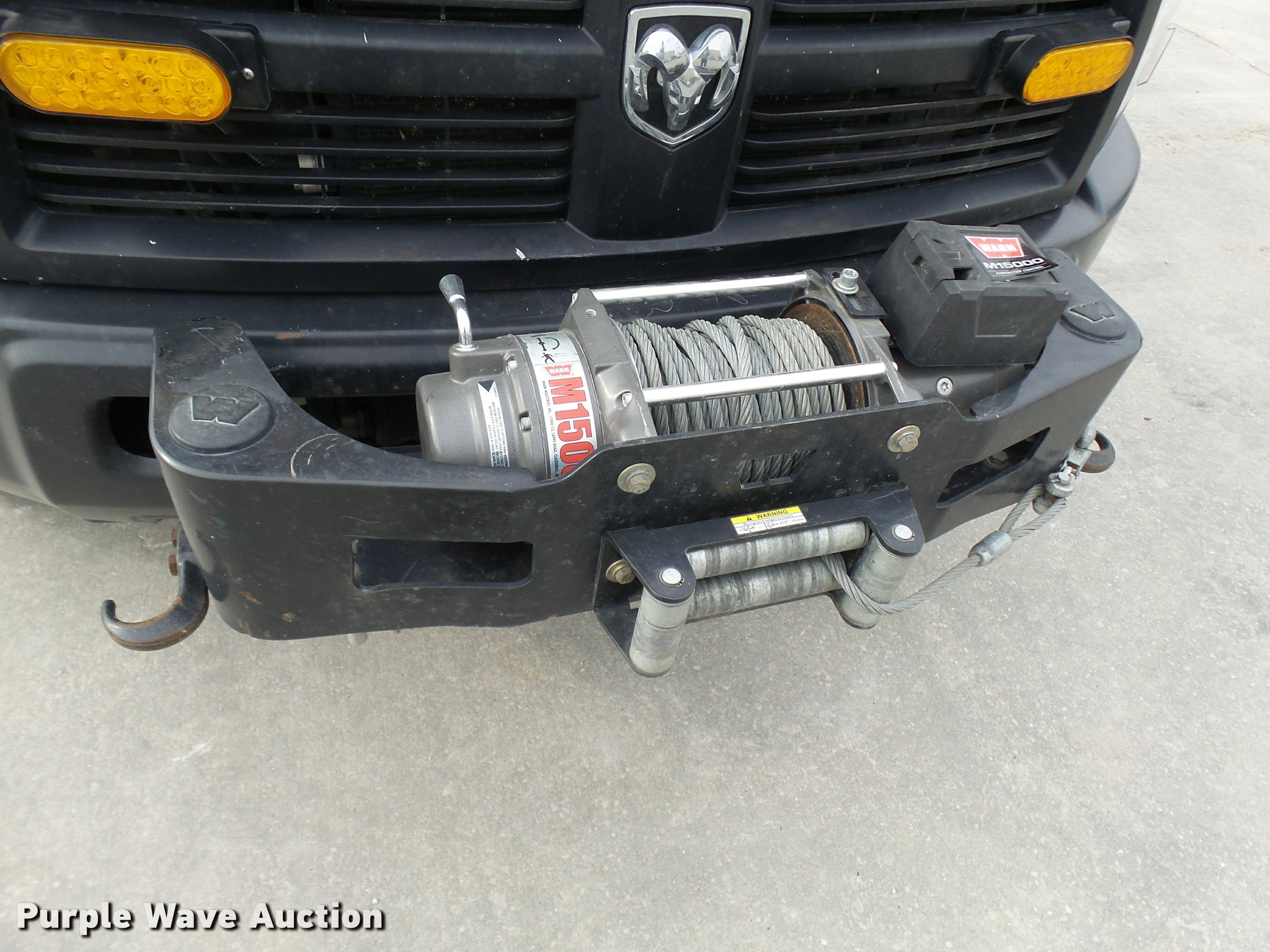 Purple Wave is selling a used Bucket Truck in Missouri. This item is a 2012 Dodge Ram 5500 HD bucket truck with the following: 138,428 miles on odometer, 6.7L L6 OHV 24V turbo diesel engine, Automatic transmission, Four wheel drive, AC and heat, AM/FM/CD, PTO, In-cab computer stand, Backup alarm, Beacon lights, Front tow hooks, ETI SB13ZDD9CB18Q service bed, Shelving, Compartment lights, Catwalk, Worklights, Pintle hitch, 2012 ETI ETCMH37IH boom, Serial 0412CM79192, 400 lbs maximum lift capacity, 37' maximum lift height, Ground and platform controls, Boom rotation, Articulating, insulated, telescopic boom, Rope material handler, 800 lbs maximum load capacity, (4) outriggers, Remote control, Spotlights, Warn 15,000 lbs capacity front winch, Single fuel tank, Spring suspension, Hydraulic brakes, Steel wheels, 245/70R19.5 tires, GVWR 19,500 lbs, Current bucket inspection