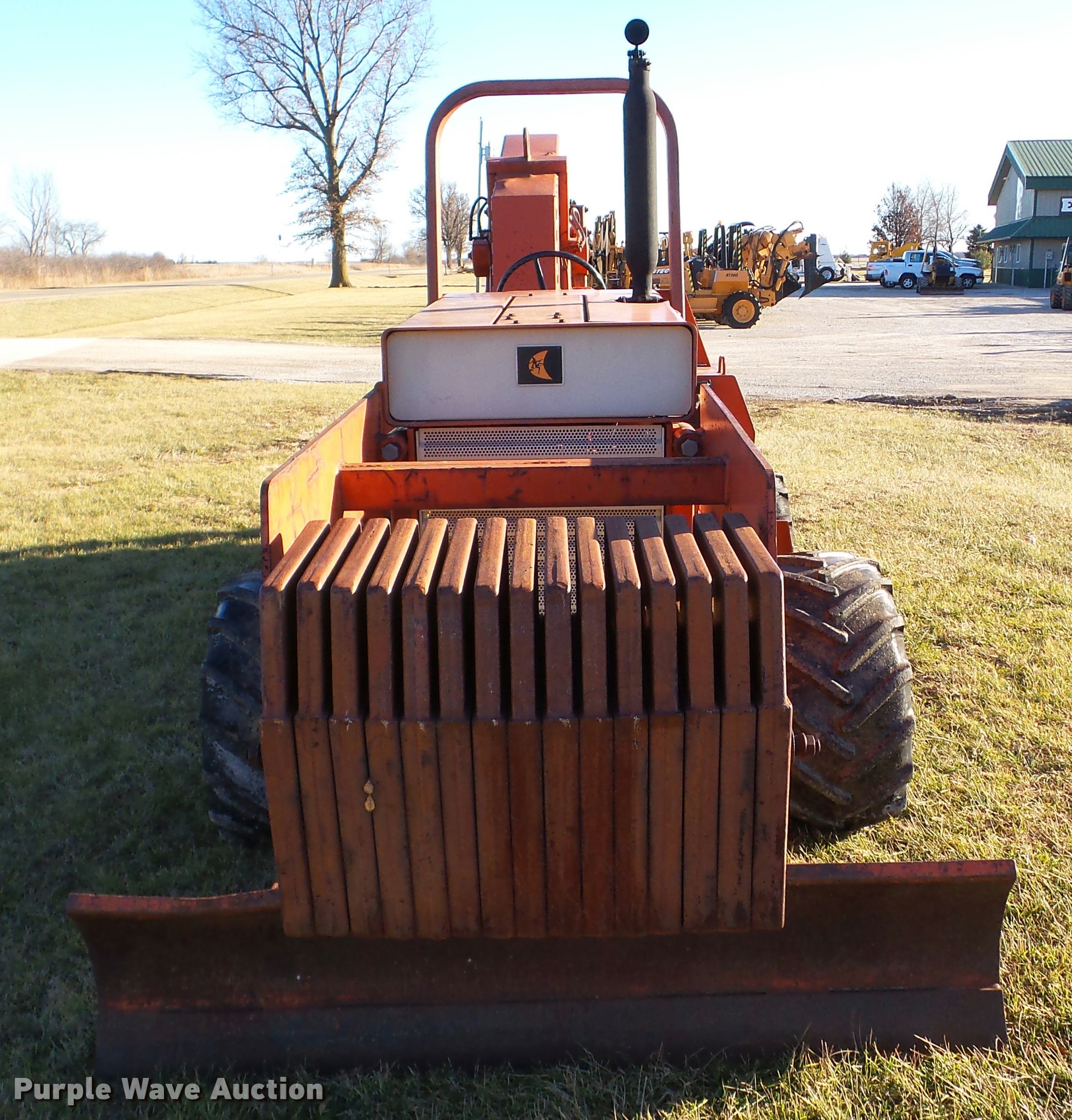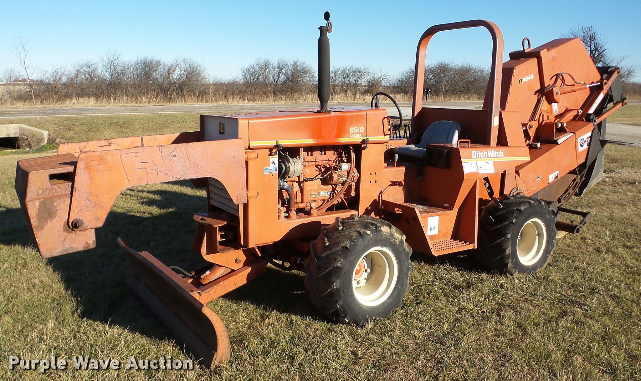 Purple Wave is selling a used Trencher or Rock Saw in Illinois. This item is a 1988 Ditch Witch 6510 rock saw with the following: 1,294 hours on meter, Four cylinder diesel engine, 4F-1R gears, Four wheel drive, Roll bar, Rock wheel, Model A645, 7' diameter wheel, 5"W cut, Serial 2D1182, 6'W six-way backfill blade, (15) front weights, 31x15.50-15 tires, Serial 6E0134