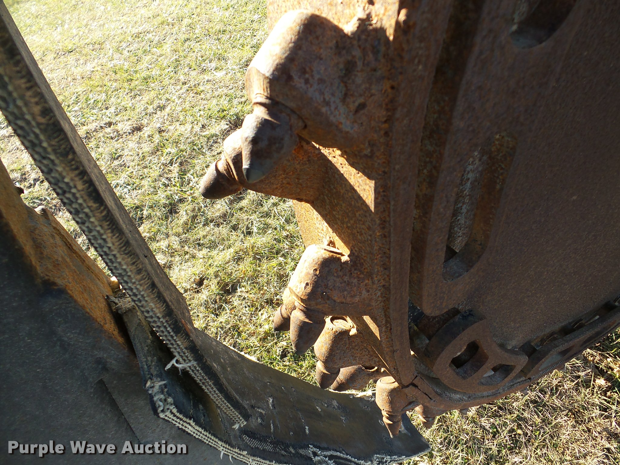 1988 Ditch Witch 6510 rock saw. 1,294 hours on meter, Four cylinder diesel engine, 4F-1R gears, Four wheel drive, Roll bar, Rock wheel Model A645, 7' diameter wheel, 5"W cut, Serial 2D1182, 6'W six-way backfill blade, (15) front weights, 31x15.50-15 tires, Serial 6E0134. 11652 State Hwy 54. Clinton, IL 61727