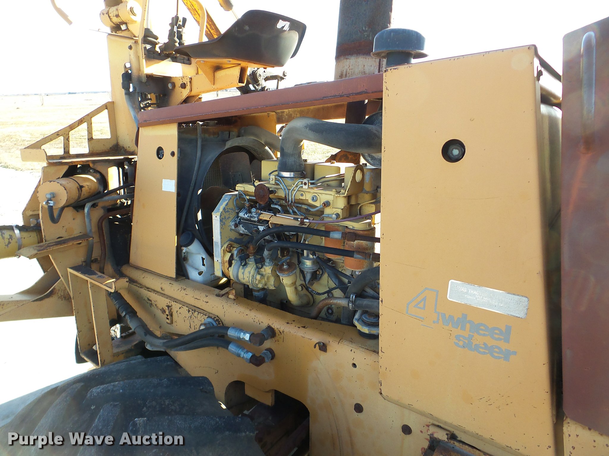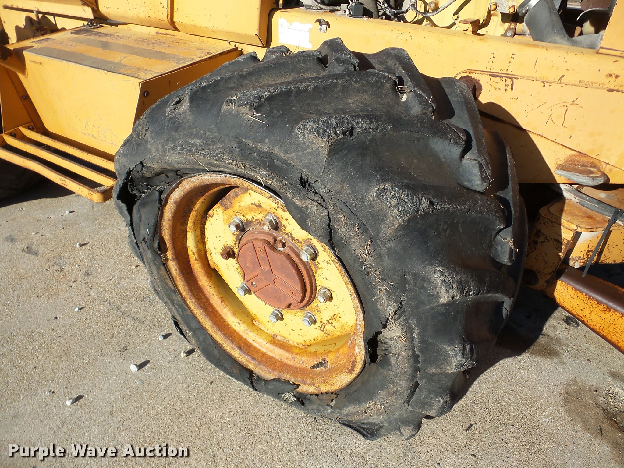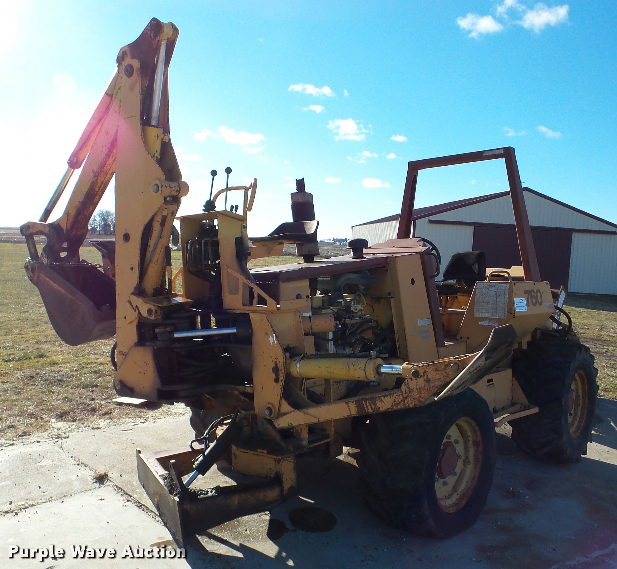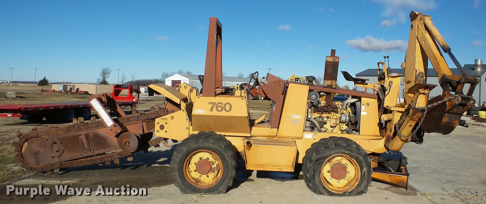Purple Wave is selling a used Trencher or Rock Saw in Illinois. This item is a 1990 Case 760 trencher with the following: 4,244 hours on meter, Four cylinder diesel engine, Hydrostatic transmission, Four wheel drive, Roll bar, Trencher, 6' boom length, 7" cutting width, Backhoe, 13"W bucket, (3) teeth, Outriggers, 38x18.00-20 tires, Unknown operating condition, Serial JAF0049513